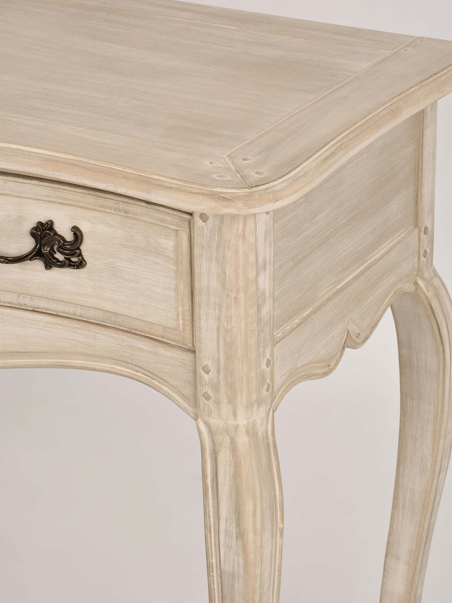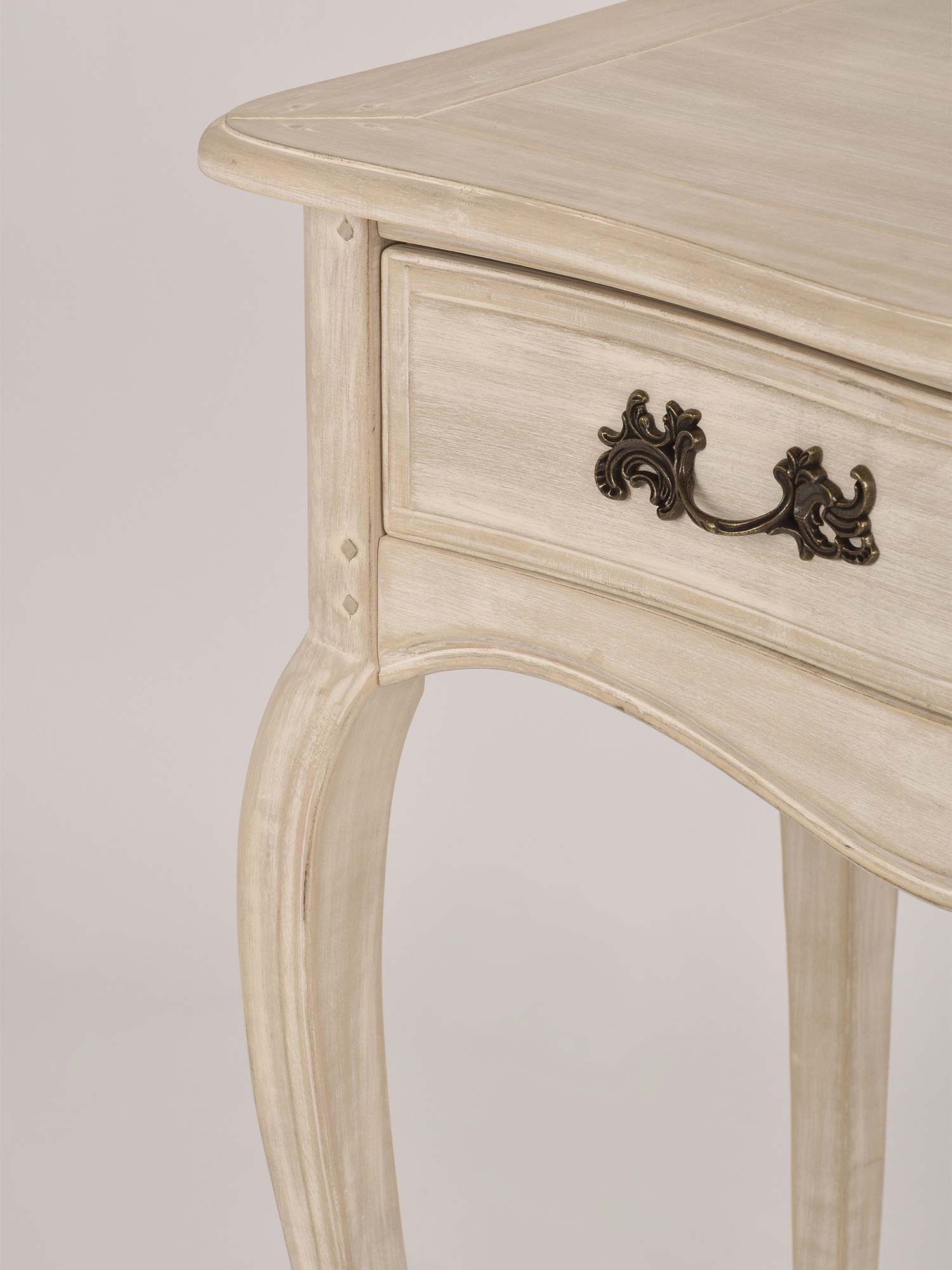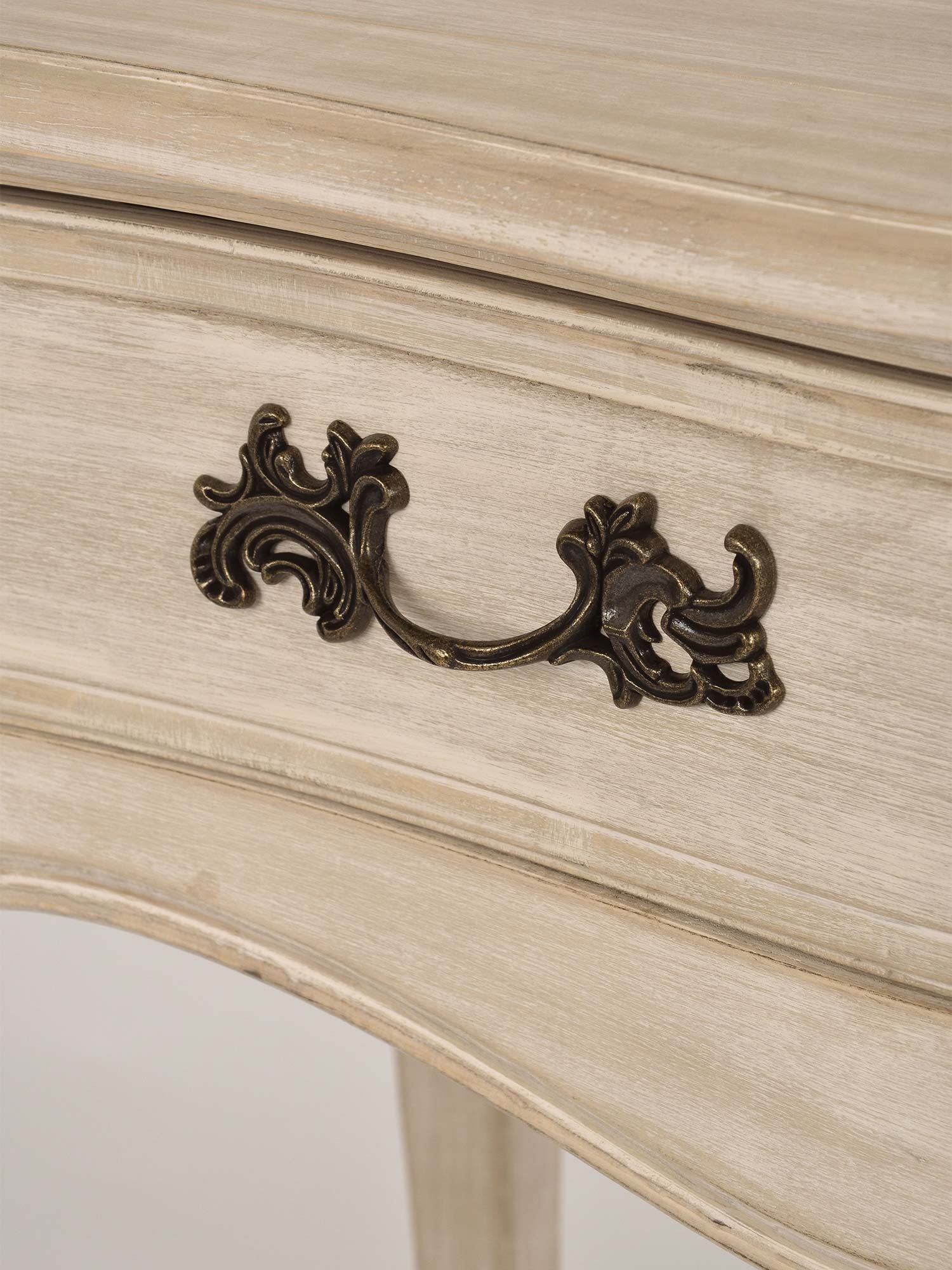 Konsola „Laguna” to elegancki mebel, który łączy w sobie klasyczny styl prowansalski z subtelnym wykończeniem w jasnobeżowym kolorze. Wykonana z drewna brzozy, charakteryzuje się giętymi, frezowanymi nogami, które nadają jej wyjątkowego charakteru. Korpus w niejednolitym jasnobeżowym półmacie uzupełniają metalowe uchwyty w kolorze ciemnego mosiądzu, które dodają komodzie rustykalnego, ale eleganckiego wyglądu. To doskonały wybór do wnętrz, które potrzebują subtelnej, ale stylowej dekoracji.