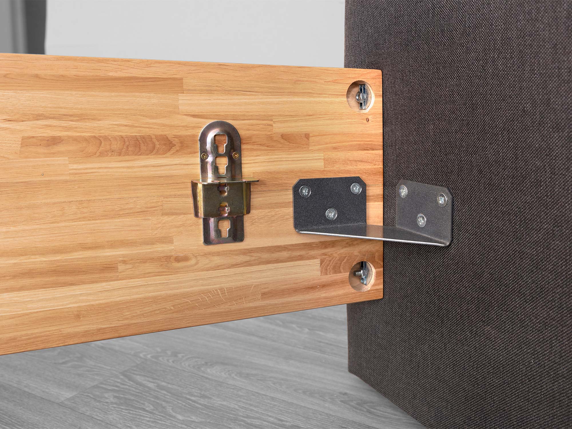 Stabilność, która nie skrzypi. Rama o ok. 3 cm grubości, centralna listwa i precyzyjne łączenia sprawiają, że łóżko jest sztywne i ciche. Starannie dobrane okucia klasy premium gwarantują łatwy montaż i wieloletnią, bezproblemową eksploatację.