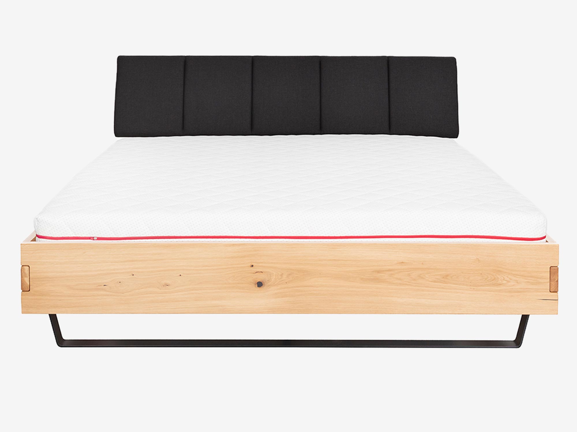 Lity dąb klasy premium to materiał o ponadprzeciętnej twardości i odporności. Naturalny olej na powierzchni uwydatnia usłojenie i stanowi ochronę przed codziennym użytkowaniem. Metalowa przednia noga, malowana proszkowo na kolor czarny, dodaje konstrukcji lekkości wizualnej i wzmacnia stabilność. Zagłówek z tkaniny INARI jest dostępny w kilku wersjach kolorystycznych – dopasujesz go do zasłon, dywanu czy pościeli, komponując spójną aranżację.