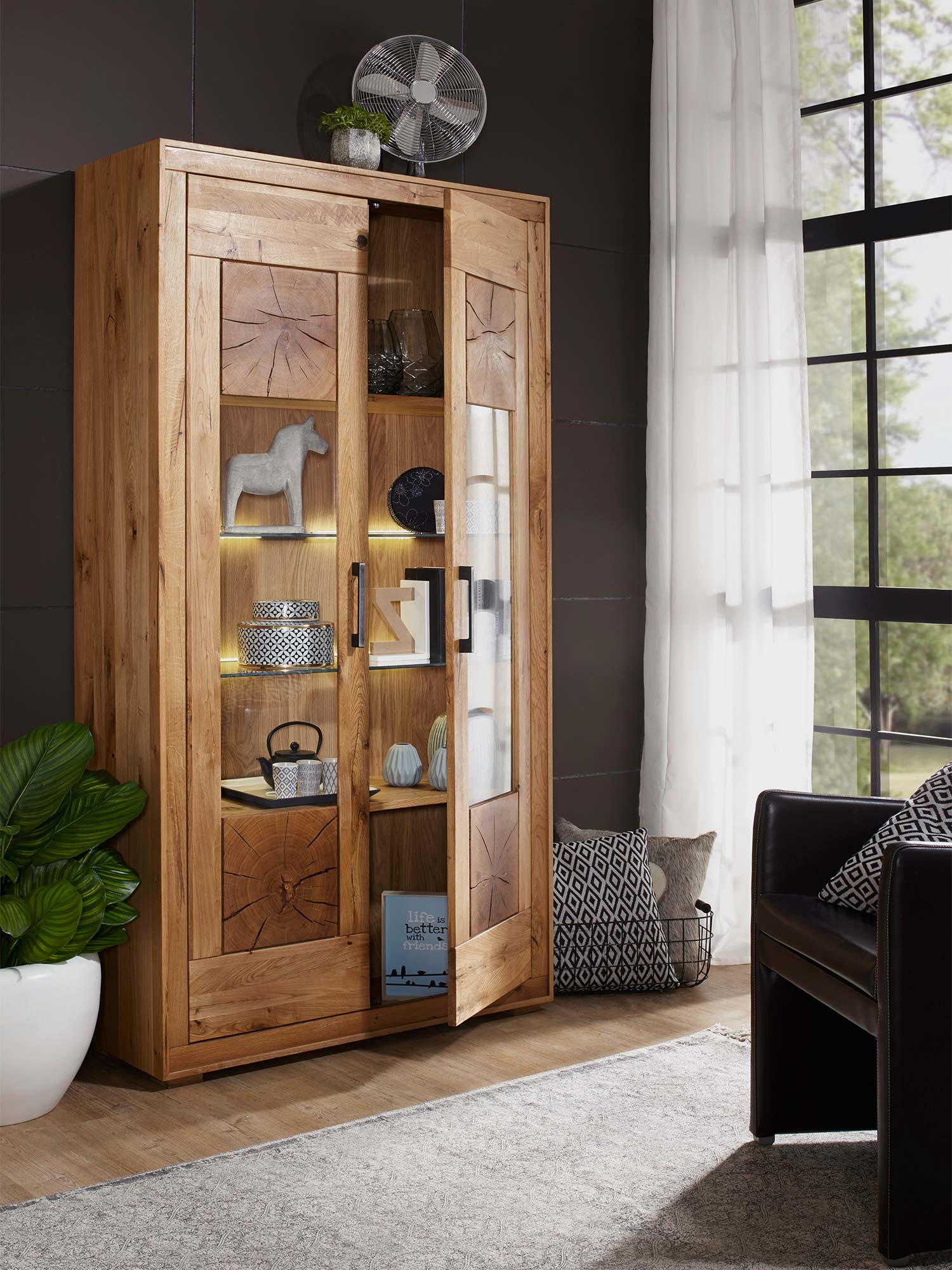Podwójna Witryna LUX nie jest tylko meblem – to prawdziwe dzieło sztuki. Wykonana z litego drewna dębowego, ma niepowtarzalny wygląd, który dodaje wnętrzu ciepła i naturalnej elegancji. Każda sztuka jest unikalna, dzięki naturalnym sęków, które tworzą niepowtarzalny wzór na powierzchni mebla.
