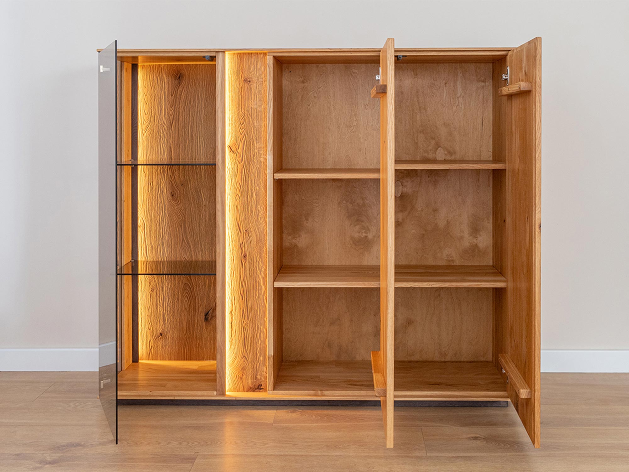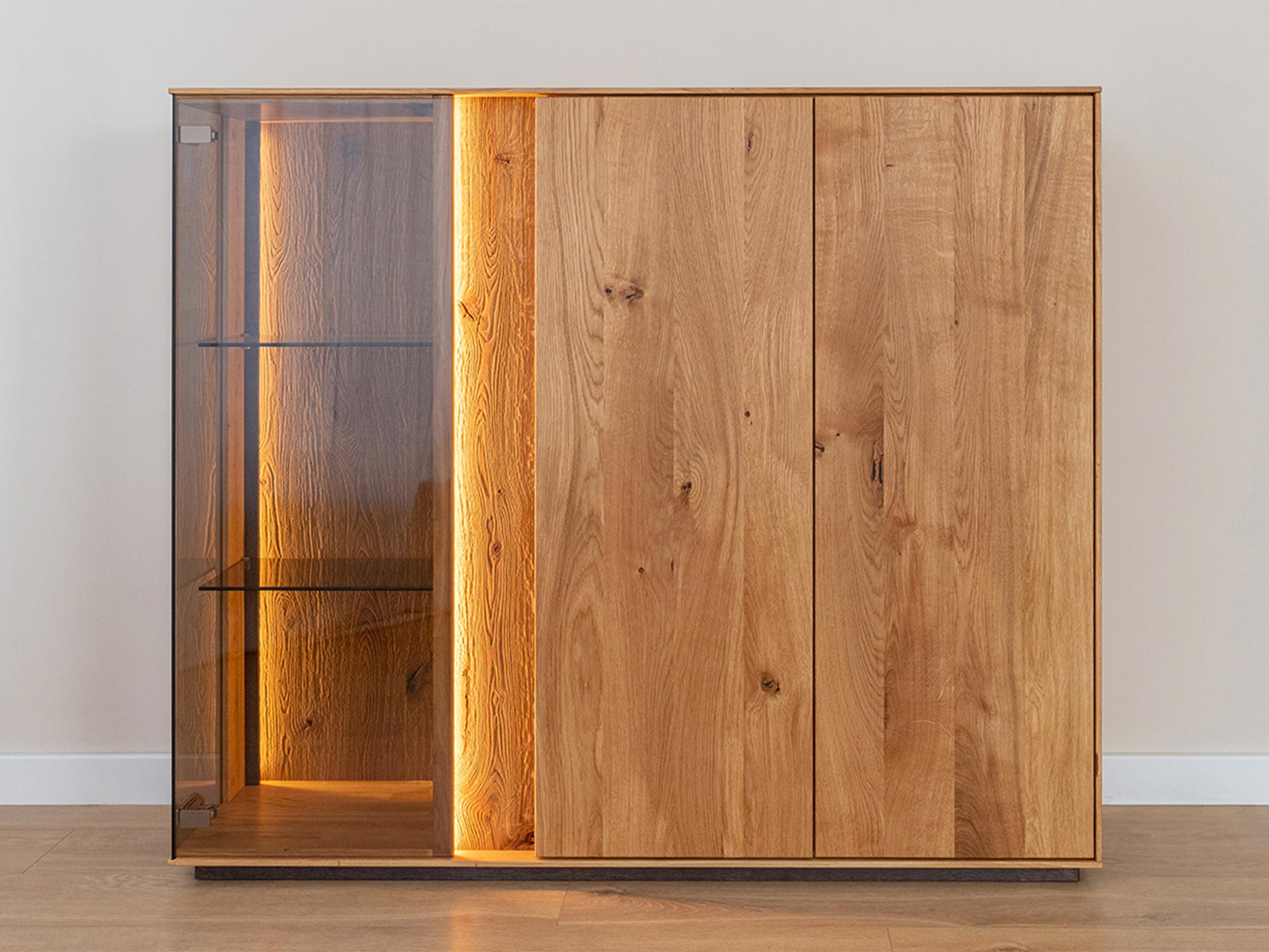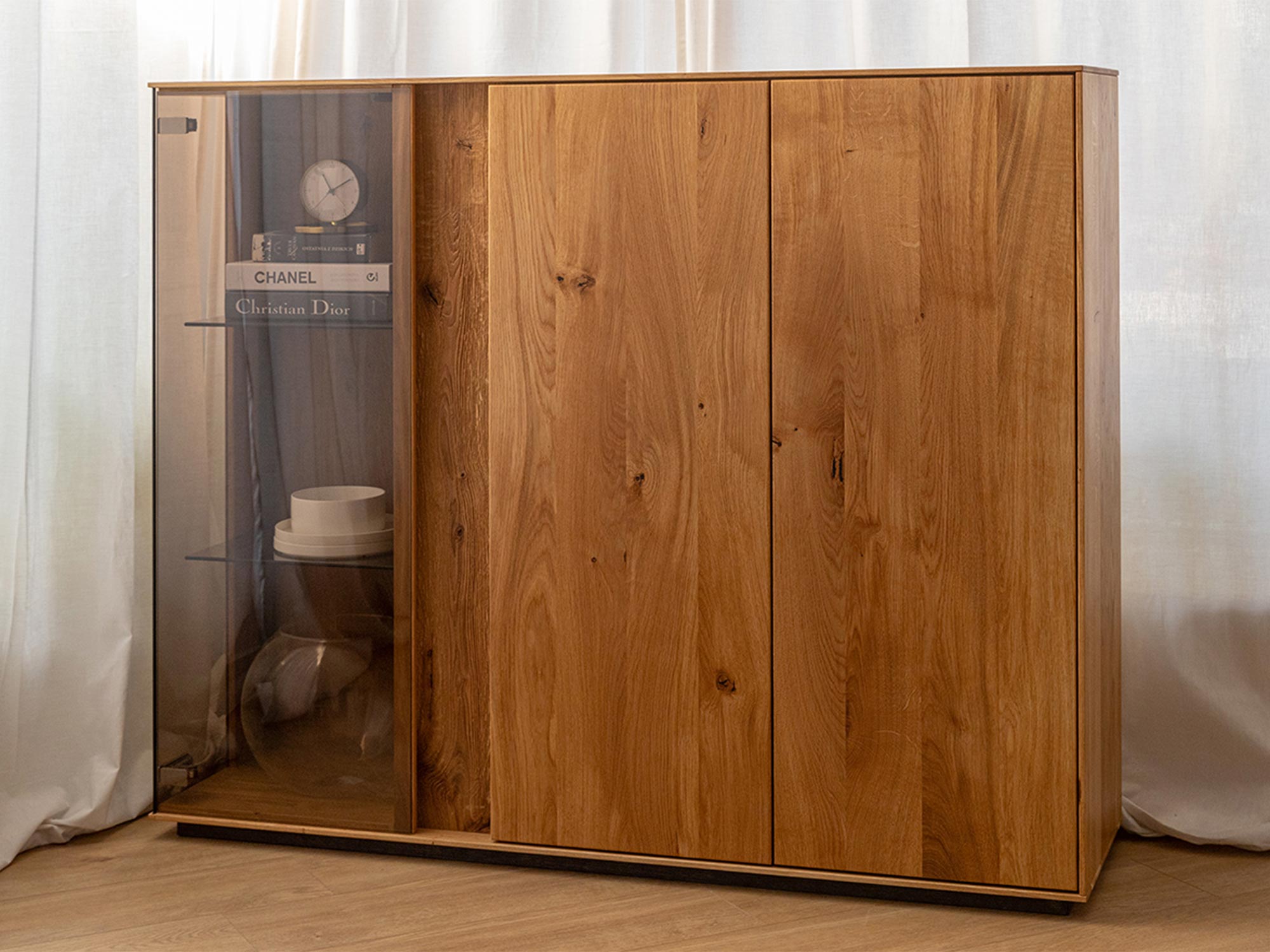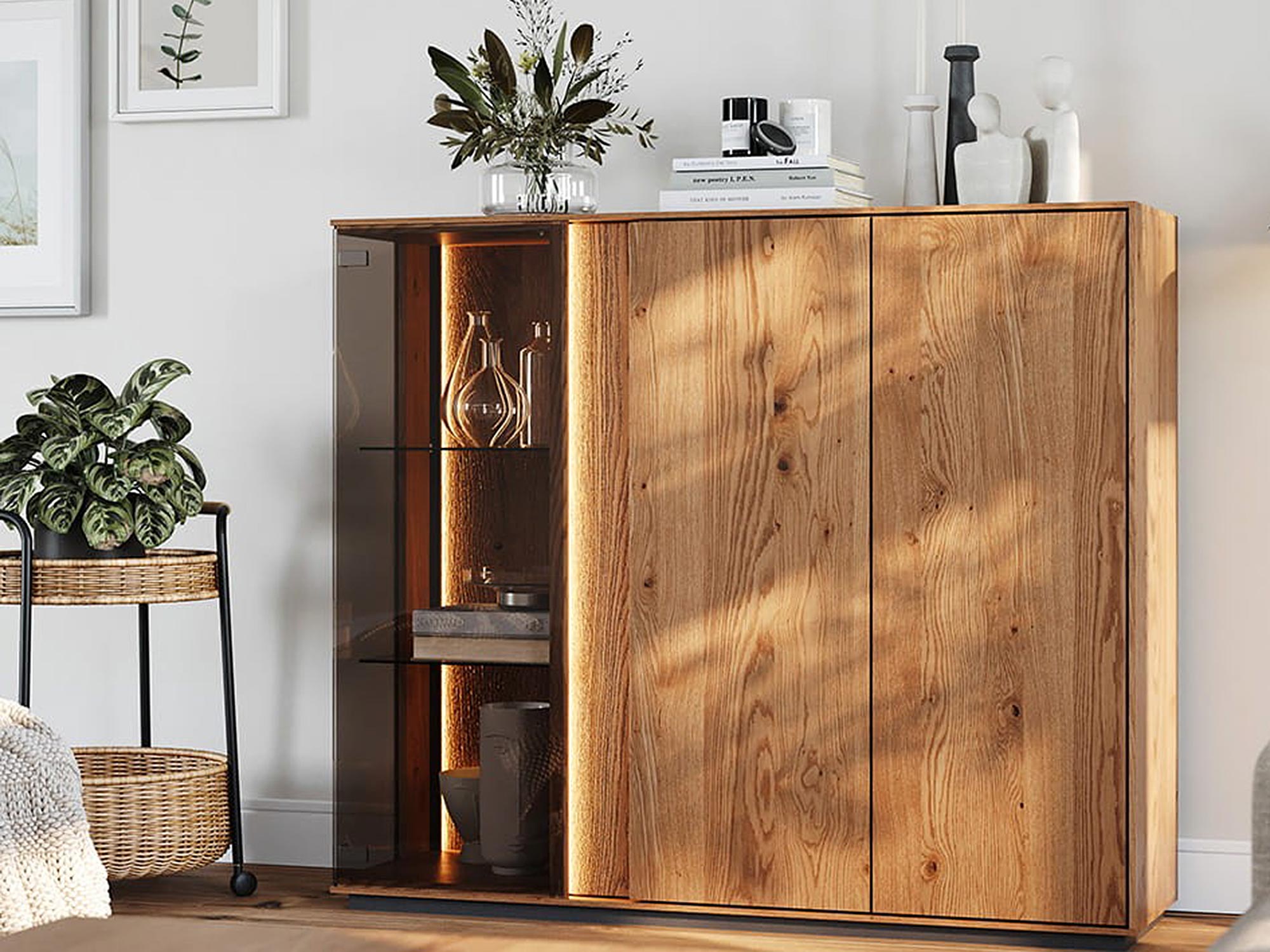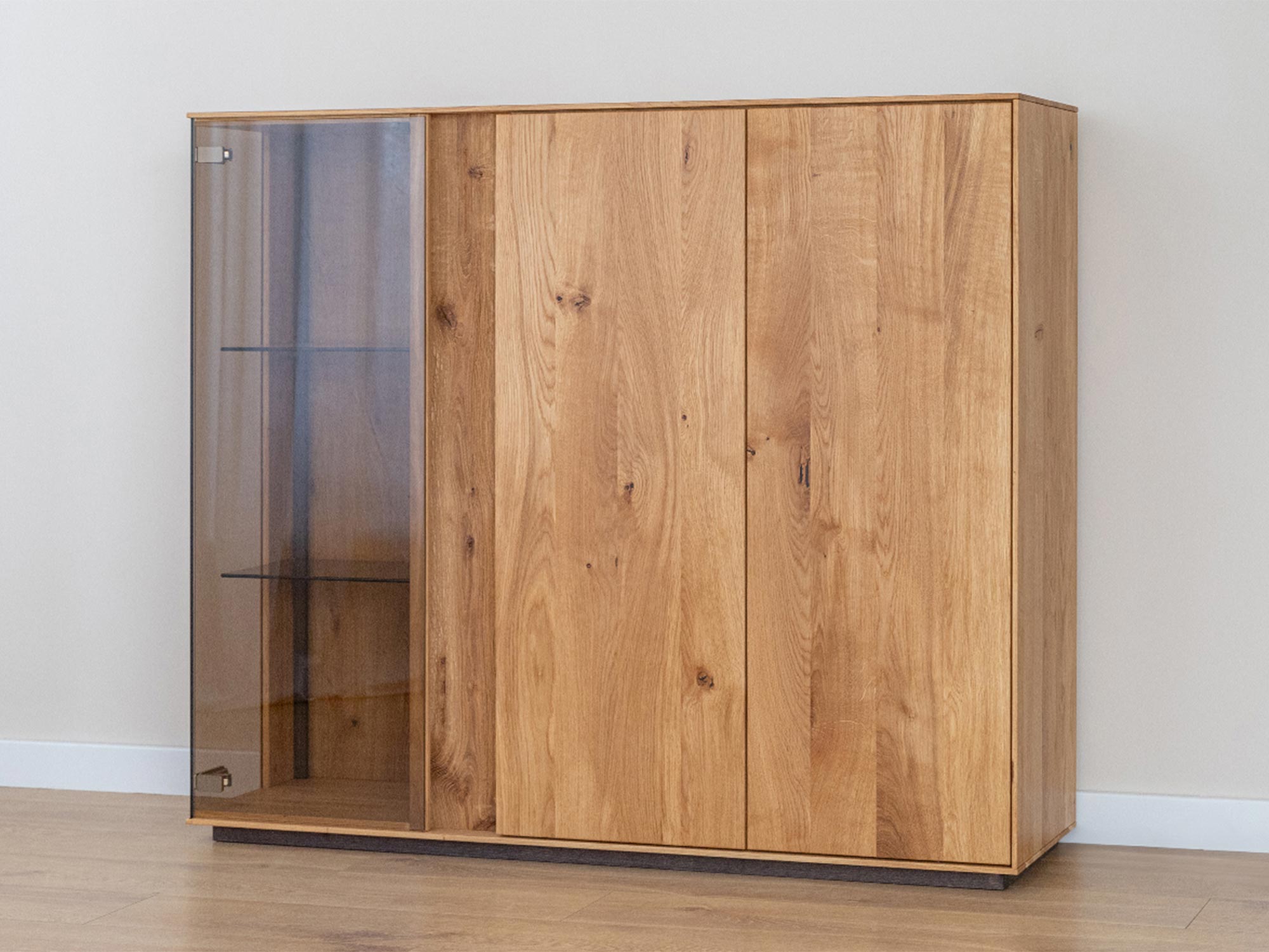 Niska Witryna Olejowana Essentia to mebel, który łączy w sobie estetykę i funkcjonalność. Jej design jest na tyle uniwersalny, że z powodzeniem wkomponuje się w różnorodne aranżacje wnętrz. Dzięki wykończeniu z litego dębu, witryna emanuje naturalnym ciepłem, które wprowadza do wnętrza przytulną atmosferę. Co więcej, olejowanie zapewnia długowieczność mebla, chroniąc drewno przed uszkodzeniami i wydobywając jego naturalne piękno. Dzięki dużej ilości półek i przestronnych drzwiczek, witryna ta zapewnia wiele miejsca na przechowywanie, jednocześnie pozwalając na wyeksponowanie dekoracji, które dodadzą charakteru Twojemu wnętrzu.
