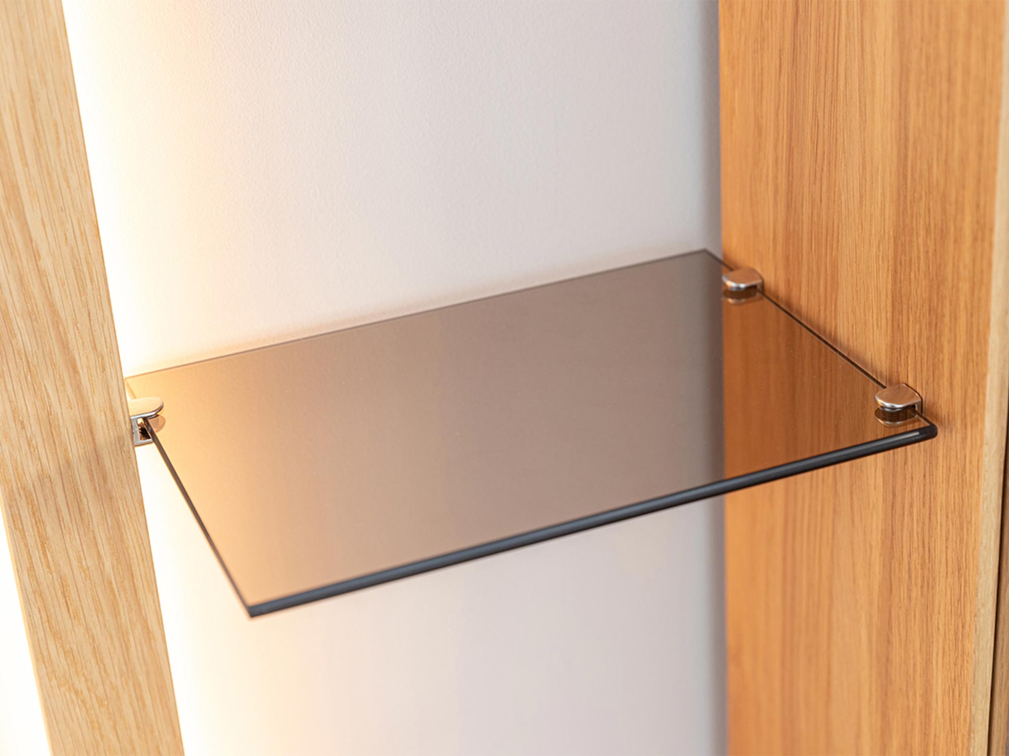 Nowoczesna Witryna z Regałem Essentia została zaprojektowana z myślą o maksymalnej funkcjonalności i estetyce. Centralnie umiejscowiona przeszklona część ze szklaną półką to doskonałe miejsce dla najważniejszych ozdób czy kolekcji wartych wyeksponowania. Z kolei przylegający regał oferuje osiem półek, które stanowią odpowiedź na potrzeby tych, którzy cenią praktyczność i dodatkowe miejsce do przechowywania.