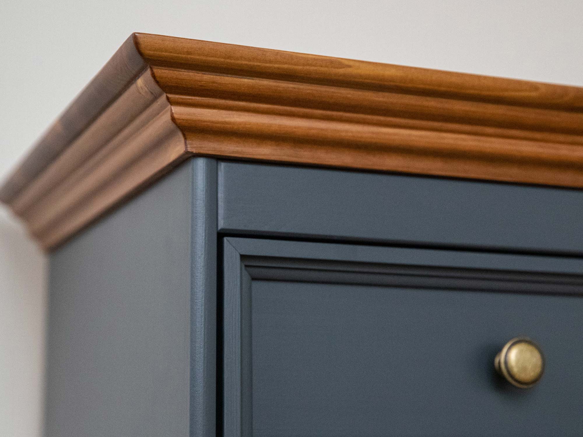 Biała klasyczna komoda drewniana grafit szuflada detale INGRID
