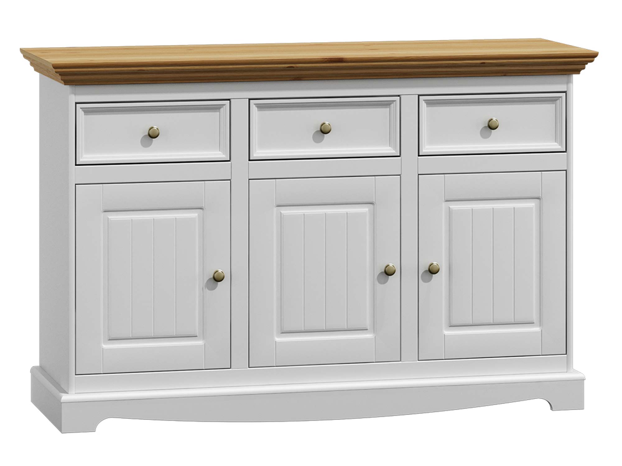 Biała klasyczna komoda drewniana blat dąb INGRID