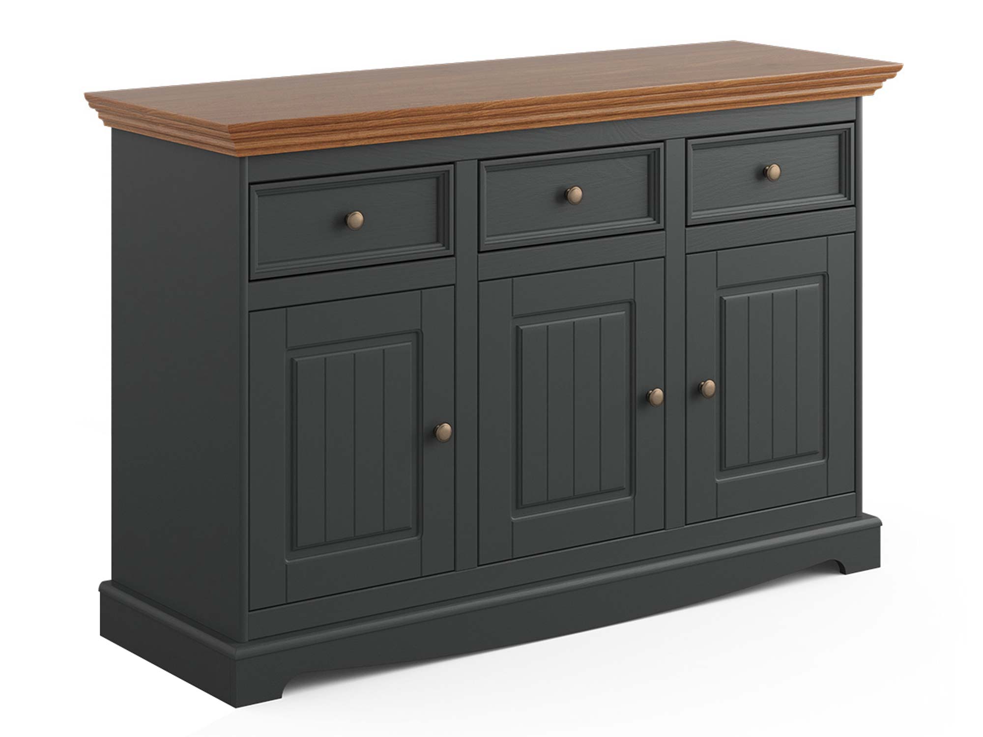 Biała klasyczna komoda drewniana grafit dąb detale INGRID