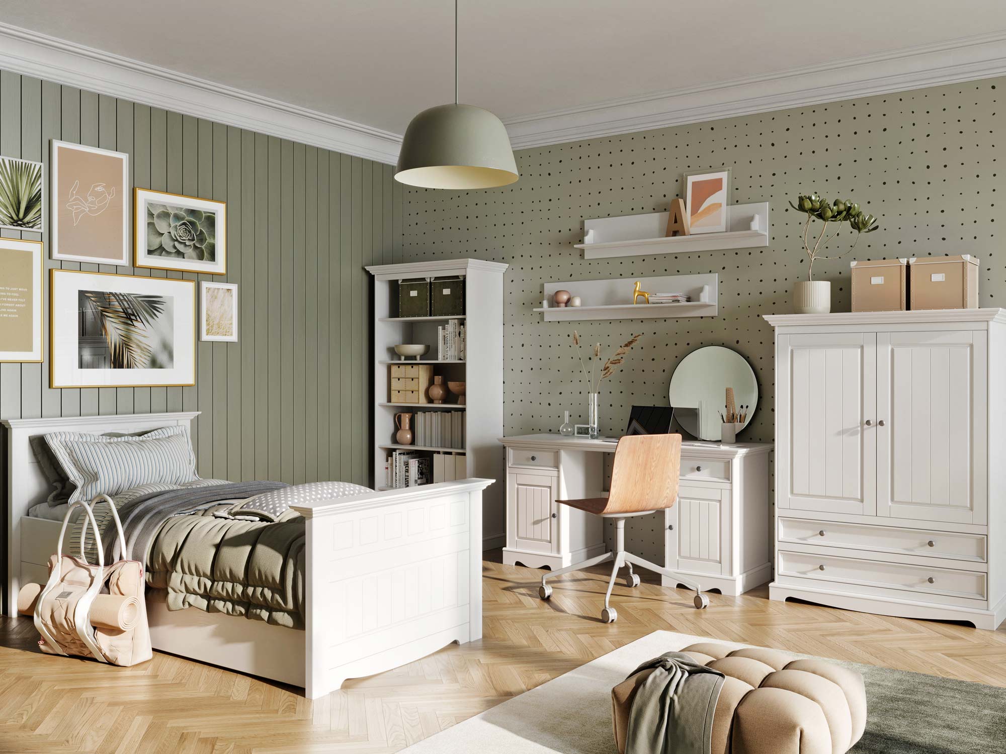 Półka biała drewniana do pokoju pokój młodzieżowy aranż INGRID
