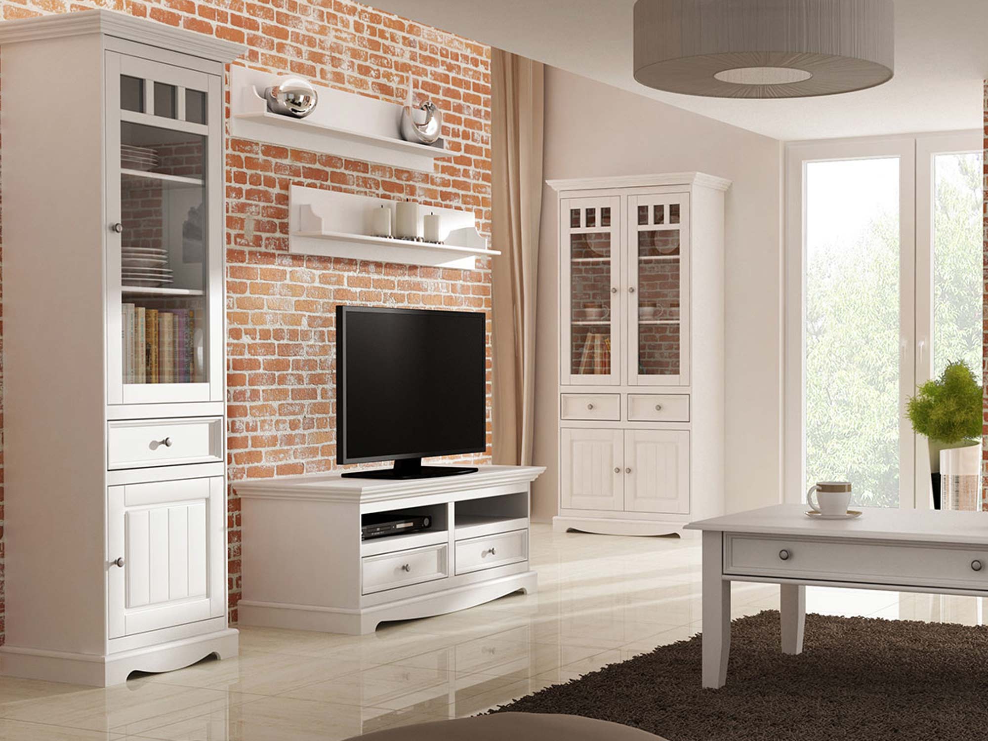 Półka biała drewniana do pokoju salon aranż INGRID