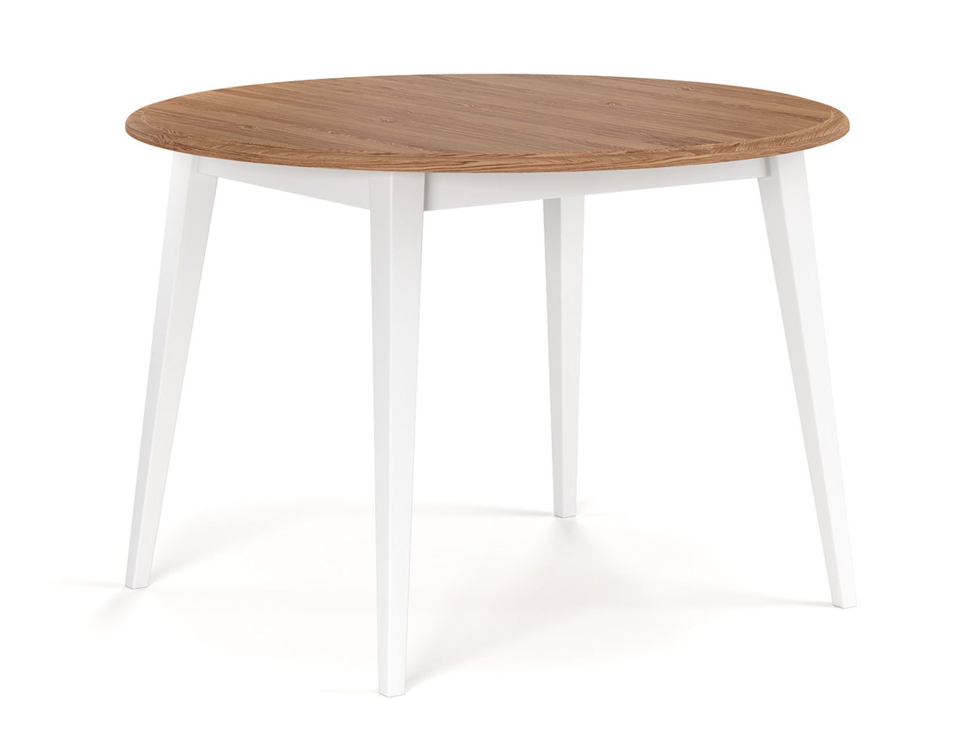 Stół okrągły z dębowym blatem i białymi drewnianymi nogami