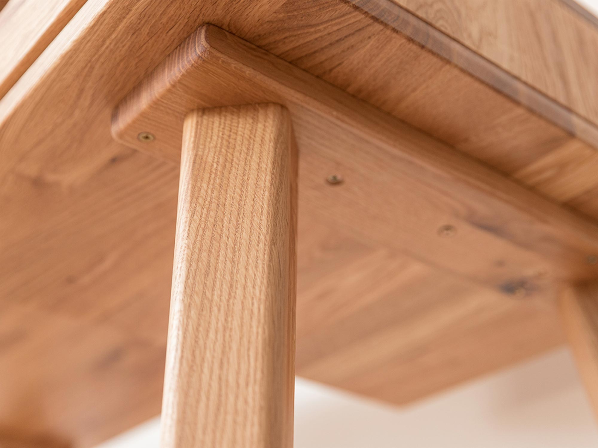 Kluczowym atutem tego modelu jest materiał, z którego został wykonany – lity dziki dąb. Jest to surowiec ceniony za swoją niezwykłą twardość oraz odporność na uszkodzenia mechaniczne, co czyni mebel inwestycją wielopokoleniową. Powierzchnia drewna została zabezpieczona naturalnym olejem, który wnika głęboko w strukturę desek, chroniąc je przed wilgocią, a jednocześnie pozwalając drewnu oddychać. Taki sposób impregnacji nie tylko konserwuje, ale przede wszystkim wydobywa głębię koloru oraz podkreśla niepowtarzalny rysunek słojów i sęków, czyniąc każdy egzemplarz unikatem.