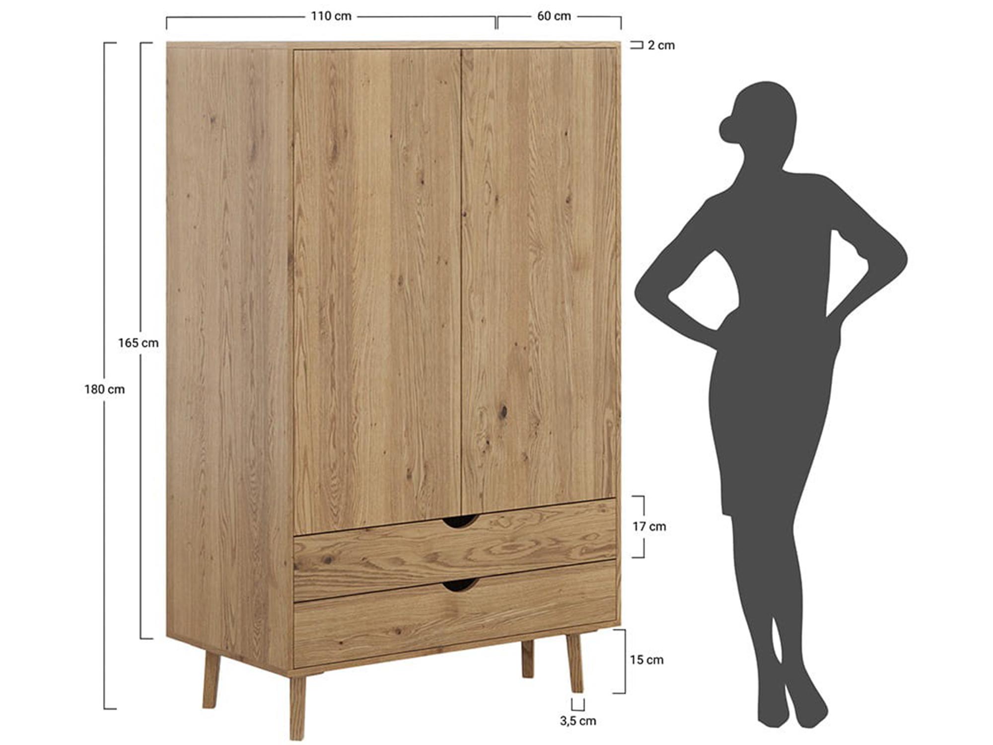 Prezentowana szafa to wyjątkowy mebel, który stanie się centralnym punktem każdej sypialni, wprowadzając do niej harmonię i naturalne piękno. Wykonana z litego dzikiego dębu, stanowi doskonałe uzupełnienie dla osób ceniących trwałe i ponadczasowe kolekcje mebli. Powierzchnia wykończona olejem eksponuje unikalne słoje oraz sęki, nadając bryle szlachetnego i autentycznego charakteru. Dzięki przemyślanej konstrukcji łączącej drążek na wieszaki z pojemnymi szufladami, szafa gwarantuje wygodę przechowywania i łatwy dostęp do garderoby. Solidne wykonanie oraz zastosowanie nowoczesnych prowadnic sprawia, że jest to inwestycja w komfort użytkowania na długie lata.