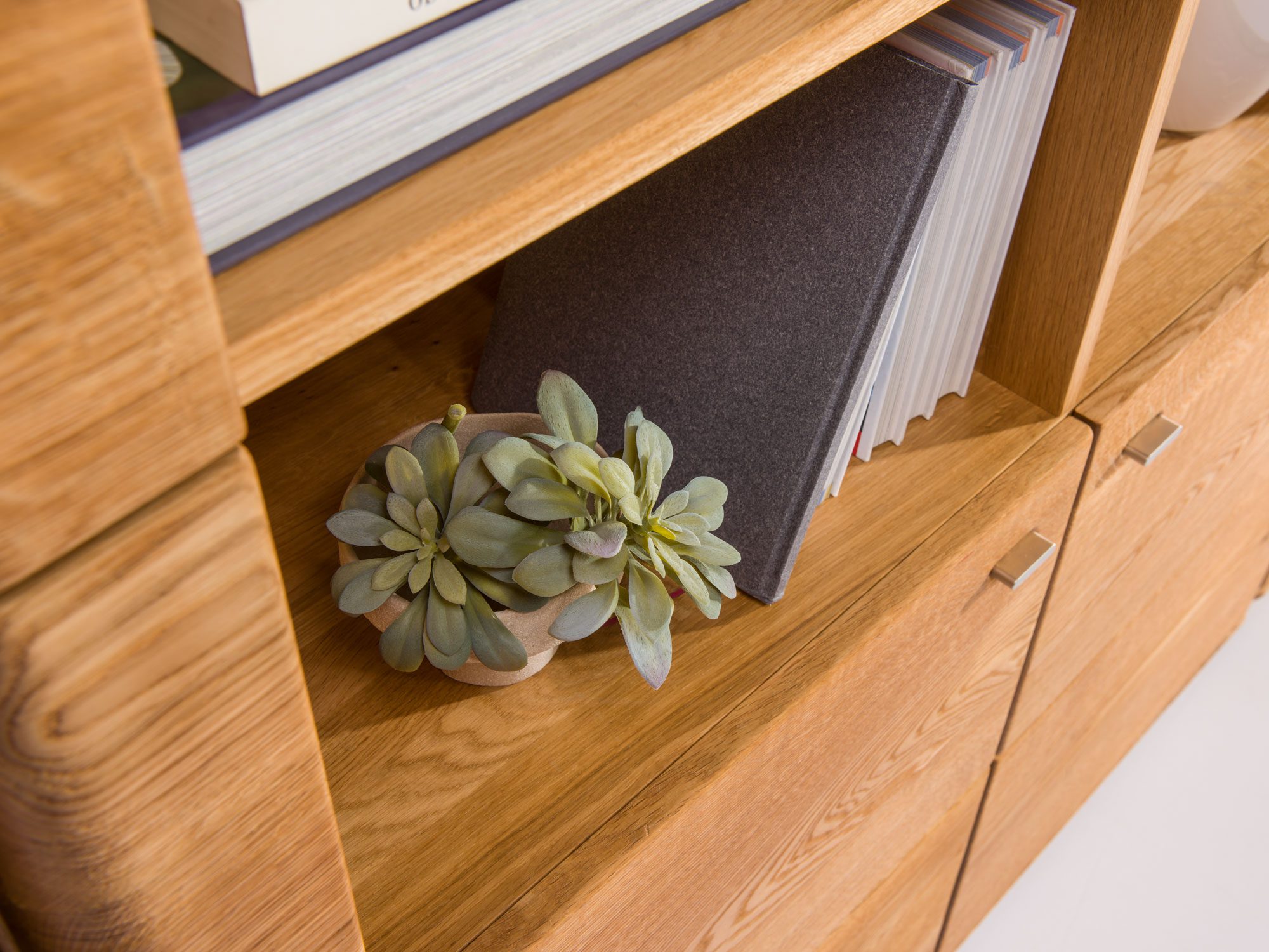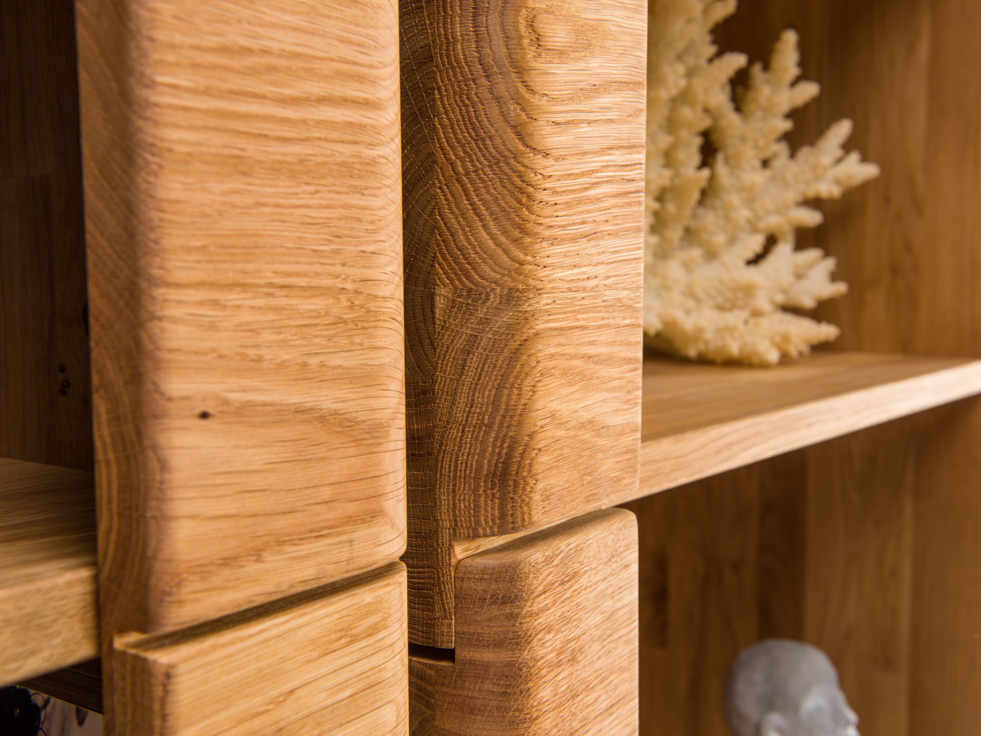 Bez wątpienia walorem kontenerka z szufladami jest wykonanie z litego drewna dębowego, które gwarantuje wysoką jakość, trwałość i solidne wykonanie. Ponadto lite drewno to także niepowtarzalność wzoru usłojenia, a wiec posiadanie mebla jedynego w swoim rodzaju.