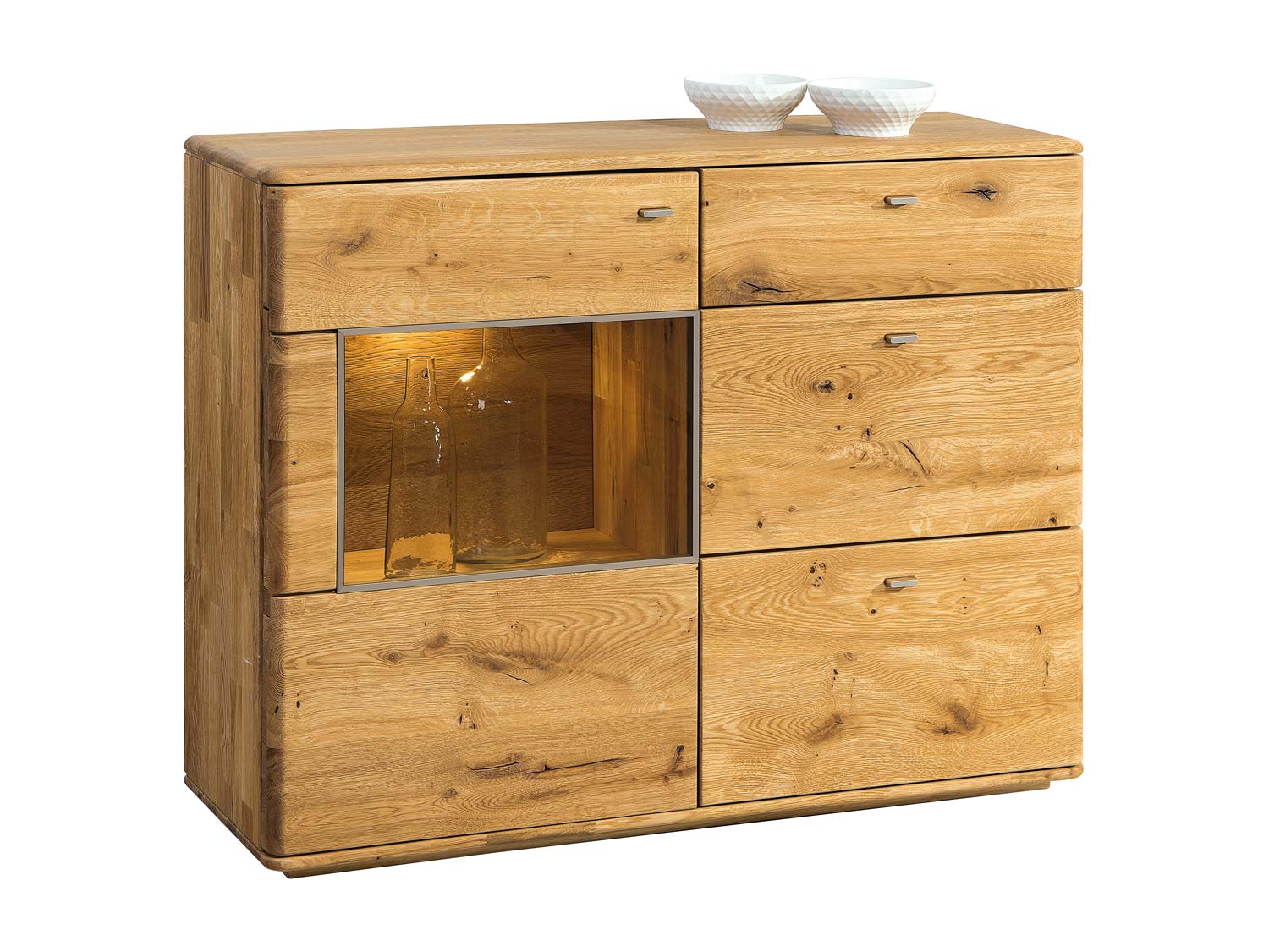 Stylowa i nowoczesna komoda szklane drzwi do salonu wyprodukowana z najlepszej klasy litego dębu świetnie dostosuje się do aranżacji każdej jadalni, salonu lub pokoju dziennego. Mocna konstrukcja oraz eleganckie, nowoczesne wykończenie sprawią, że niska komoda ze szkłem fenomenalnie uatrakcyjni każdy salon. mebel ma funkcjonalne drewniane drzwiczki, oraz przeszkloną część, które prezentują się fenomenalnie, dzięki czemu komoda bezbłędnie pełni funkcję przechowywania różnych drobiazgów.