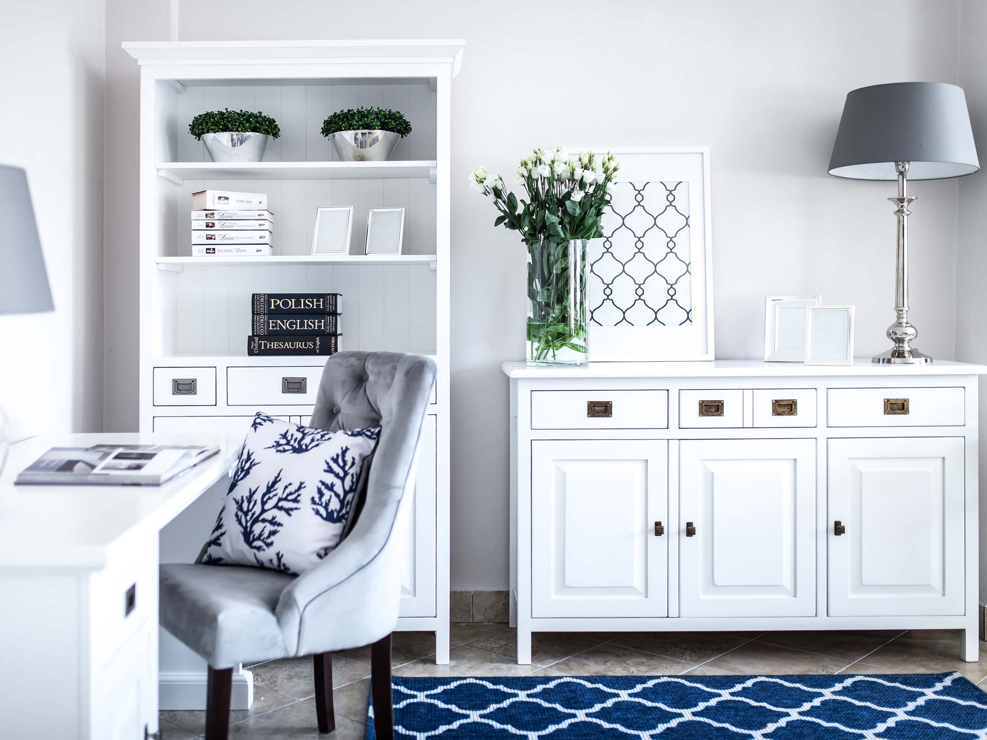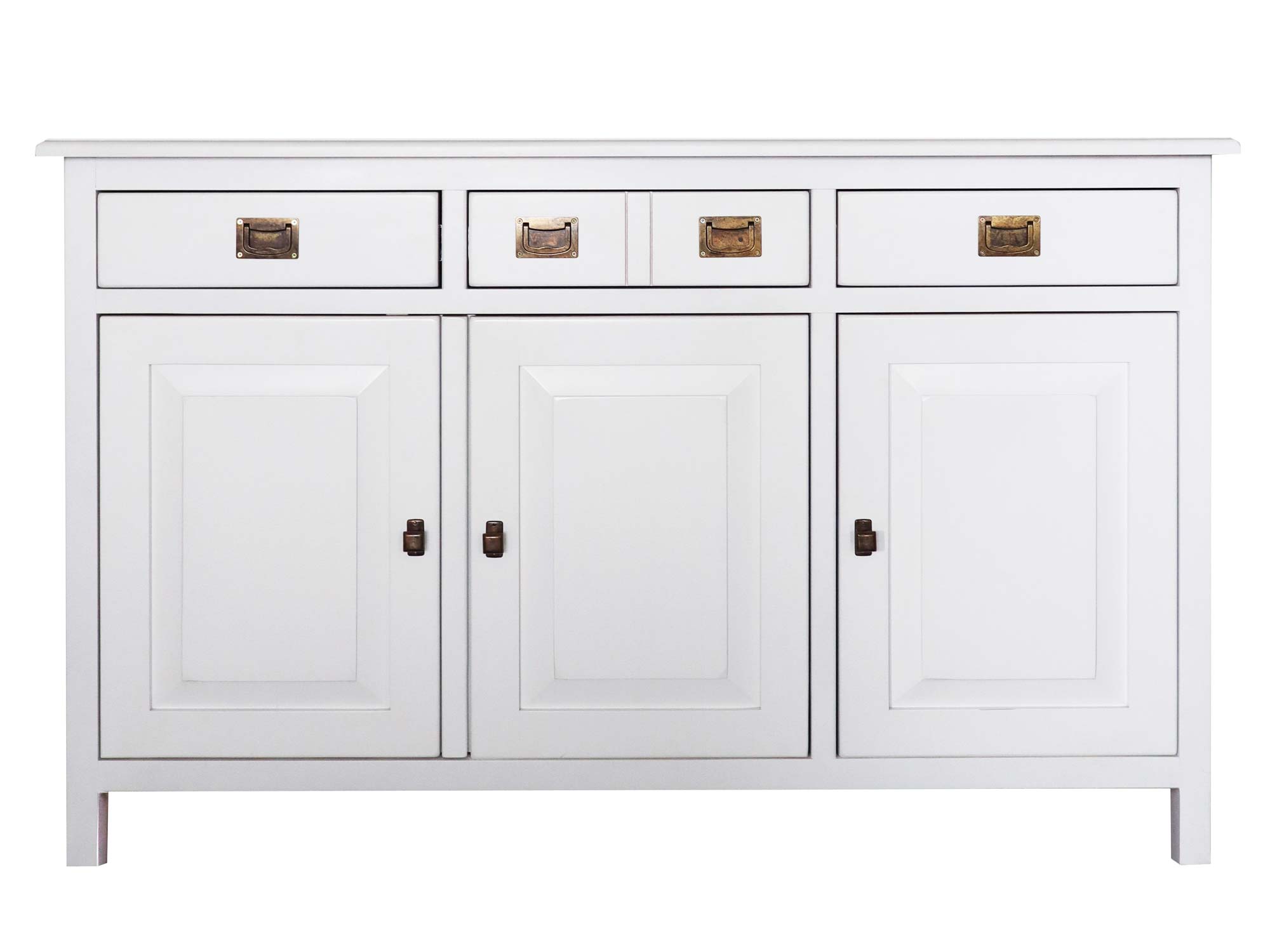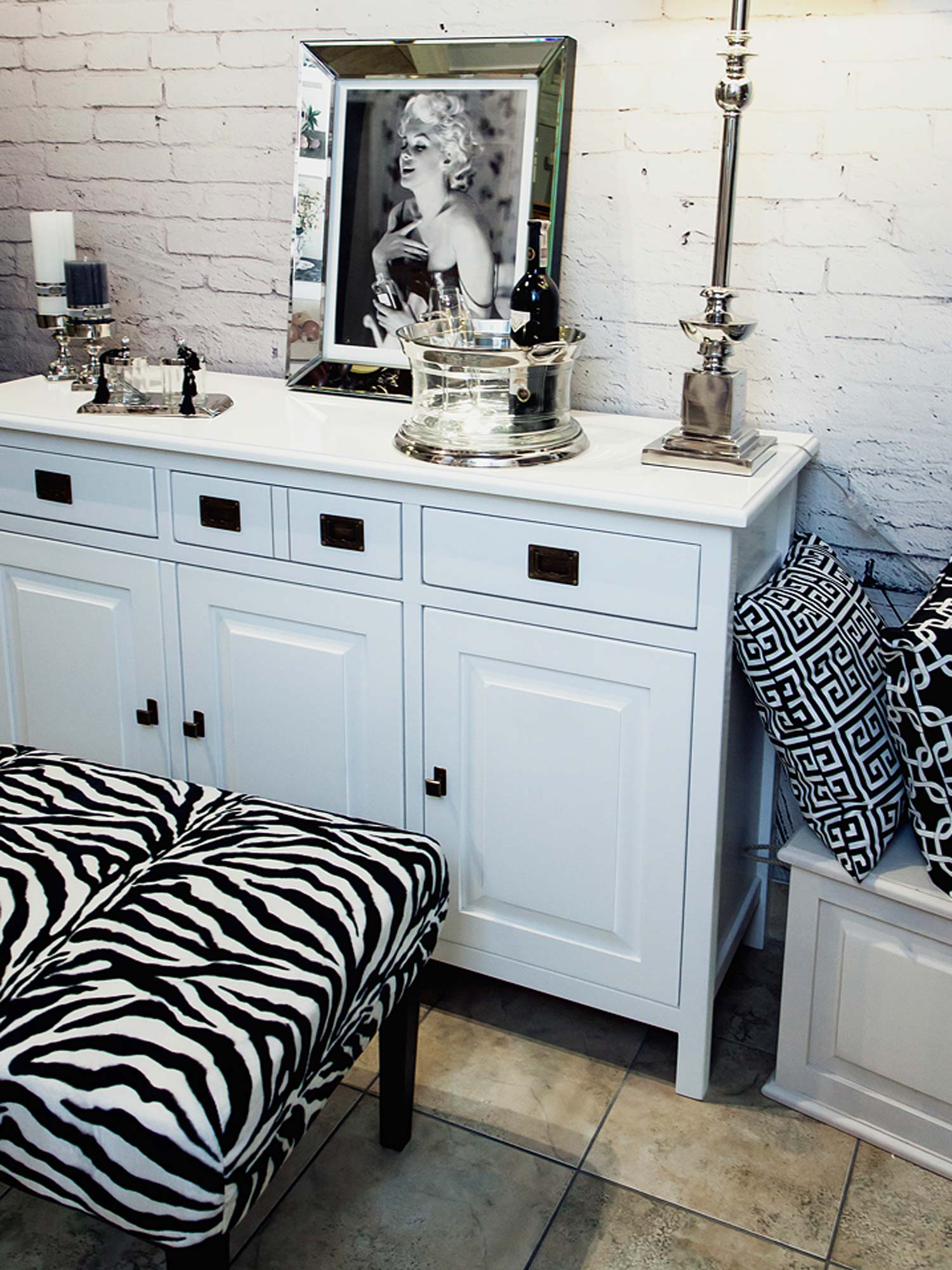 Klasyczny design komody idzie w parze z przemyślanym układem wnętrza, oferującym wygodny dostęp do przechowywanych rzeczy. Mebel wyposażony jest w pojemne szuflady oraz zamykane szafki, w których umieszczono po jednej półce, co ułatwia segregację domowych tekstyliów czy zastawy stołowej. Metalowe, stylizowane uchwyty nie tylko dodają uroku, ale zapewniają też komfortowe otwieranie, a solidna konstrukcja gwarantuje niezawodność podczas codziennego użytkowania.