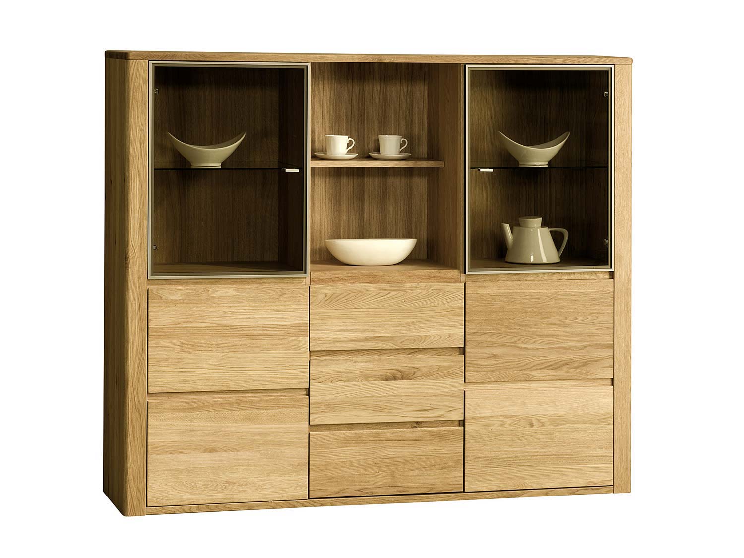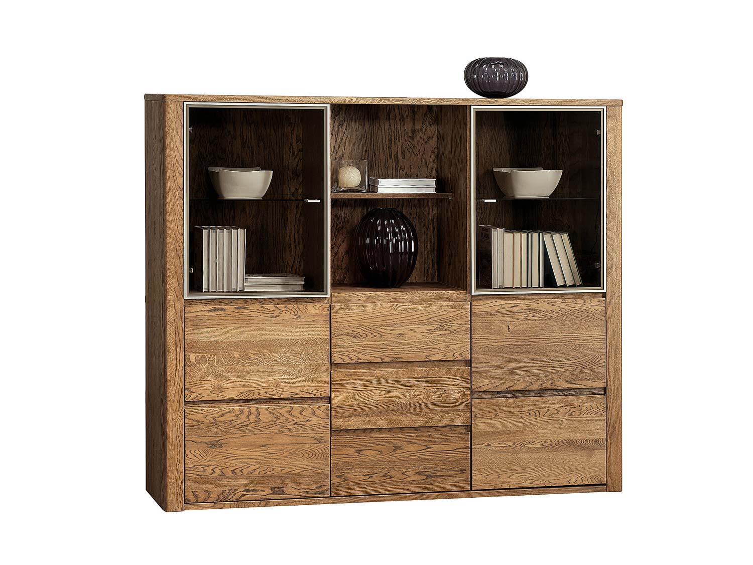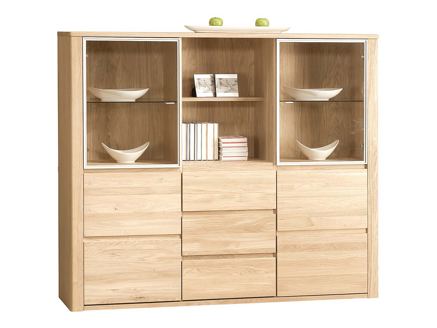 Kredens wyróżnia się możliwością wyboru wybarwienia, co pozwala idealnie dopasować go do indywidualnych preferencji aranżacyjnych. Wersja Bursztyn oferuje szczotkowane drewno z wyraźnie wyczuwalną strukturą porów i słojów, natomiast warianty Natura i Bianco zachwycają gładką, olejowaną lub woskowaną powierzchnią. Zastosowanie litego drewna na frontach oraz naturalnej okleiny dębowej na korpusie zapewnia spójność estetyczną oraz wysoką odporność na codzienne użytkowanie.