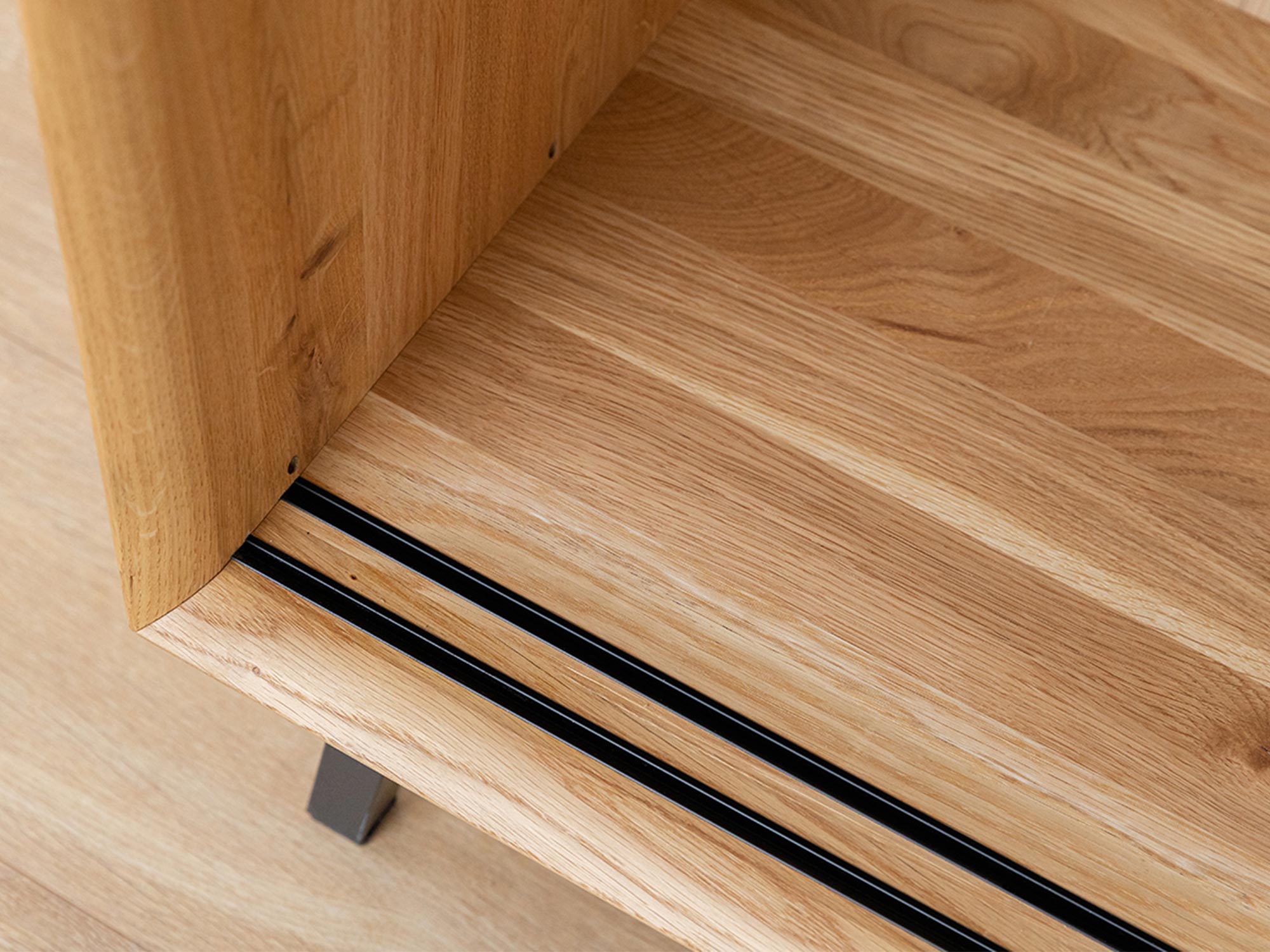 Front komody RTV z litego dębu z poziomym usłojeniem
