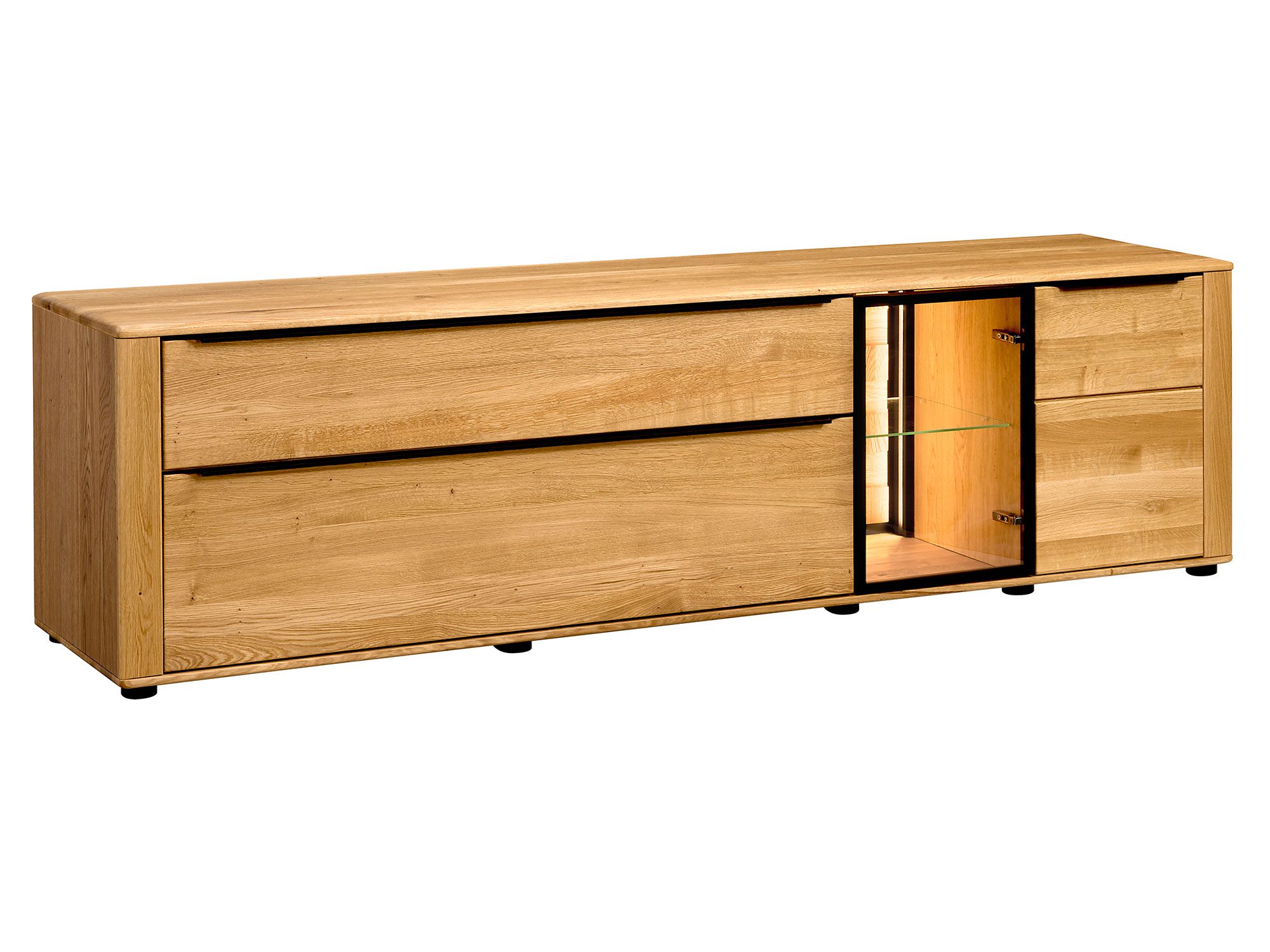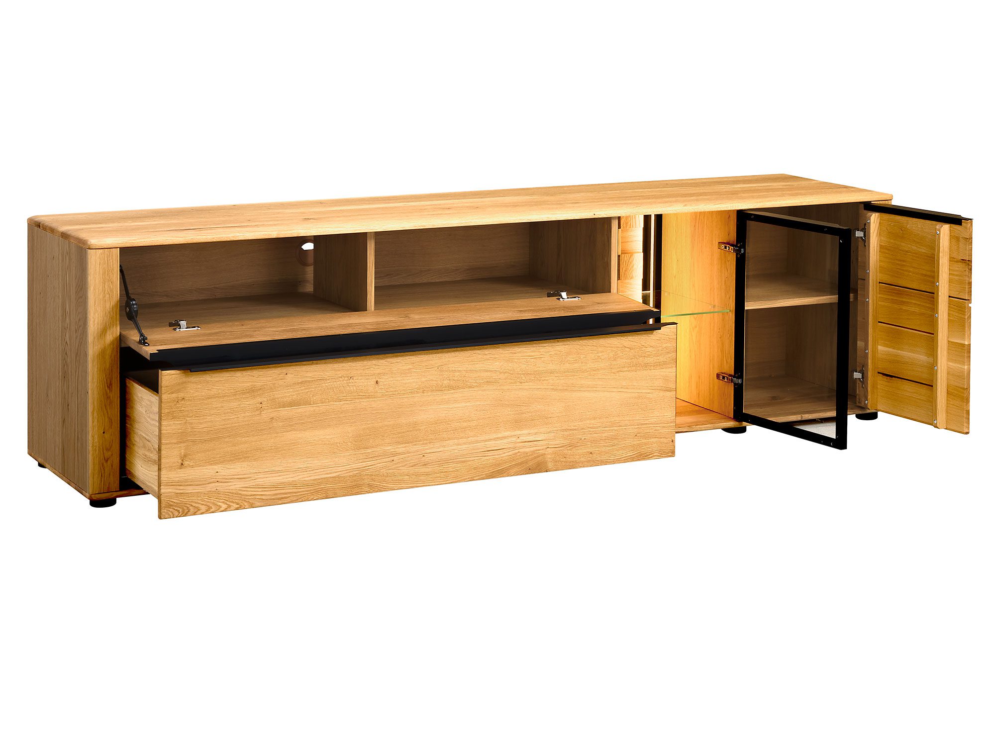 Nowoczesna szafka RTV z dębu z otwartą półką