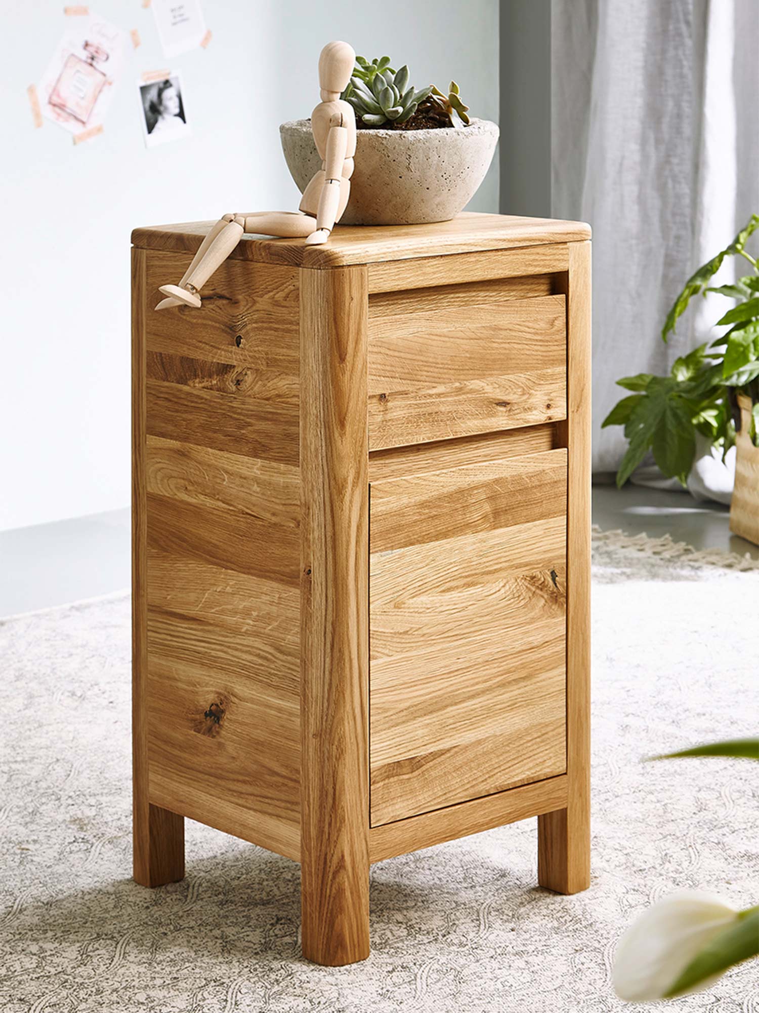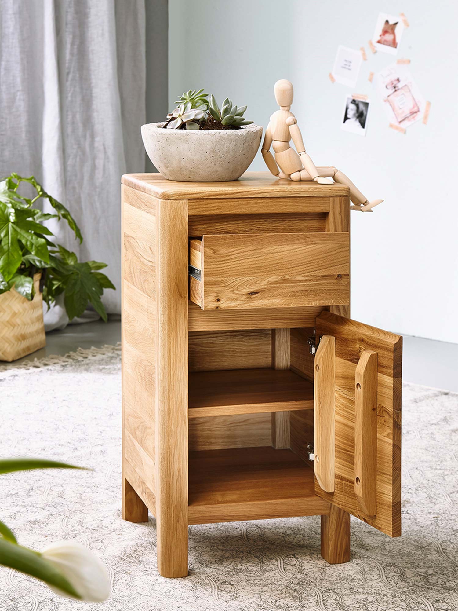 Szafka z litego dębu z wysuwaną szufladą i prostą formą