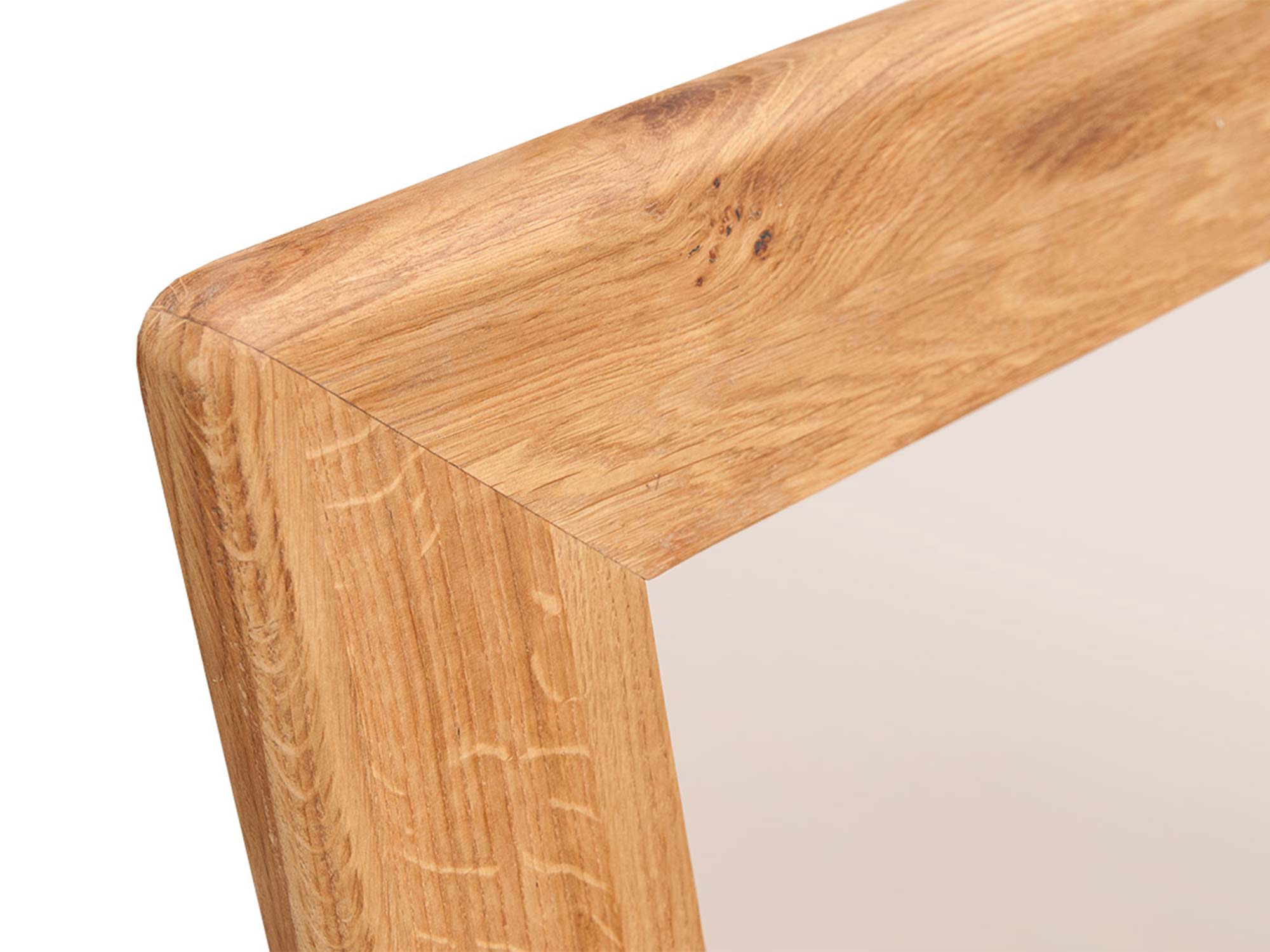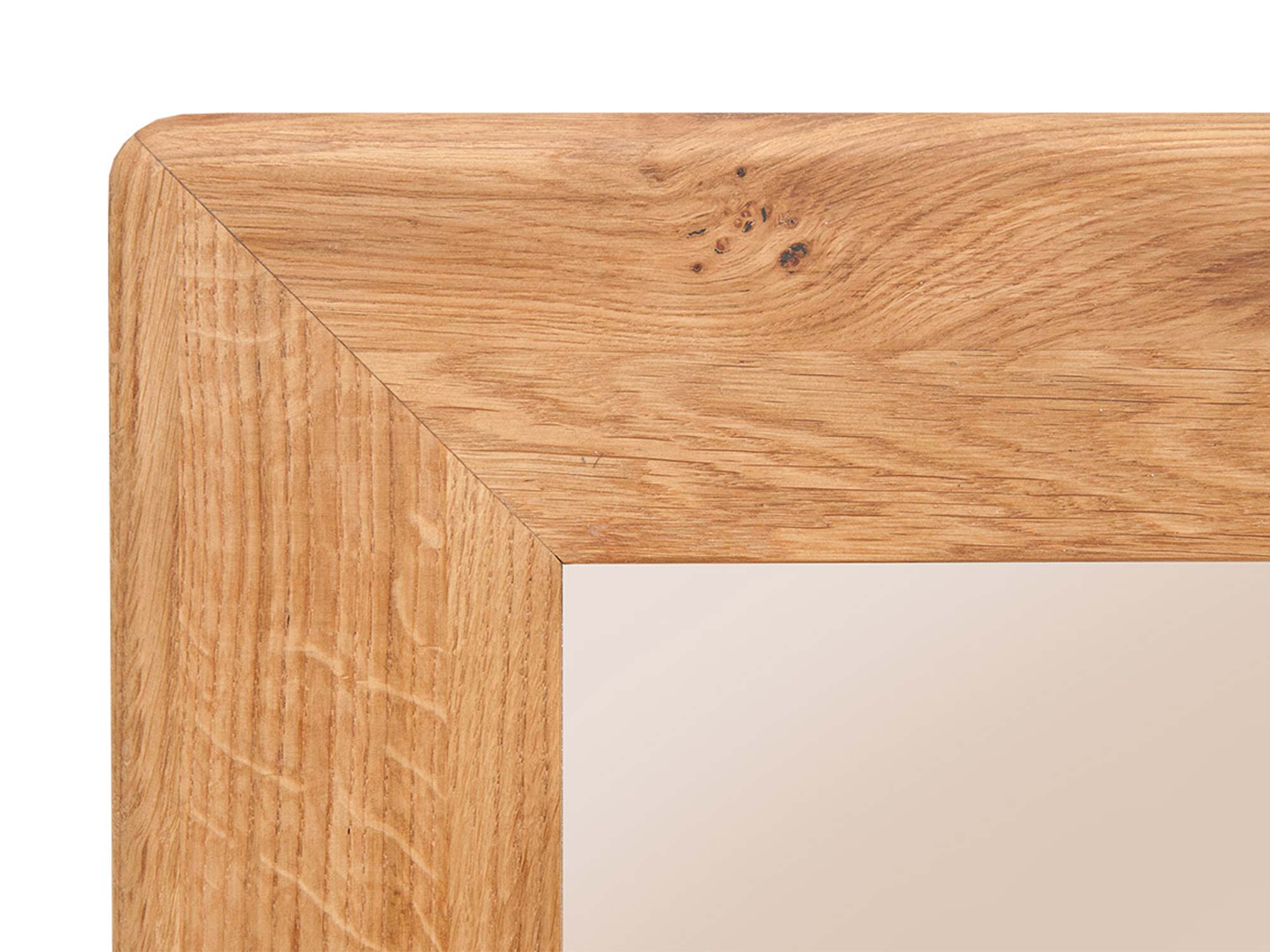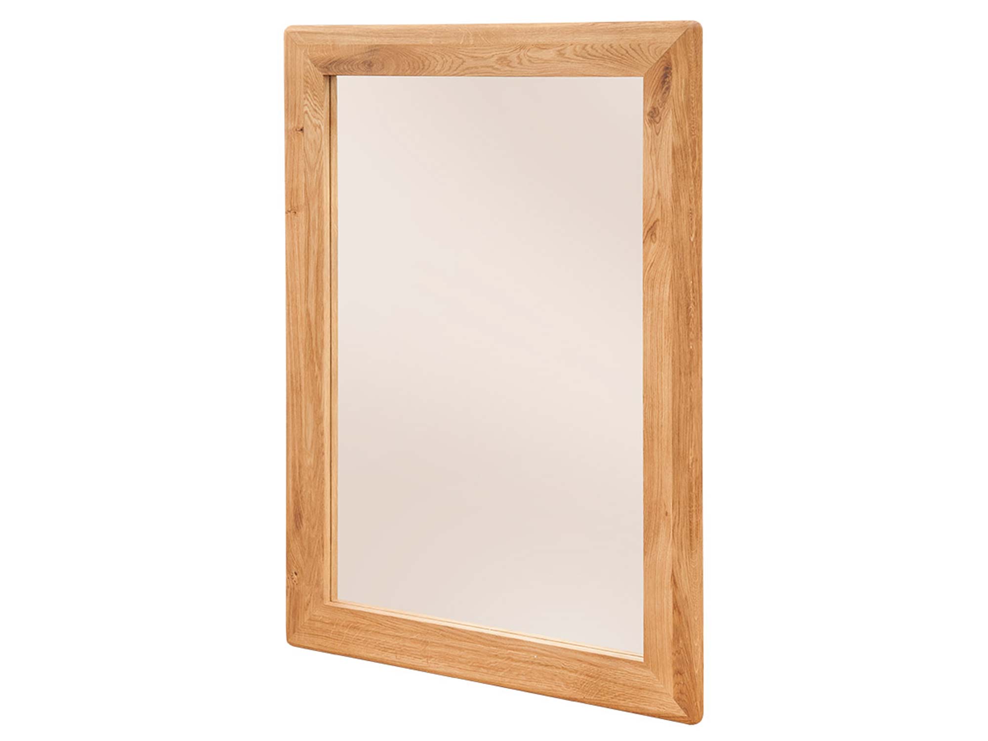 Lustro z delikatnym zaokrągleniem narożnika i dębową ramą
