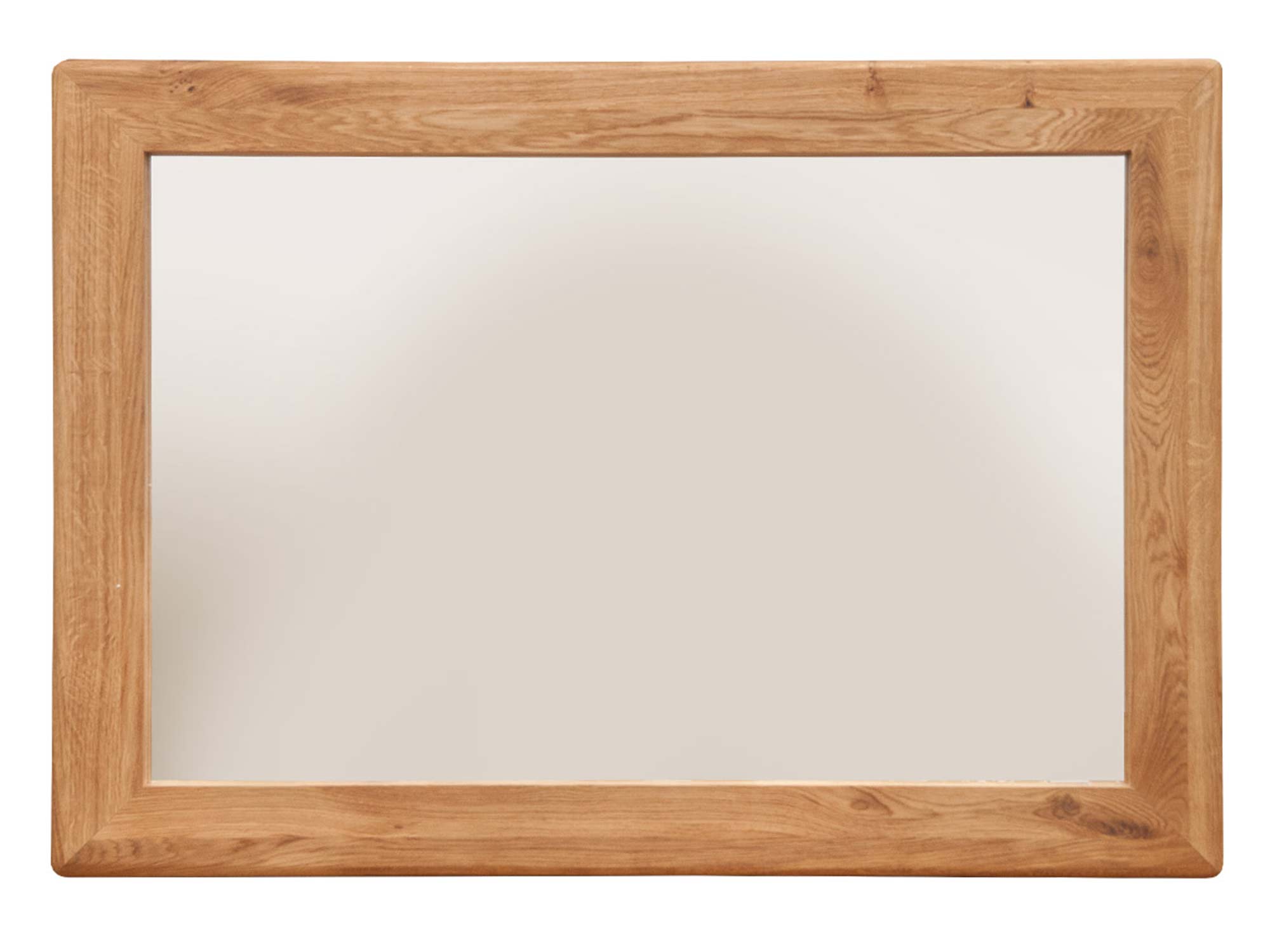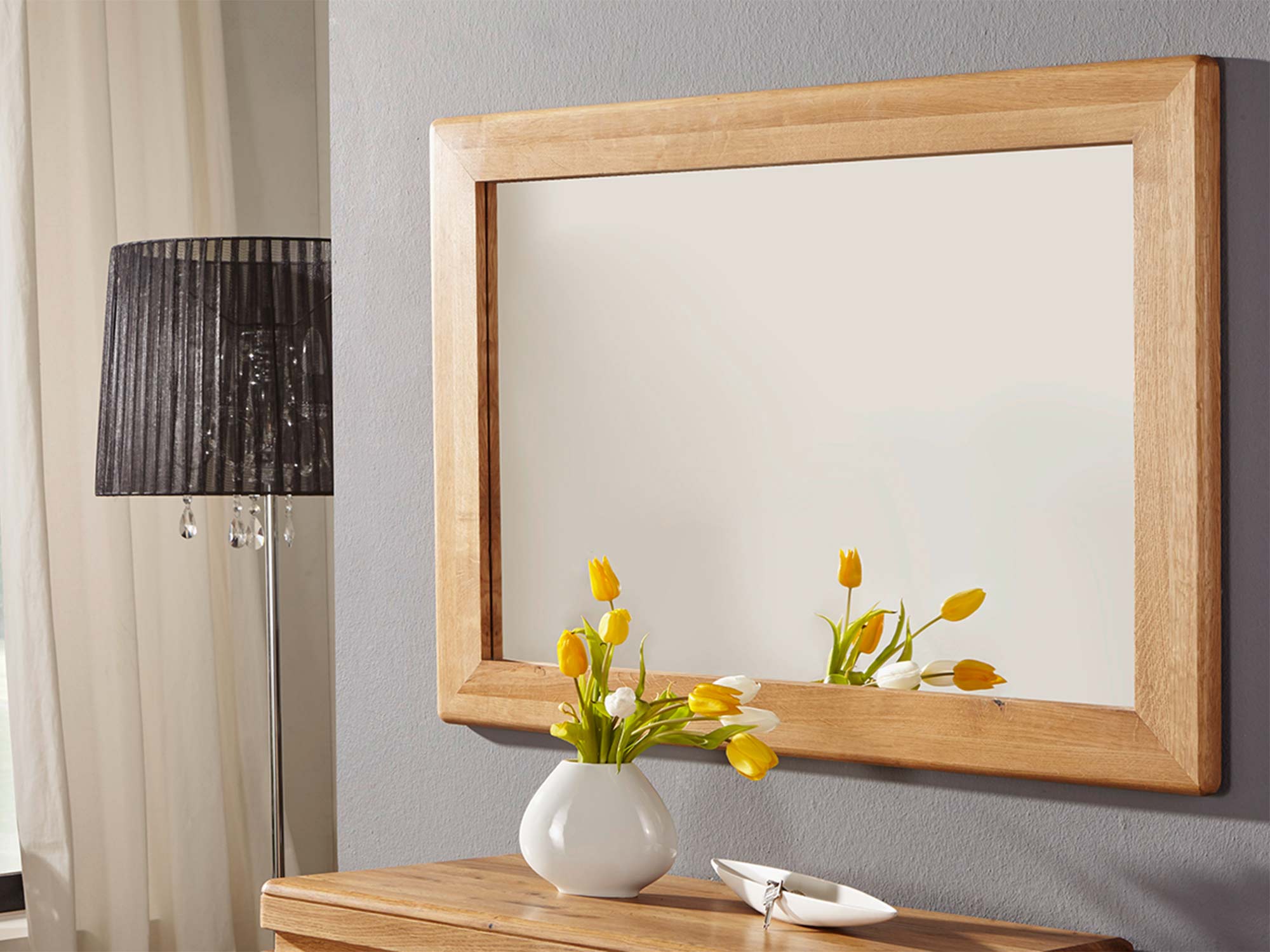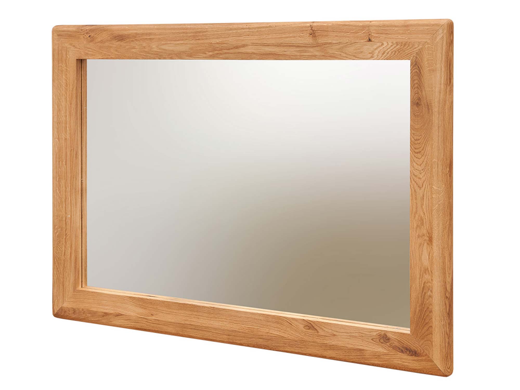 Lustro z delikatnym zaokrągleniem narożnika i dębową ramą