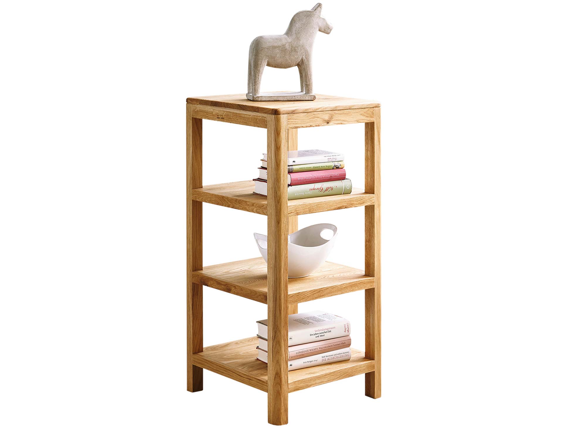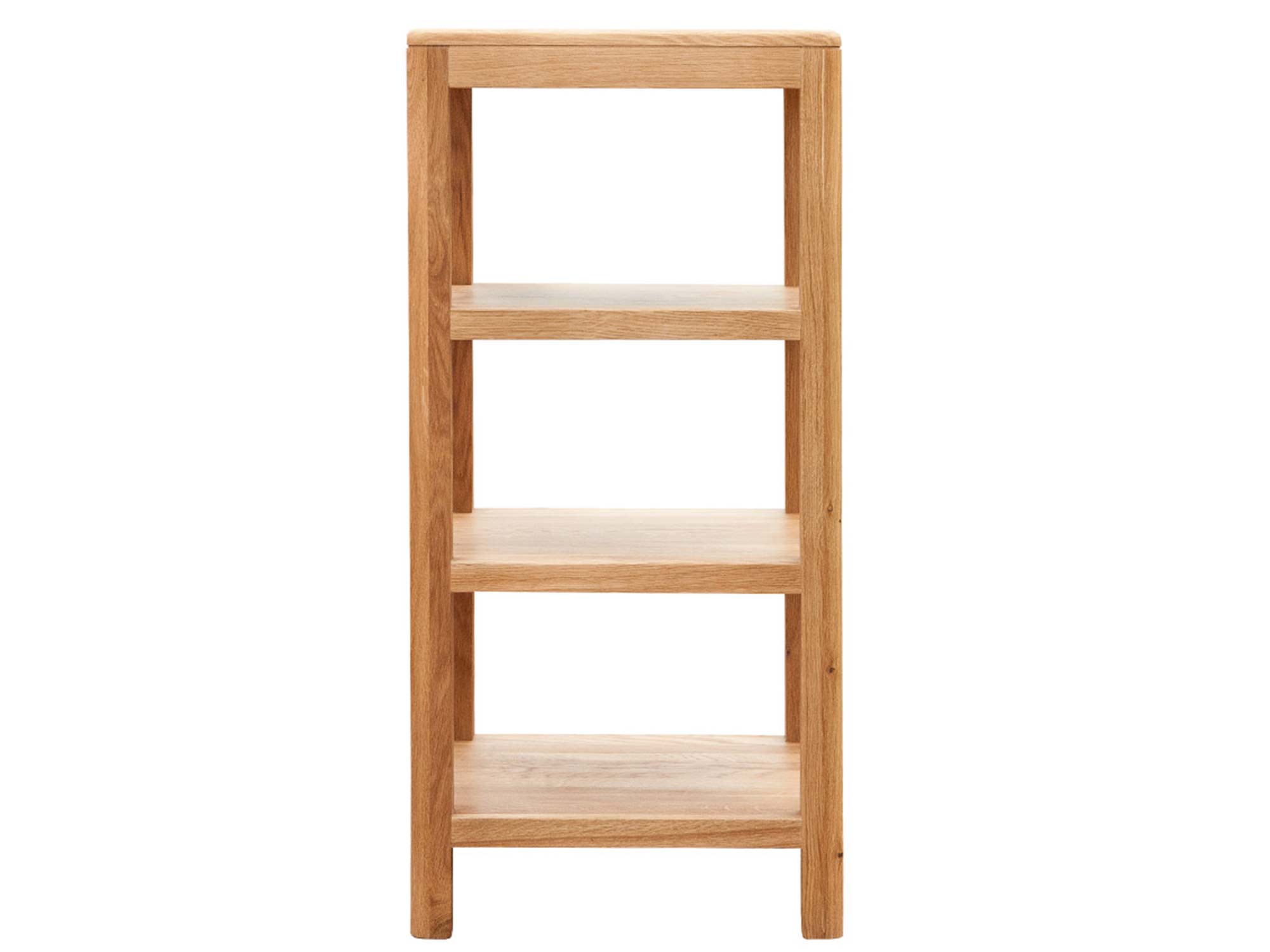 Mimo swoich niewielkich rozmiarów, mebel ten oferuje znaczną funkcjonalność dzięki przemyślanemu układowi przestrzeni. Wyposażony w trzy pojemne półki, stanowi doskonałe miejsce do wyeksponowania ulubionych książek, dekoracji czy pamiątek rodzinnych. Oszczędna bryła z subtelnym wcięciem pod górnym blatem nadaje całości lekkości i wyrafinowania, nie przytłaczając optycznie pomieszczenia. Jest to rozwiązanie idealne dla osób ceniących porządek i harmonię, które szukają mebli łączących walory użytkowe z wysoką estetyką wykonania.
