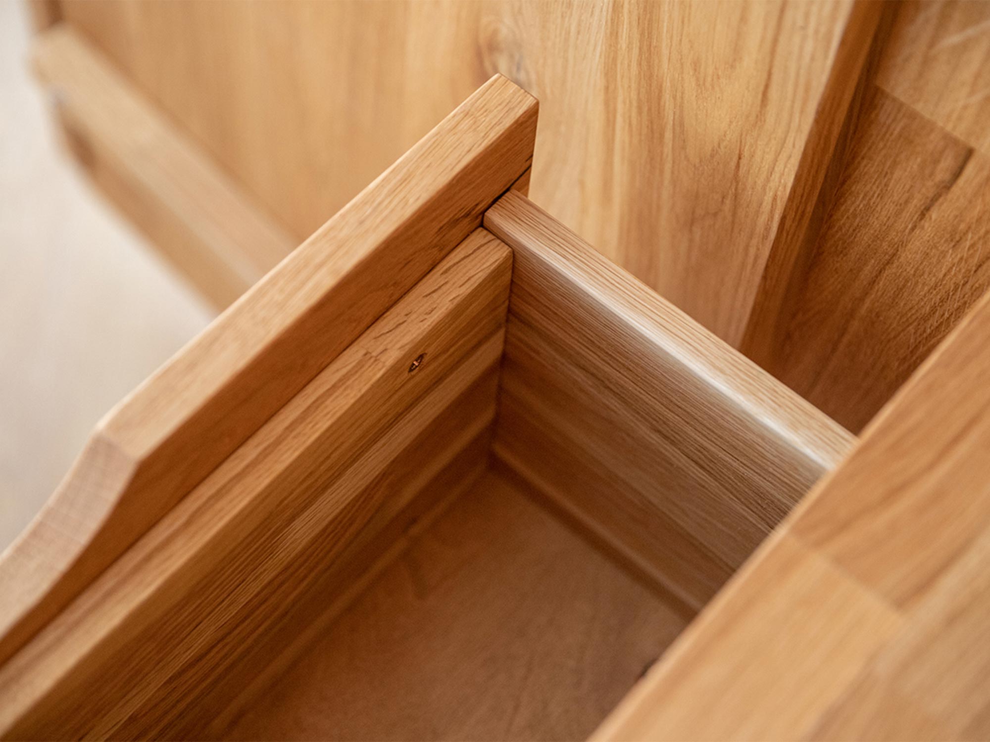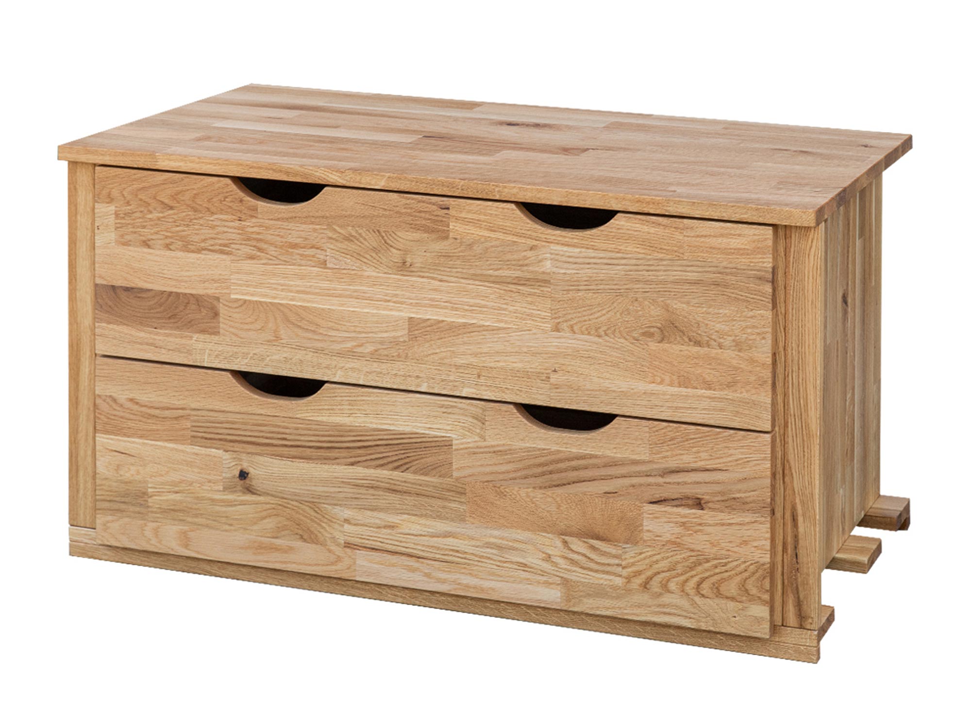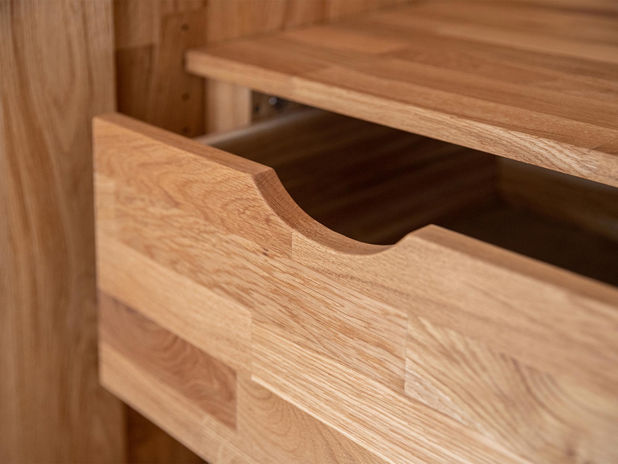 Moduł szafy z kolekcji Kopenhaga to przykład rzemiosła najwyższej próby, gdzie priorytetem jest jakość zastosowanych materiałów. Wykorzystanie naturalnego dębu litego sprawia, że każda sztuka posiada unikalny rysunek słojów i sęków, co nadaje meblowi autentycznego charakteru. Powierzchnia drewna została zabezpieczona olejem, który nie tylko chroni strukturę przed uszkodzeniami mechanicznymi, ale również ułatwia pielęgnację i konserwację. Dzięki solidnej budowie opartej na elementach o grubości 2 cm, ten element wyposażenia jest inwestycją na lata, odporną na trudy codziennej eksploatacji.