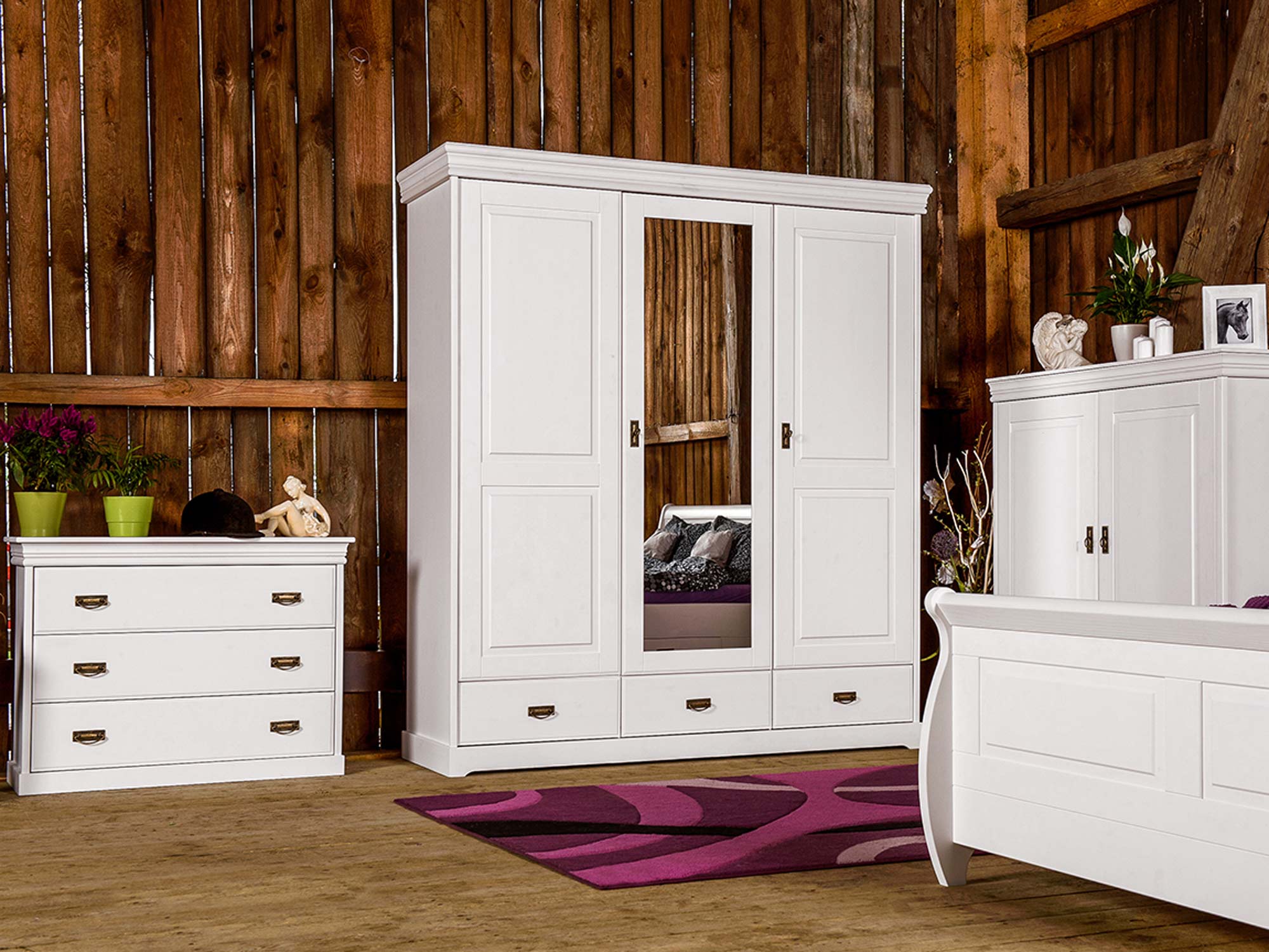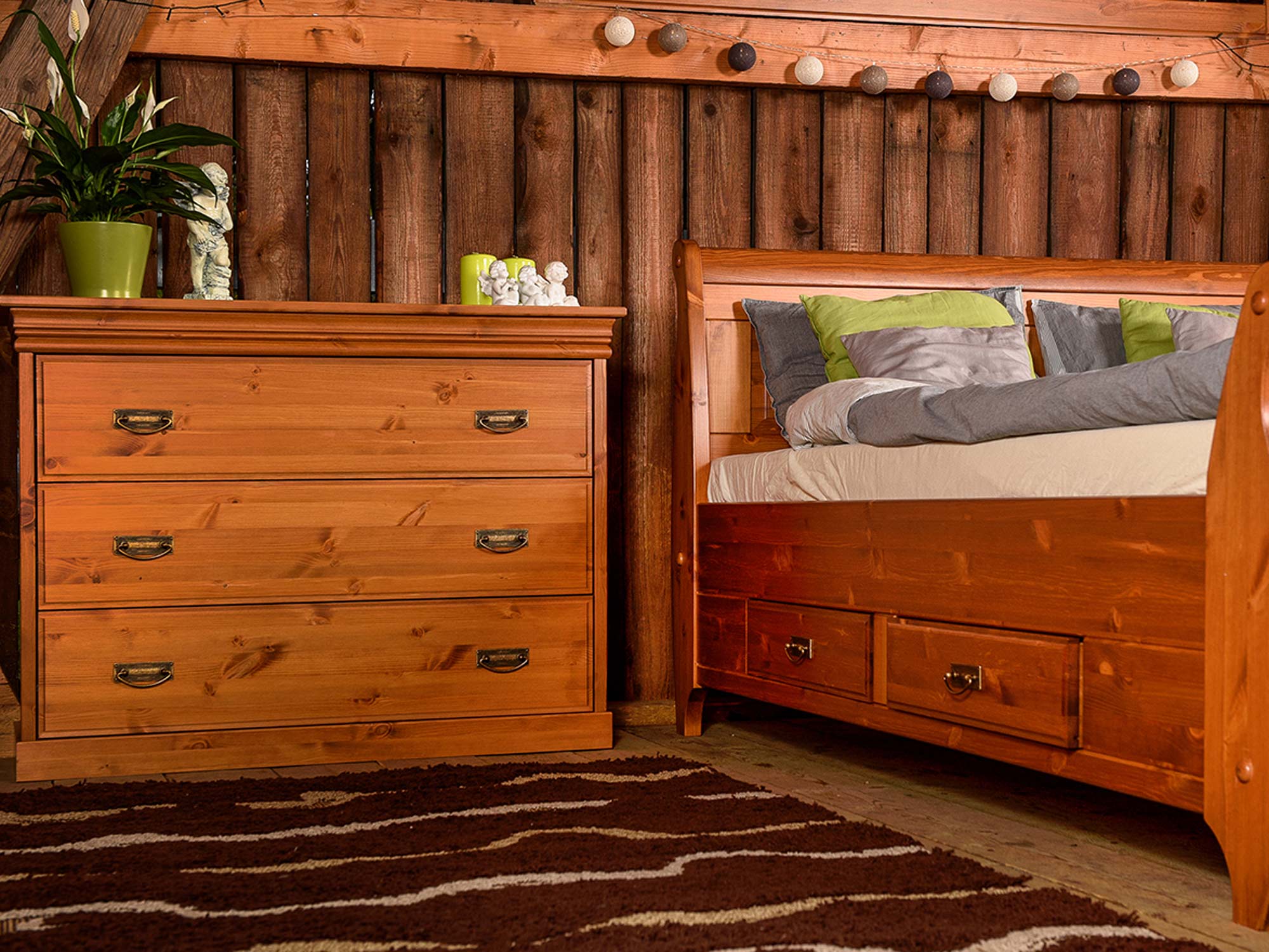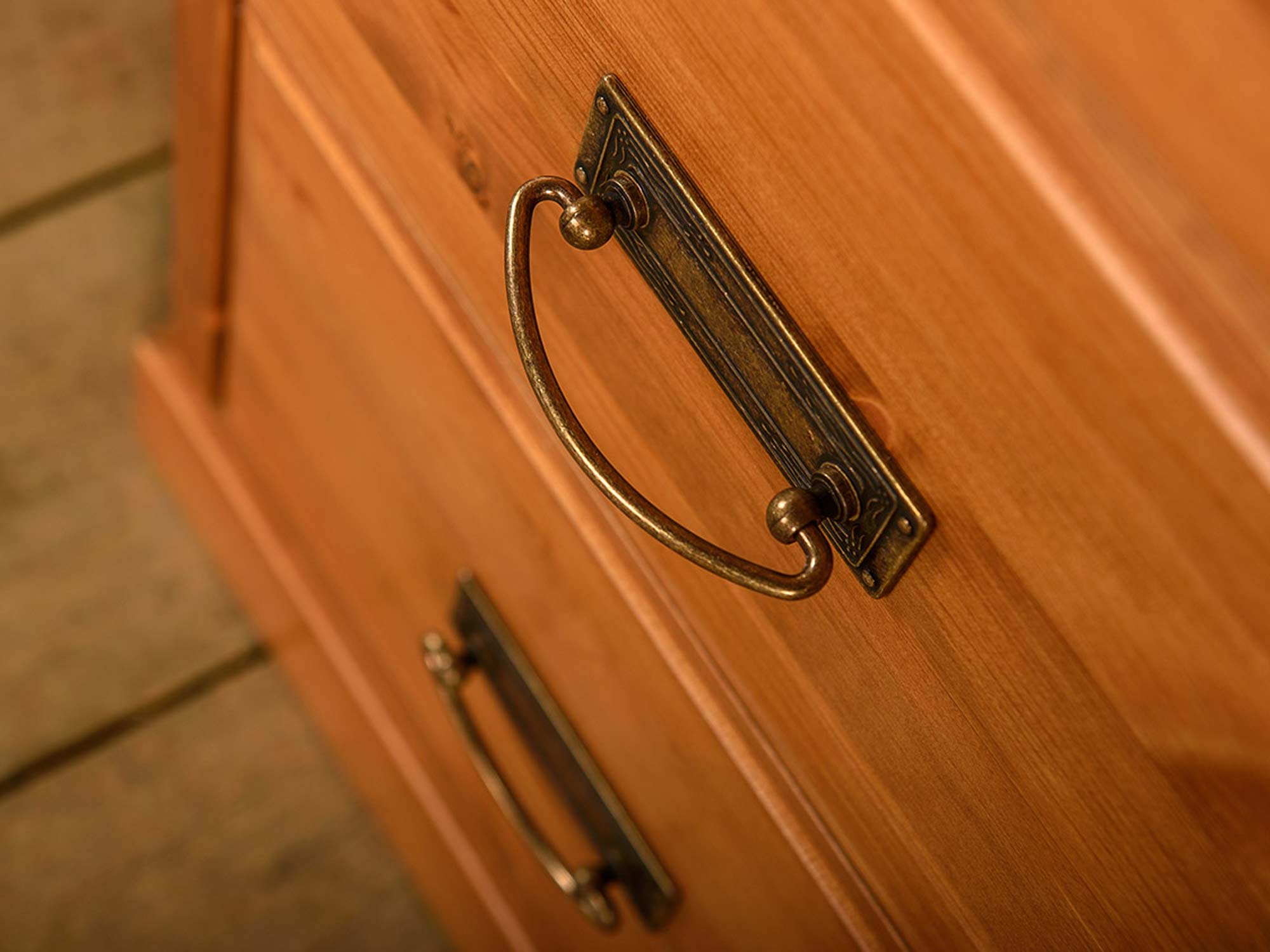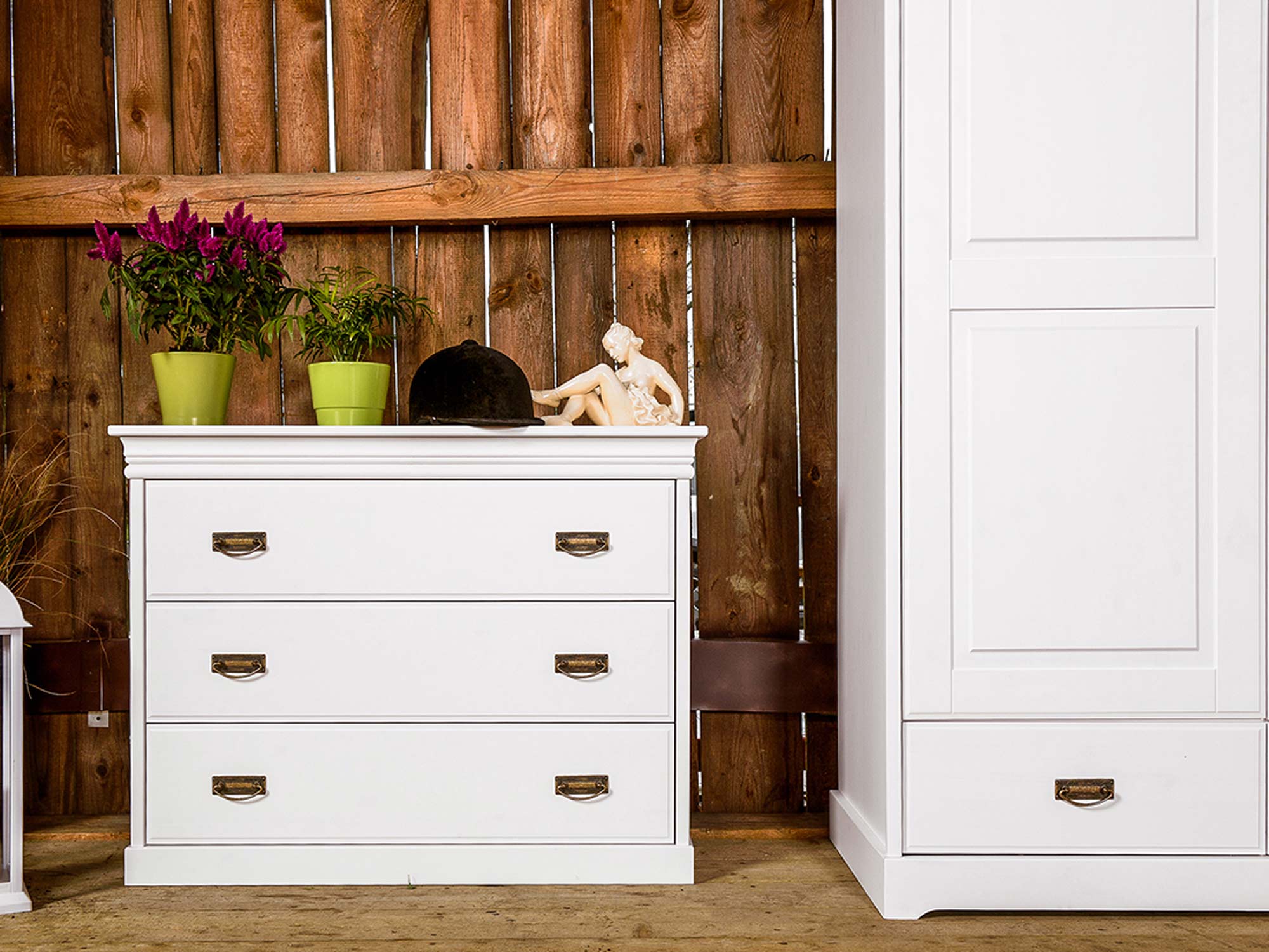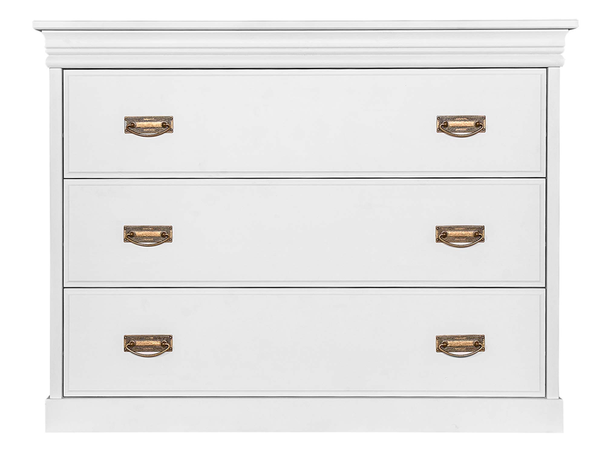 Co najistotniejsze, mała komoda ANADI z szufladami została wykonana z litego drewna sosnowego. Niewątpliwie gwarantuje to solidność wykonania i doskonałą trwałość. W połączeniu z ozdobnym cokołem, subtelnymi frezami na drzwiczkach i wieńcem na styl prowansalski, tworzy elegancki, schludny i ponadczasowy mebel na pokolenia. Co więcej dostępność kilku wybarwień pozwala na dopasowanie mebla do każdego wnętrza, znajdzie się wariant dla fanów klasyki i prostoty jak i nieszablonowości. Dodatkowo uchwyty stylizowane na stare złoto dodają meblu charakteru i unikatowości. Ponadto szuflady komody oparte są na prowadnicach z systemem cichego domyku, co umila użytkowanie i dodatkowo chroni mebel przed uszkodzeniami.
