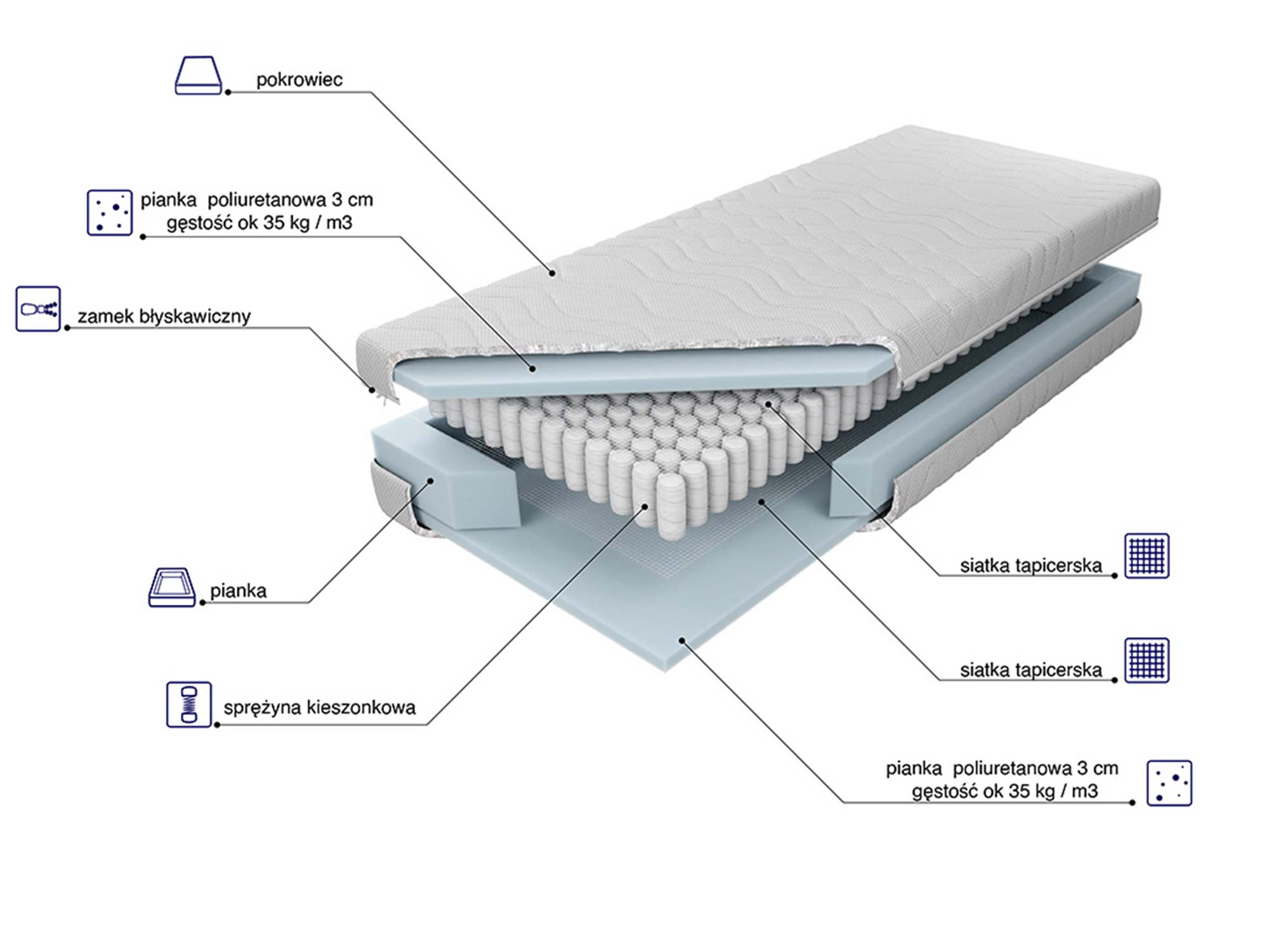 Materac kieszeniowy z pianką T35