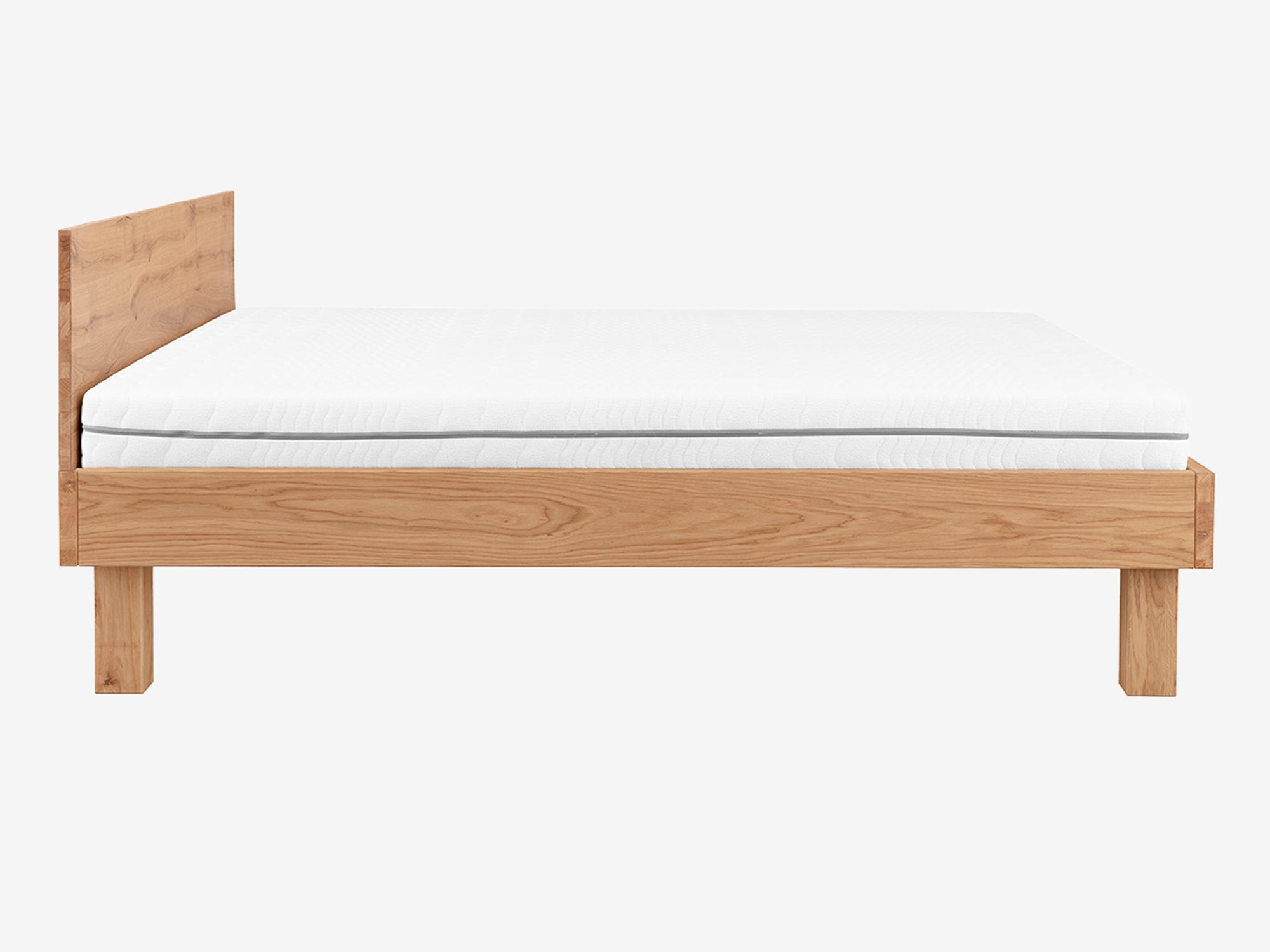 Łóżko dębowe z materacem i zagłówkiem drewnianym na masywnych nogach profil