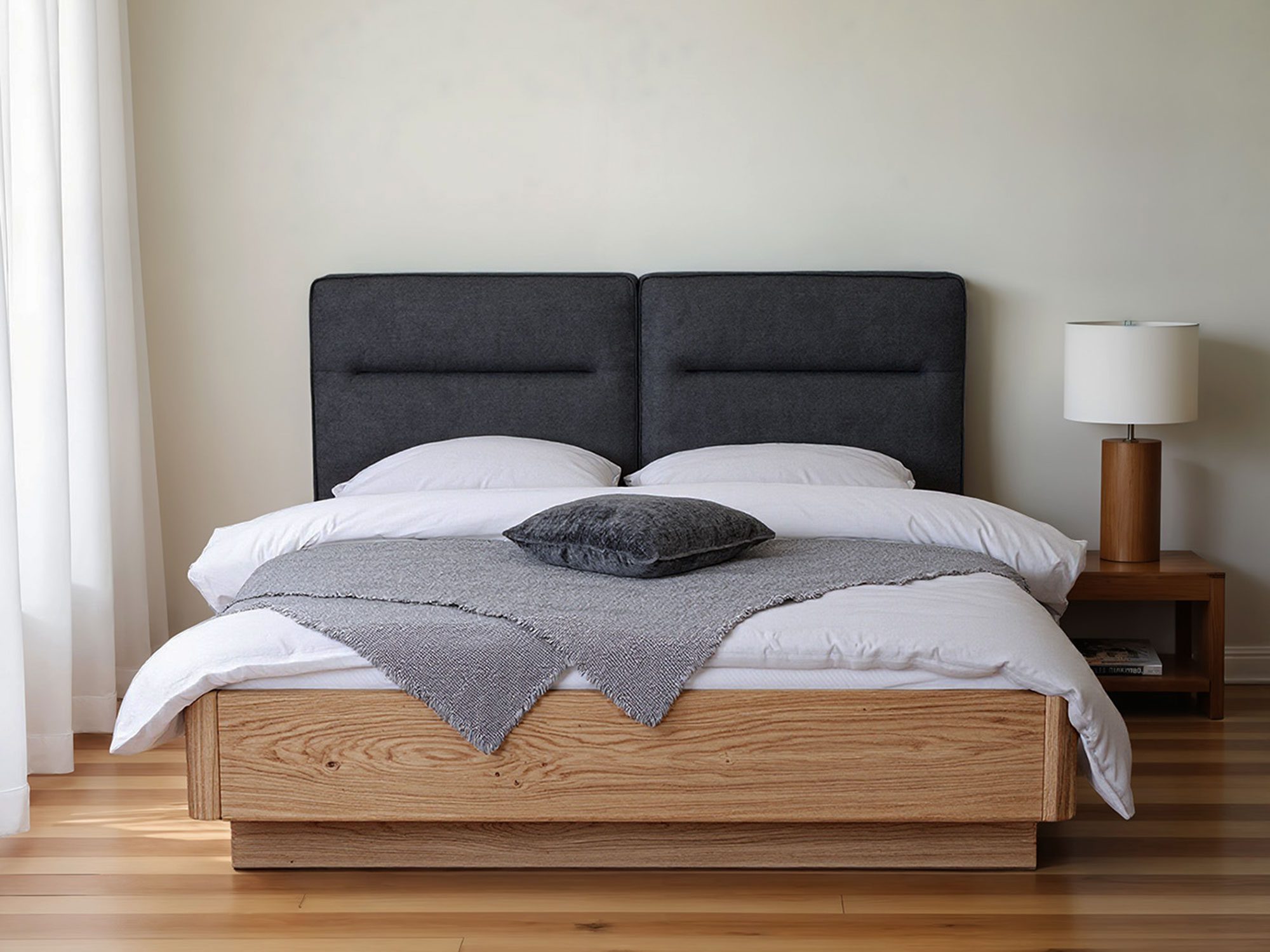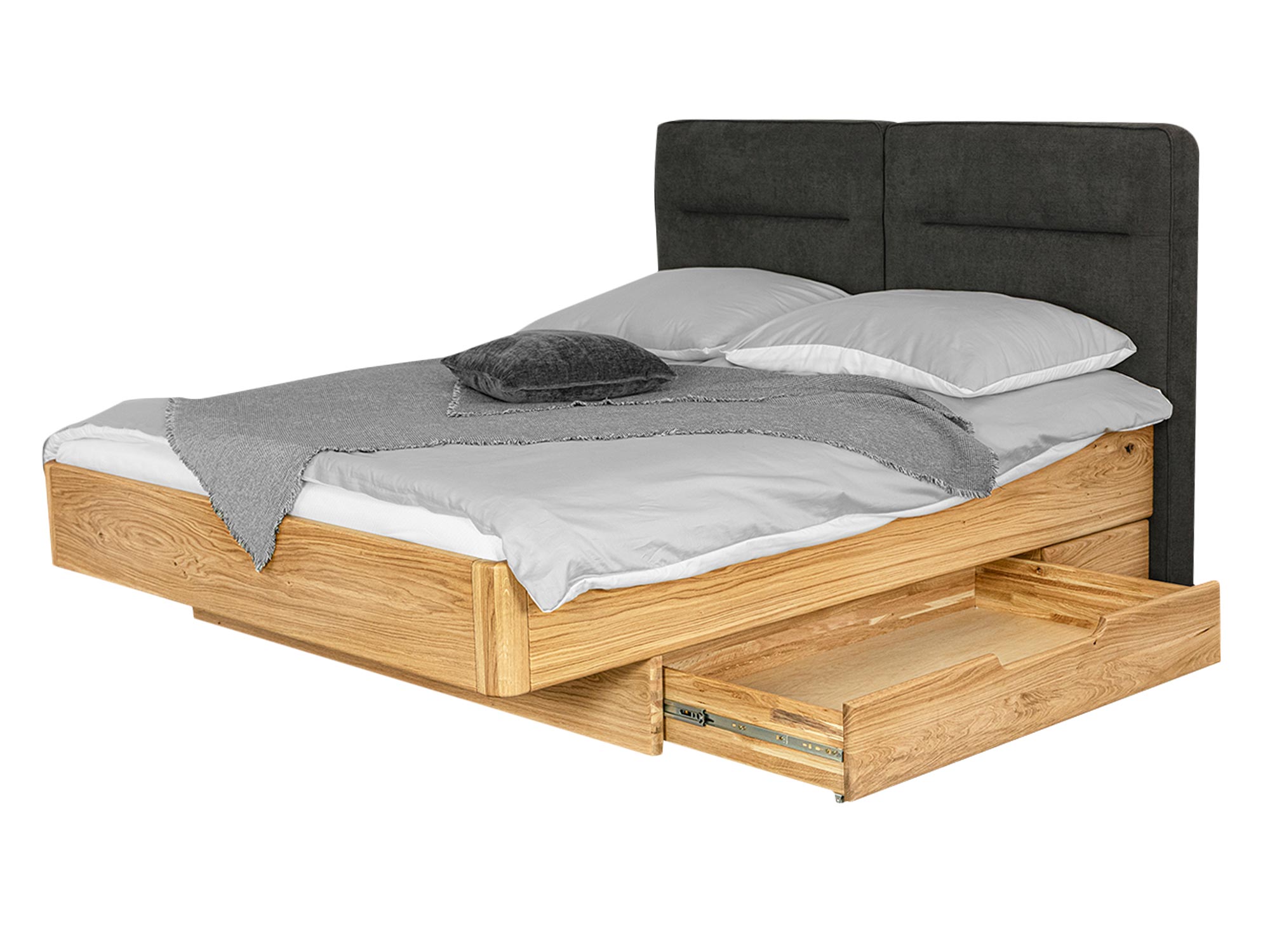 Serce modelu Surara stanowi starannie wyselekcjonowane drewno dębowe, które gwarantuje stabilność i długowieczność konstrukcji. Powierzchnia mebla została wykończona naturalnym olejem, który wnika głęboko w strukturę drewna, eksponując jego sęki i unikalny rysunek, a jednocześnie chroniąc przed zabrudzeniami. Połączenie surowości dębu z miękkością tapicerowanego zagłówka tworzy mebel kompletny, który sprzyja wieczornemu relaksowi z książką. Dzięki zaokrąglonym krawędziom ramy, bryła zyskuje na lekkości i jest bezpieczniejsza w codziennym użytkowaniu, co jest istotne w mniejszych sypialniach.