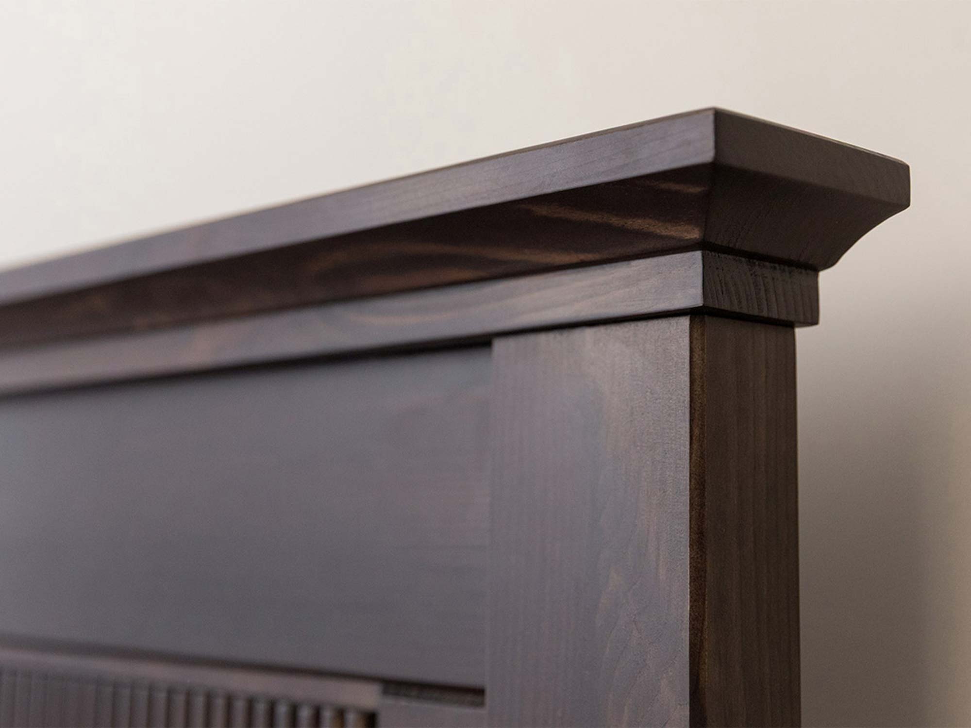 Zagłówek łóżka drewnianego ciemnobrązowego z ryflowanym panelem detal