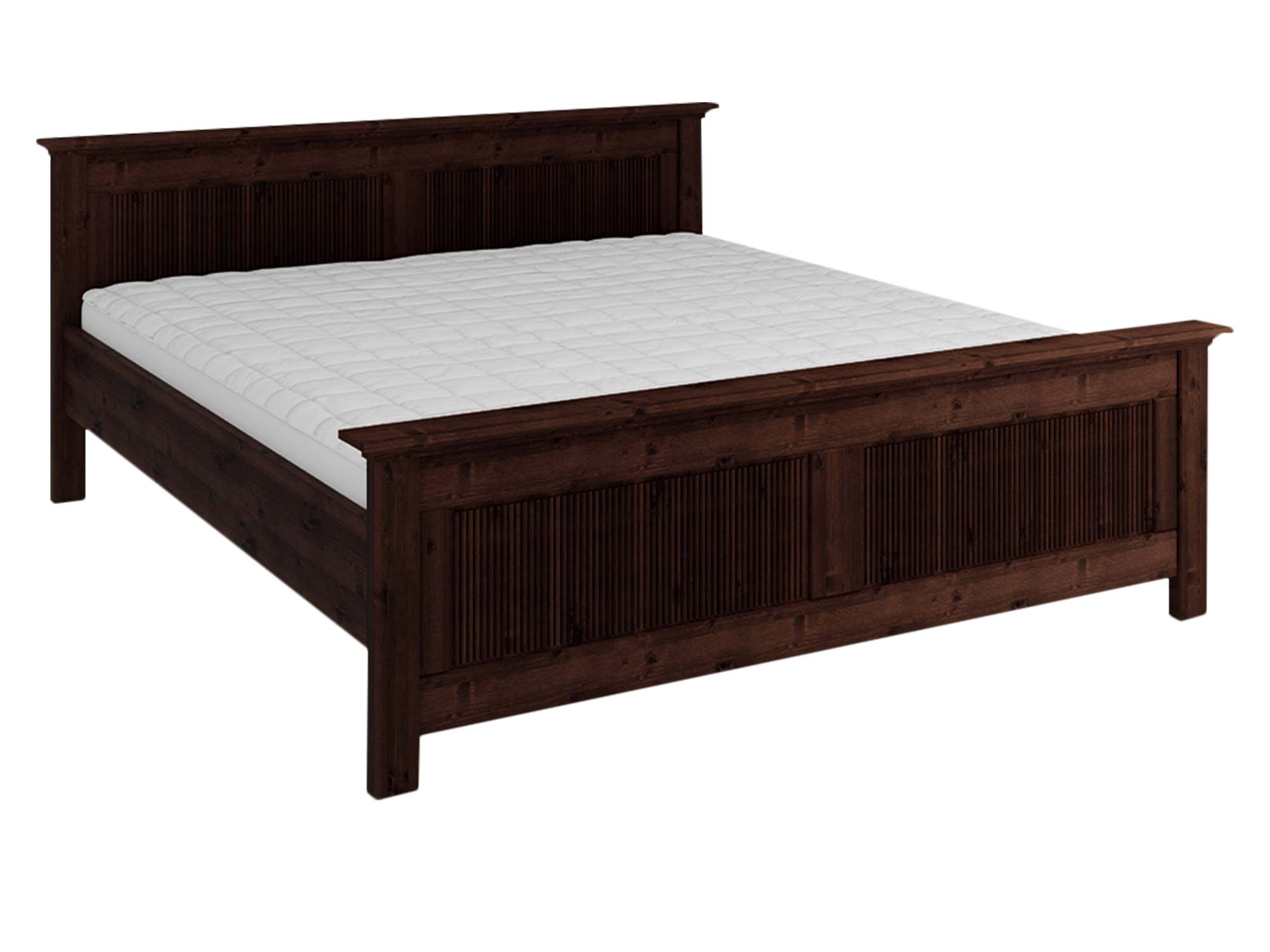 Łóżko drewniane ciemnobrązowe 160x200 z ryflowanymi panelami na białym tle