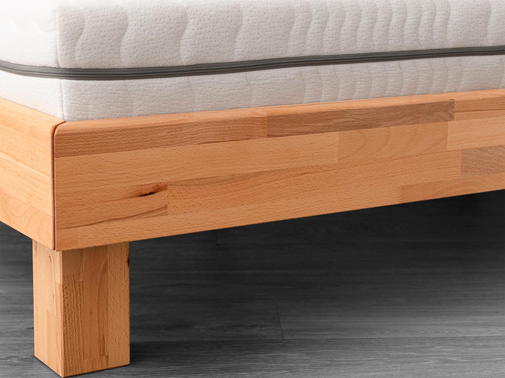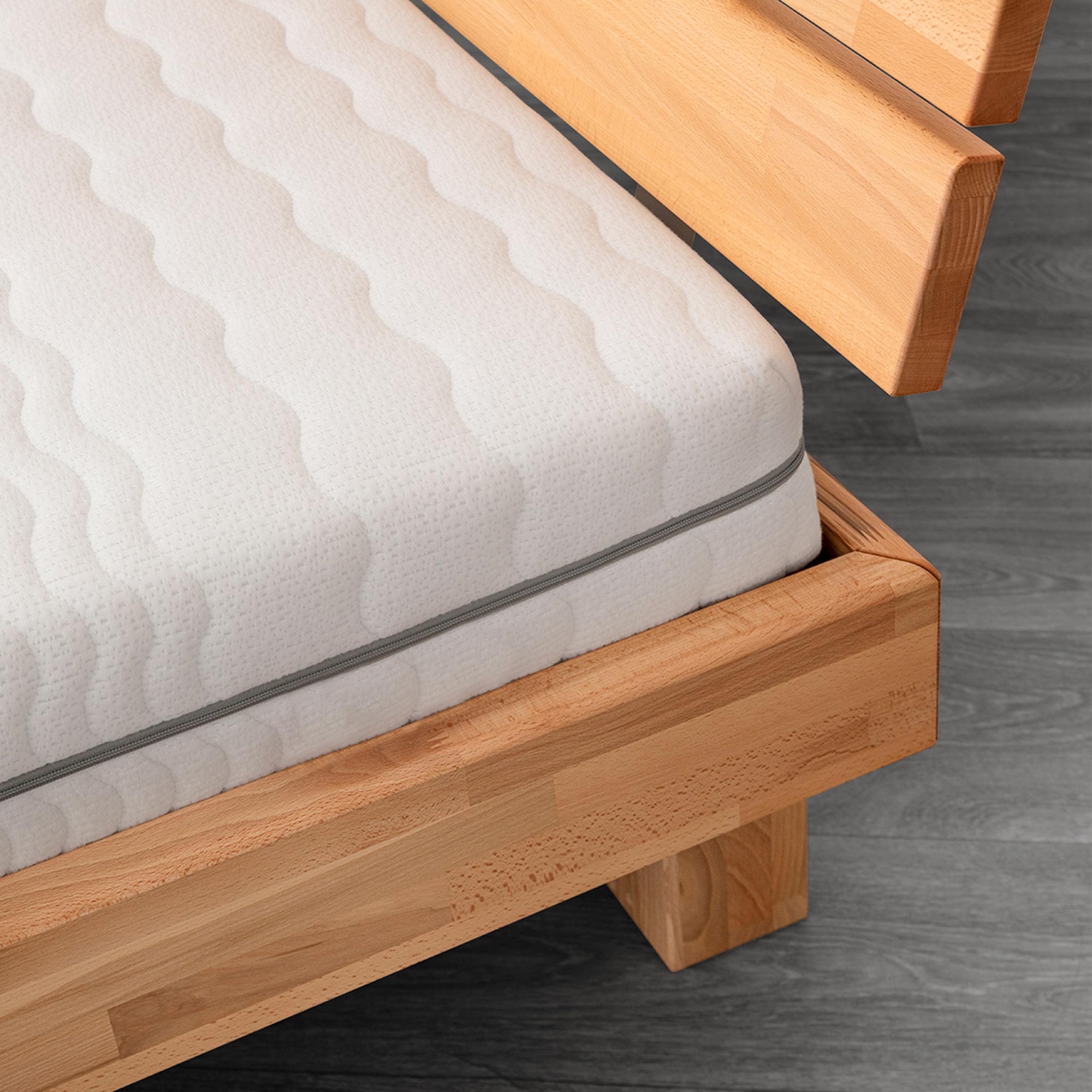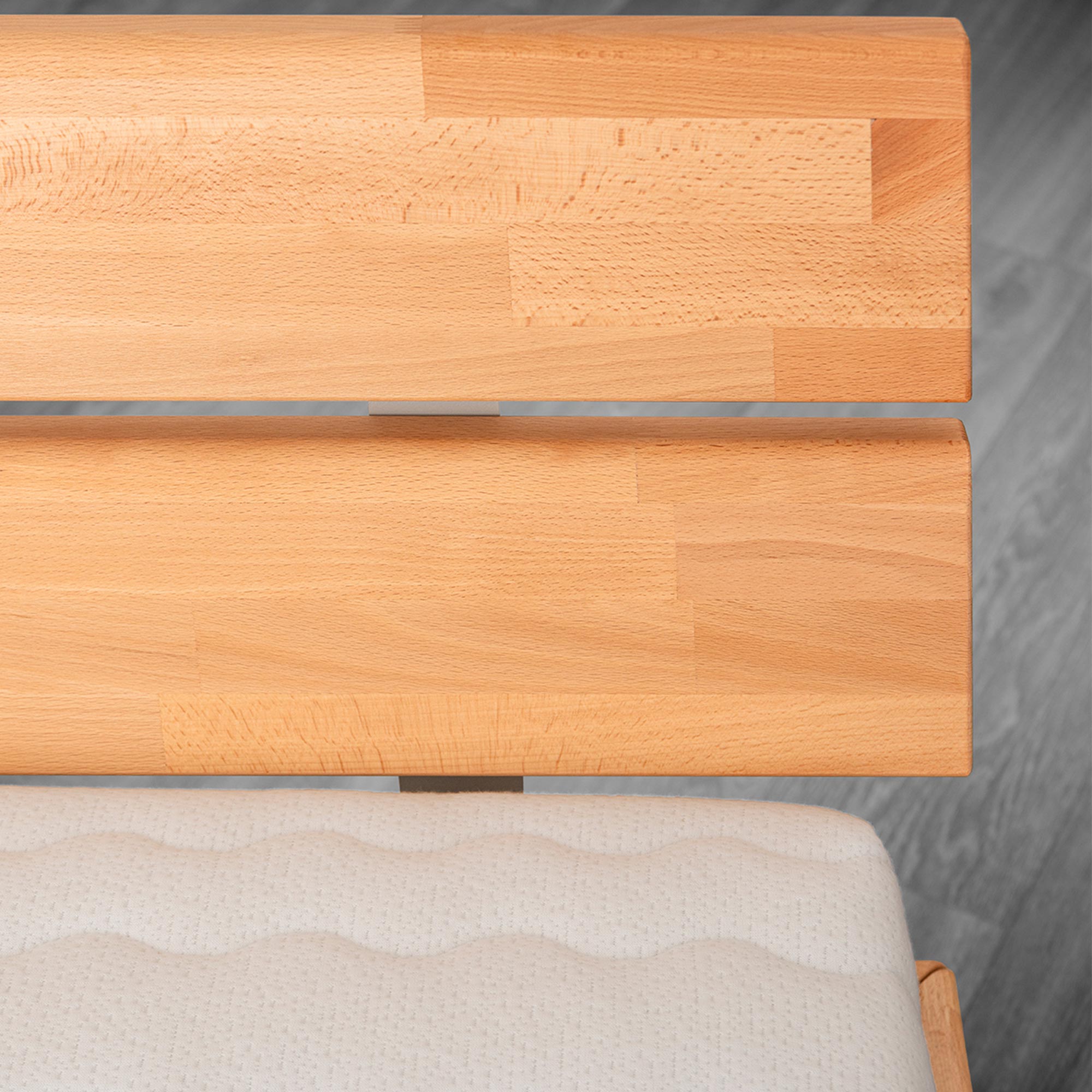 Podstawą tego modelu jest w 100% lite drewno bukowe, cenione w stolarstwie za swoją twardość i długowieczność. Elementy ramy są łączone za pomocą techniki mikrowczepów, co skutecznie stabilizuje surowiec i minimalizuje ryzyko naturalnej pracy drewna czy wypaczania się elementów. Takie rozwiązanie konstrukcyjne, wsparte masywnymi nogami i precyzyjnymi okuciami, gwarantuje, że łóżka te nie kołyszą się ani nie skrzypią nawet przy intensywnym użytkowaniu. Naturalne wykończenie olejem lub olejowoskiem wydobywa głębię koloru i sprawia, że powierzchnia jest aksamitna w dotyku.