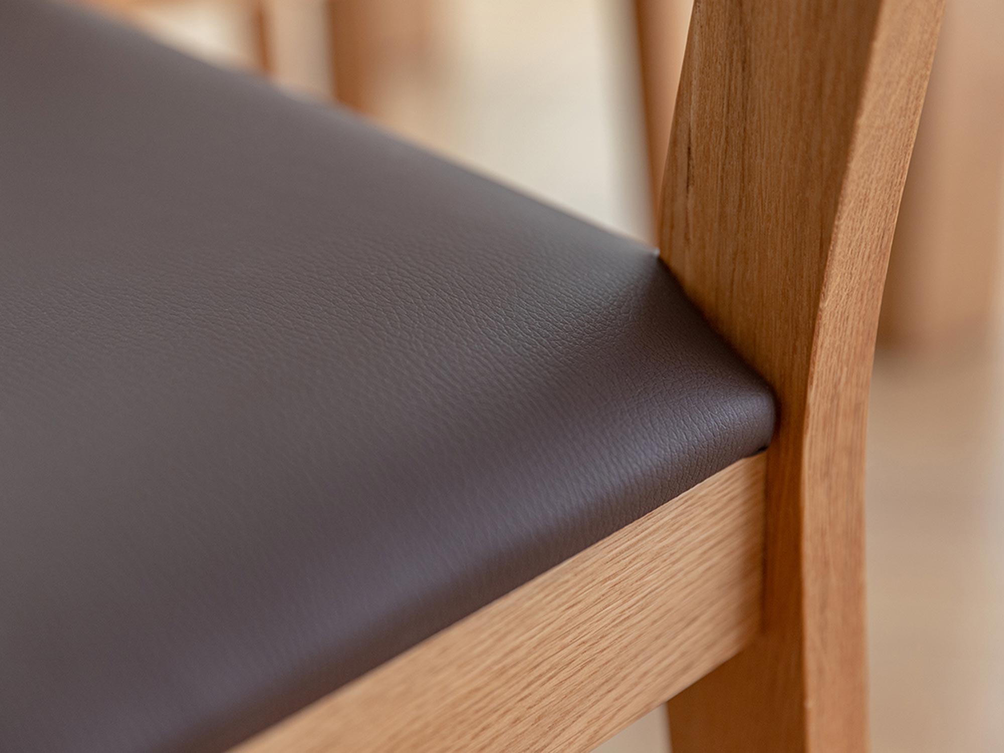 Oprócz walorów estetycznych, model ten wyróżnia się wysoką ergonomią, zapewniając wygodę nawet podczas długich spotkań przy stole. Siedzisko wypełnione pianką tapicerską i pokryte wytrzymałą ekoskórą jest miękkie, a jednocześnie łatwe do utrzymania w czystości, co jest kluczowe w przestrzeni jadalnianej. Minimalistyczna forma sprawia, że mebel ten doskonale odnajduje się w różnorodnych stylach wnętrzarskich, od skandynawskiego po industrialny.