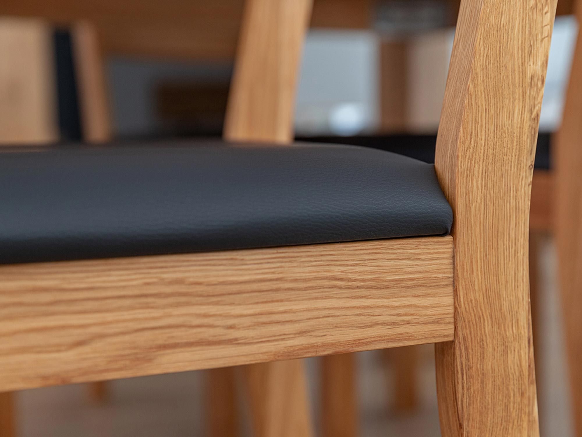 Krzesła dębowe z czarnym siedziskiem w nowoczesnej jadalni