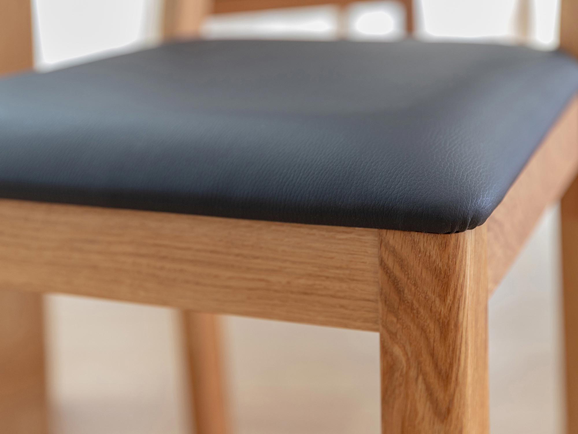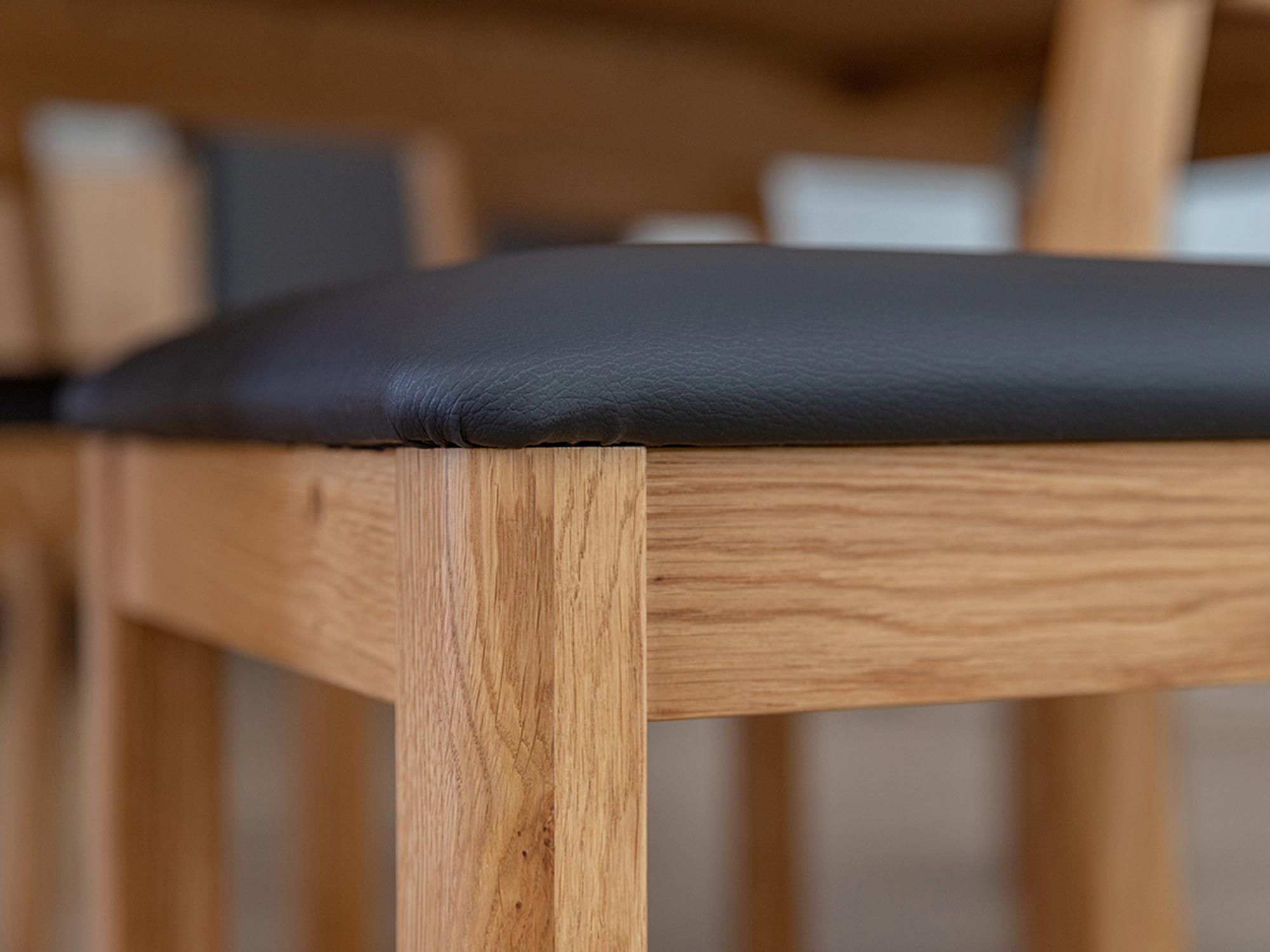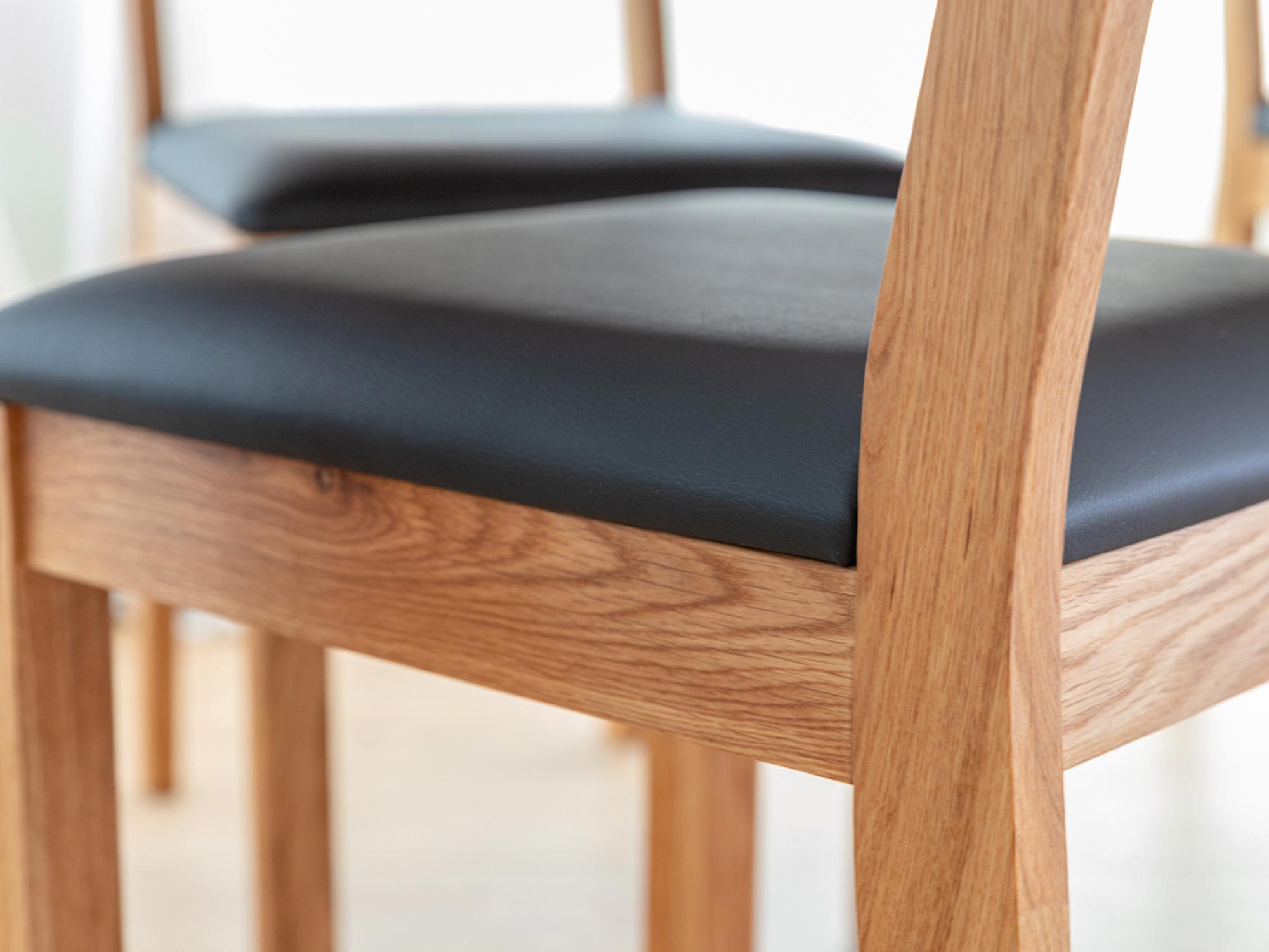 Siedzisko z czarnej ekoskóry i nogi z litego dębu
