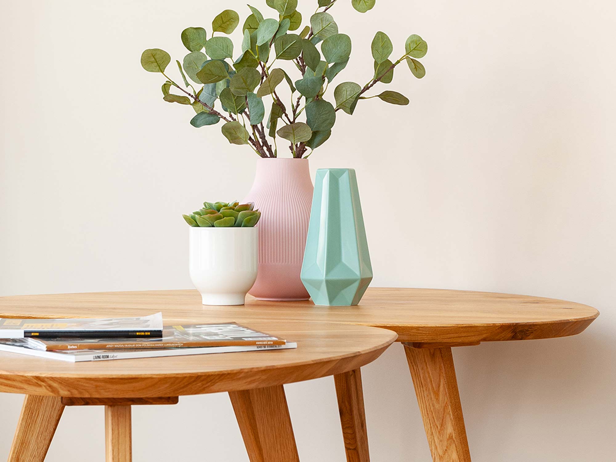 Owalny kształt blatu to nie tylko zabieg estetyczny, ale przede wszystkim praktyczne rozwiązanie ułatwiające komunikację w strefie wypoczynkowej. Brak ostrych kantów czyni ten mebel bezpiecznym wyborem, zwłaszcza w domach, gdzie swobodnie bawią się małe dzieci. Przestronny blat o wymiarach 96 na 95 cm zapewnia wystarczającą ilość miejsca na serwis kawowy, ulubione książki, a także wyeksponowanie drobnych dekoracji. Stabilna podstawa gwarantuje, że mebel pewnie stoi na podłodze, zapewniając komfort podczas popołudniowego odpoczynku.