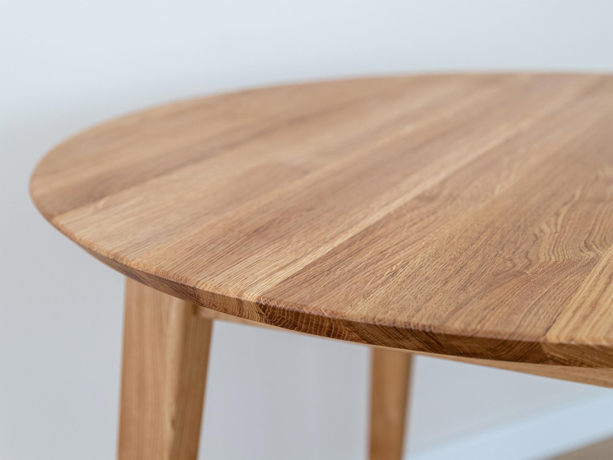 Okrągły stół dębowy, minimalistyczny design, naturalne drewno