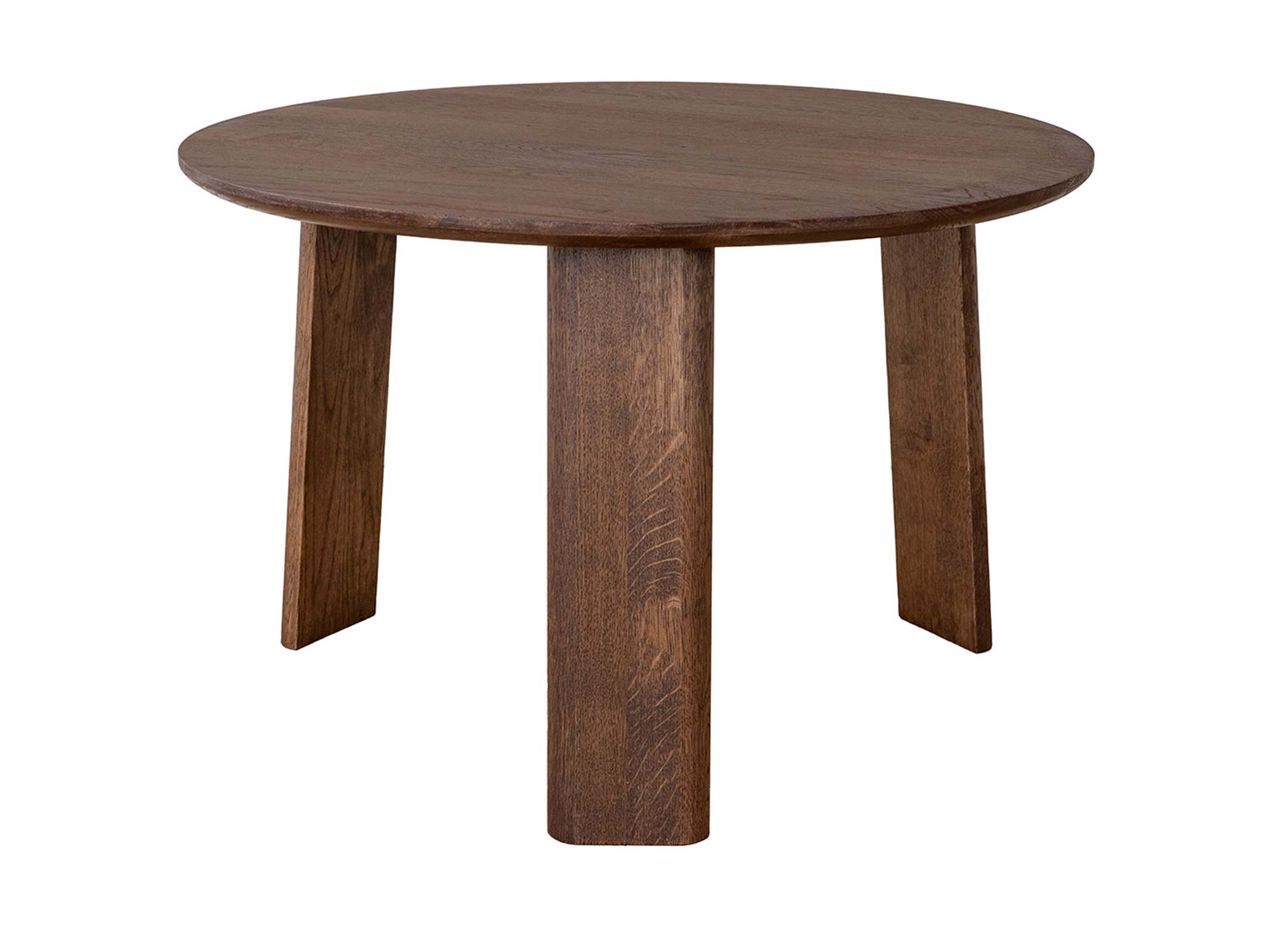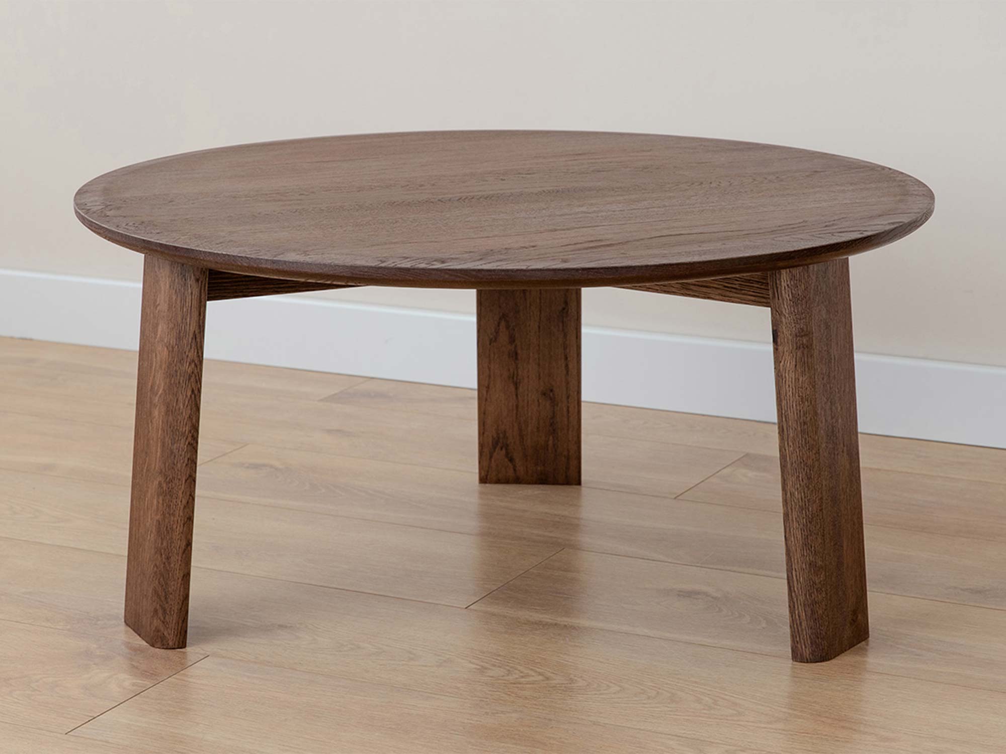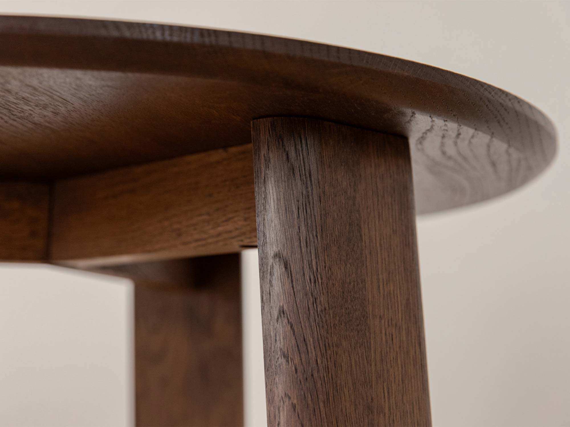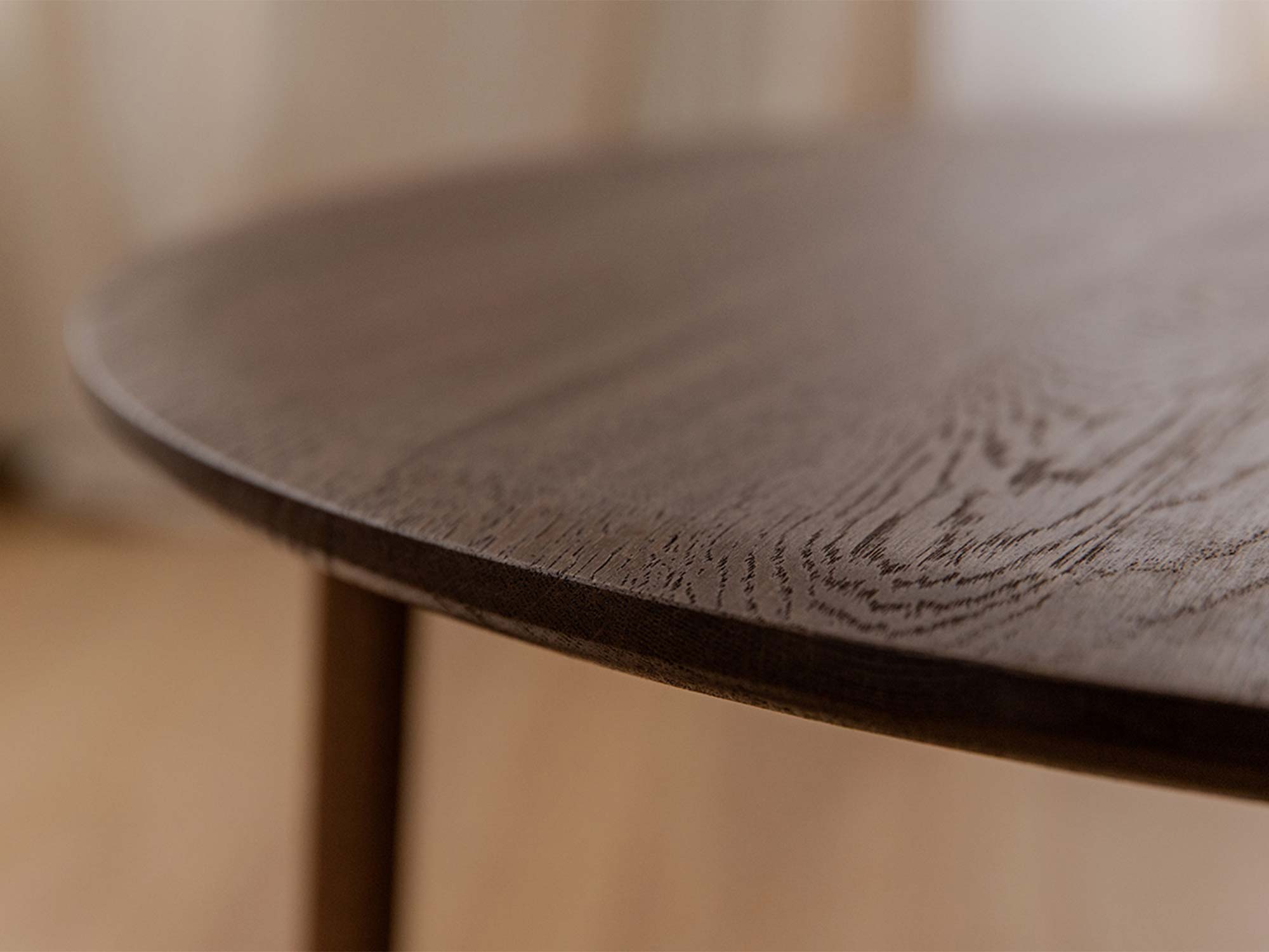 Trzy stabilne, a przy tym wizualnie lekkie nogi nadają bryle harmonii i zapewniają pewne podparcie blatu. Okrągły kształt sprzyja ergonomii: łatwo wsunąć stolik przy sofę, fotel, narożnik czy łóżko. Z kolei zaokrąglone krawędzie są przyjazne dla dłoni i bezpieczniejsze w intensywnie użytkowanych strefach domowych.