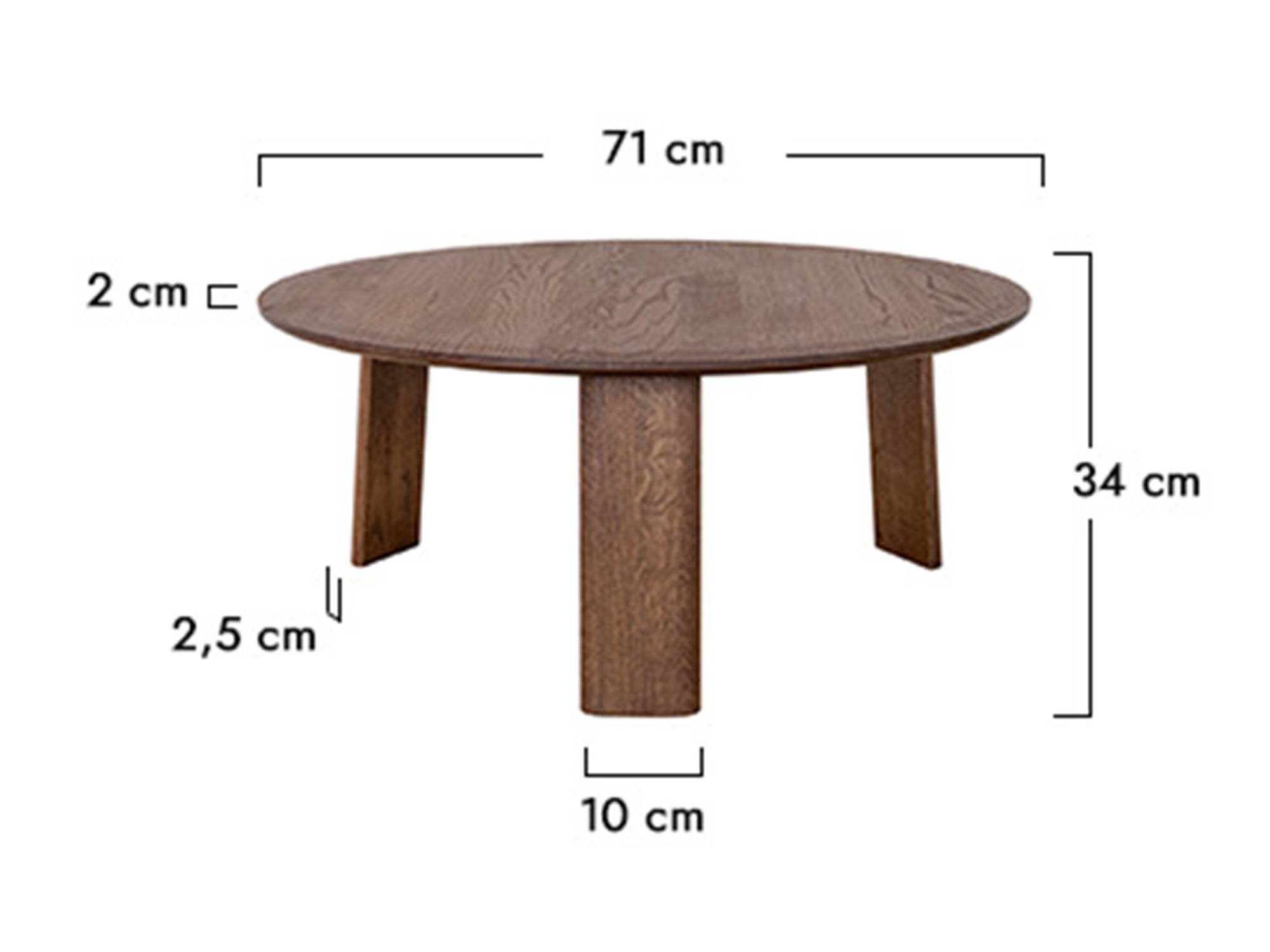 Klasyczny dębowy nowoczesny stolik 71 cm Asento to mebel, który łączy w sobie elegancję, funkcjonalność i trwałość. Dzięki solidnemu wykonaniu z litego drewna dębowego będzie służył przez lata, a jego ponadczasowy wygląd sprawi, że odnajdzie się w każdym wnętrzu. Większa średnica blatu zapewnia dodatkową przestrzeń użytkową, co czyni go idealnym wyborem do salonu czy jadalni. Postaw na jakość i wybierz stolik, który stanie się naturalnym i eleganckim centrum Twojego domu. Kliknij „Dodaj do koszyka” i ciesz się pięknem dębu każdego dnia!