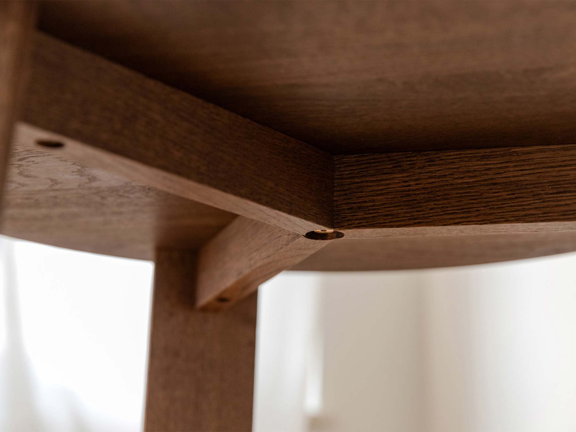 Emocje pierwszego wrażenia są ważne – ale to argumenty decydują o zakupie. Asento powstaje z litego dębu, czyli jednego z najszlachetniejszych gatunków drewna w meblarstwie. Dąb słynie z twardości, stabilności i pięknej, wyraźnej struktury. Olejowanie nie tylko wydobywa głębię odcienia tabacco, lecz także działa jak tarcza ochronna – powierzchnia jest mniej podatna na drobne zarysowania i łatwiejsza w bieżącym czyszczeniu.