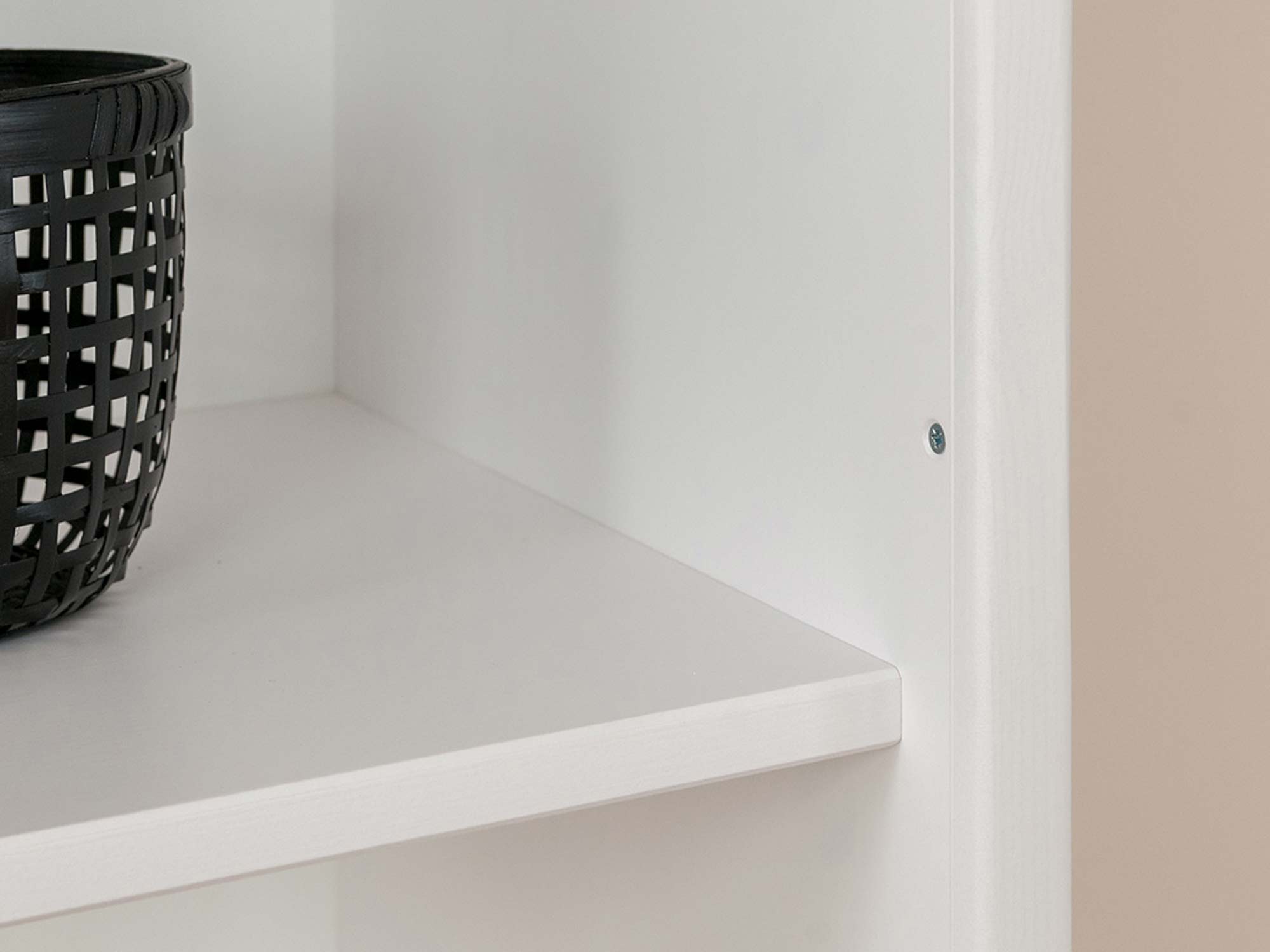 Podstawą tego mebla jest wysokiej jakości lite drewno sosny fińskiej, co przekłada się na jego solidność i odporność na upływ czasu. Powierzchnia została wykończona ekologicznym woskiem oraz białą farbą wodną o niepełnym kryciu, dzięki czemu rysunek słoja i naturalne sęki pozostają widoczne. Taki zabieg sprawia, że każdy egzemplarz jest unikatowy, a pod opuszkami palców wyczuwalna jest autentyczna struktura drewna. Plecy regału wykonano z płyty HDF, co zapewnia stabilność całej konstrukcji przy zachowaniu estetycznego wyglądu.