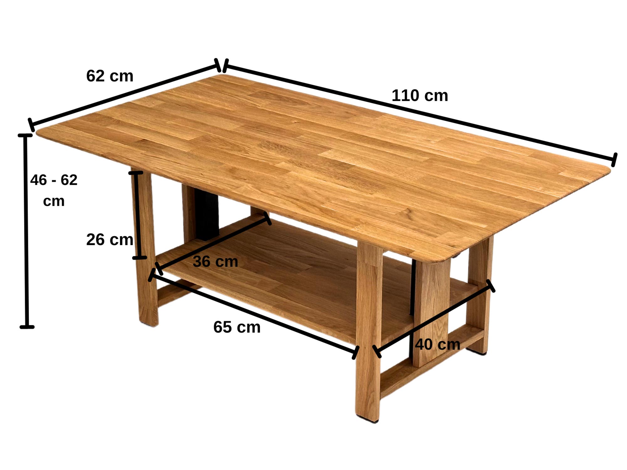 ✓ Regulowana Wysokość Mechanizm podnoszenia blatu w zakresie od 46 do 62 cm. |