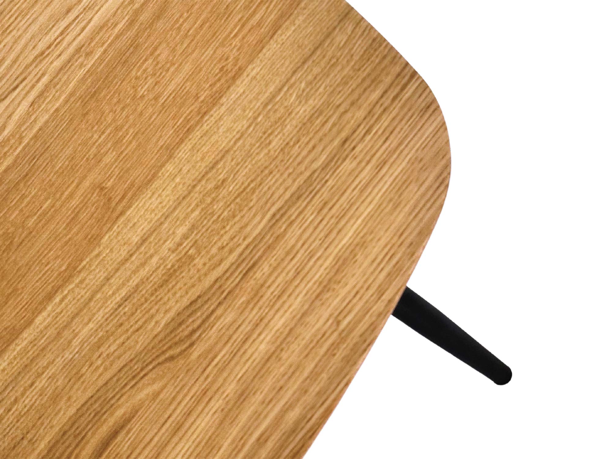 Blat tego modelu to połączenie trwałości płyty MDF z estetyką naturalnego dębu, uzyskaną dzięki zastosowaniu wysokogatunkowego forniru. Powierzchnia została zabezpieczona olejem, co nie tylko chroni drewno przed zabrudzeniami, ale także wydobywa jego głębię i unikalną strukturę. Charakterystycznym detalem jest ścięcie krawędzi pod kątem 30 stopni, co sprawia, że mimo solidnej grubości 19 mm, całość prezentuje się niezwykle lekko i subtelnie.