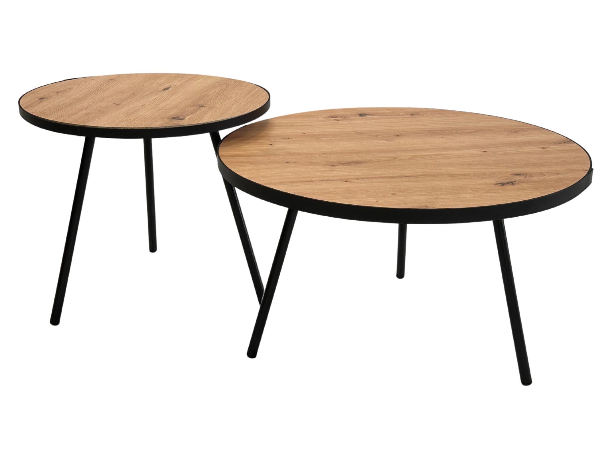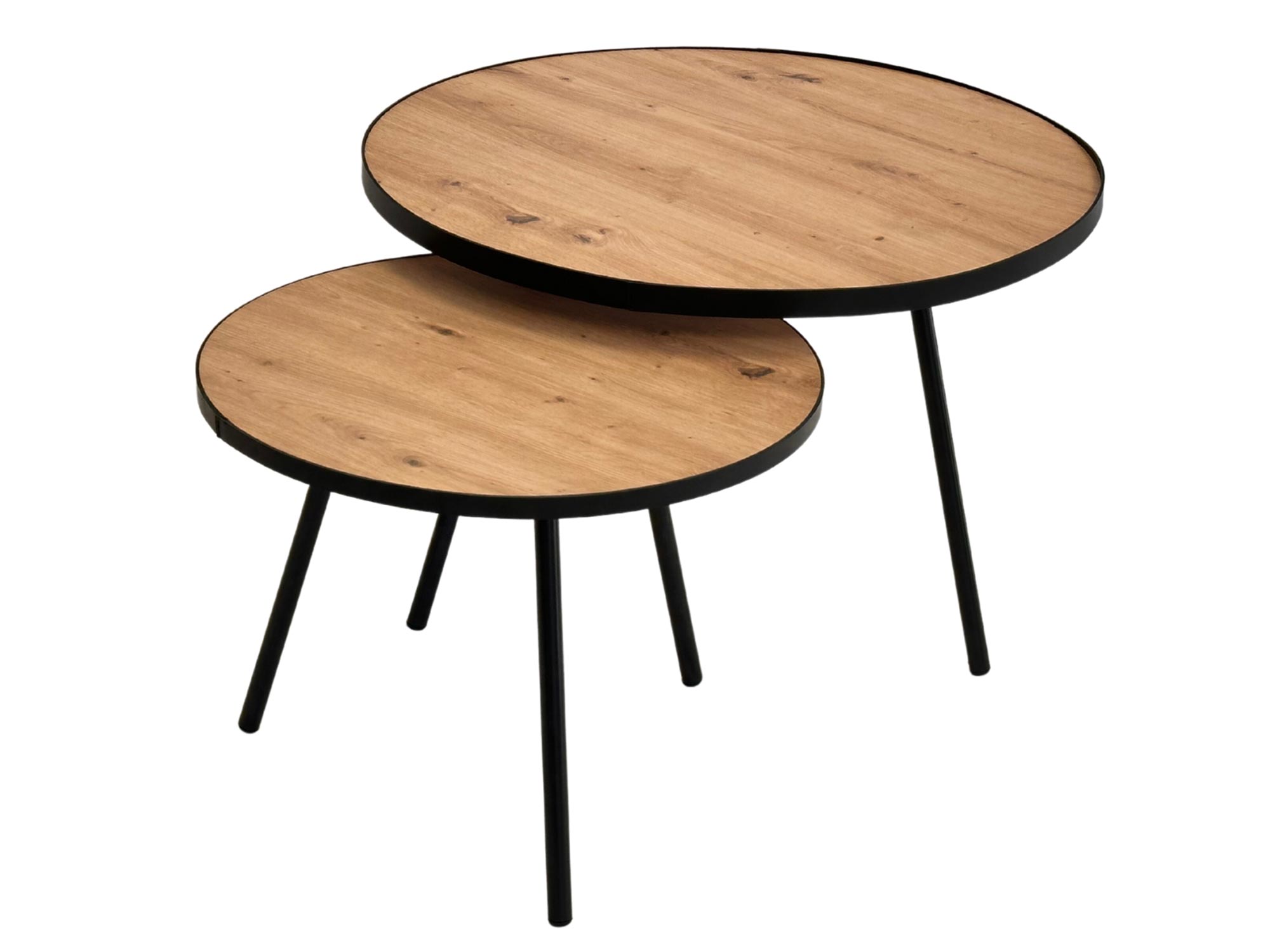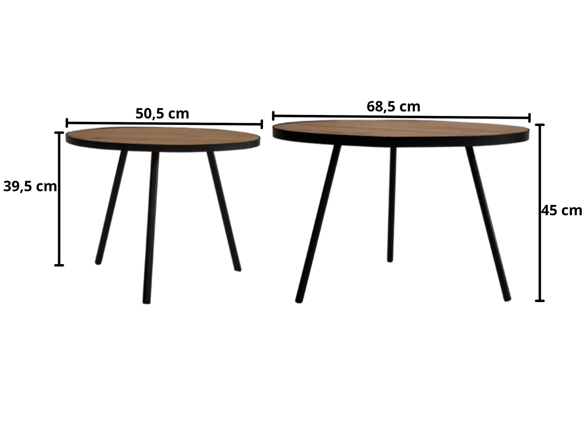Poza walorami estetycznymi, stoliki te oferują wyjątkową funkcjonalność dzięki przemyślanej różnicy wysokości i średnic. Mniejszy model o średnicy 50 cm swobodnie mieści się pod większym blatem 68 cm, co pozwala na szybkie powiększenie przestrzeni użytkowej w razie wizyty gości lub zaoszczędzenie miejsca na co dzień. Metalowe nogi wyposażono w specjalne podkładki ochronne, które skutecznie zabezpieczają podłogę przed zarysowaniami podczas przesuwania mebli. Powierzchnia blatów jest łatwa w utrzymaniu czystości i odporna na standardowe użytkowanie.