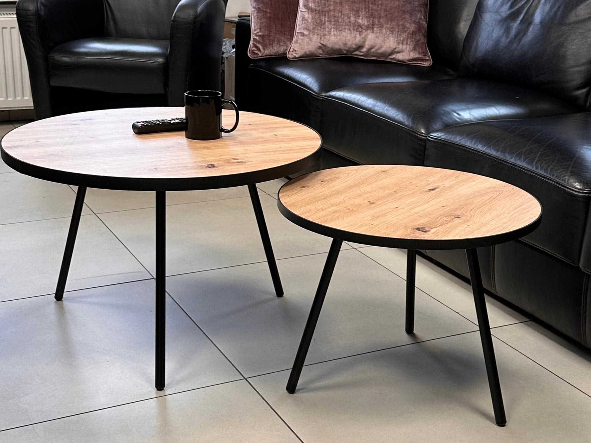Zestaw Stolików Kawowych z Obrzeżem Skórzanym 25 mm – Artisan 02