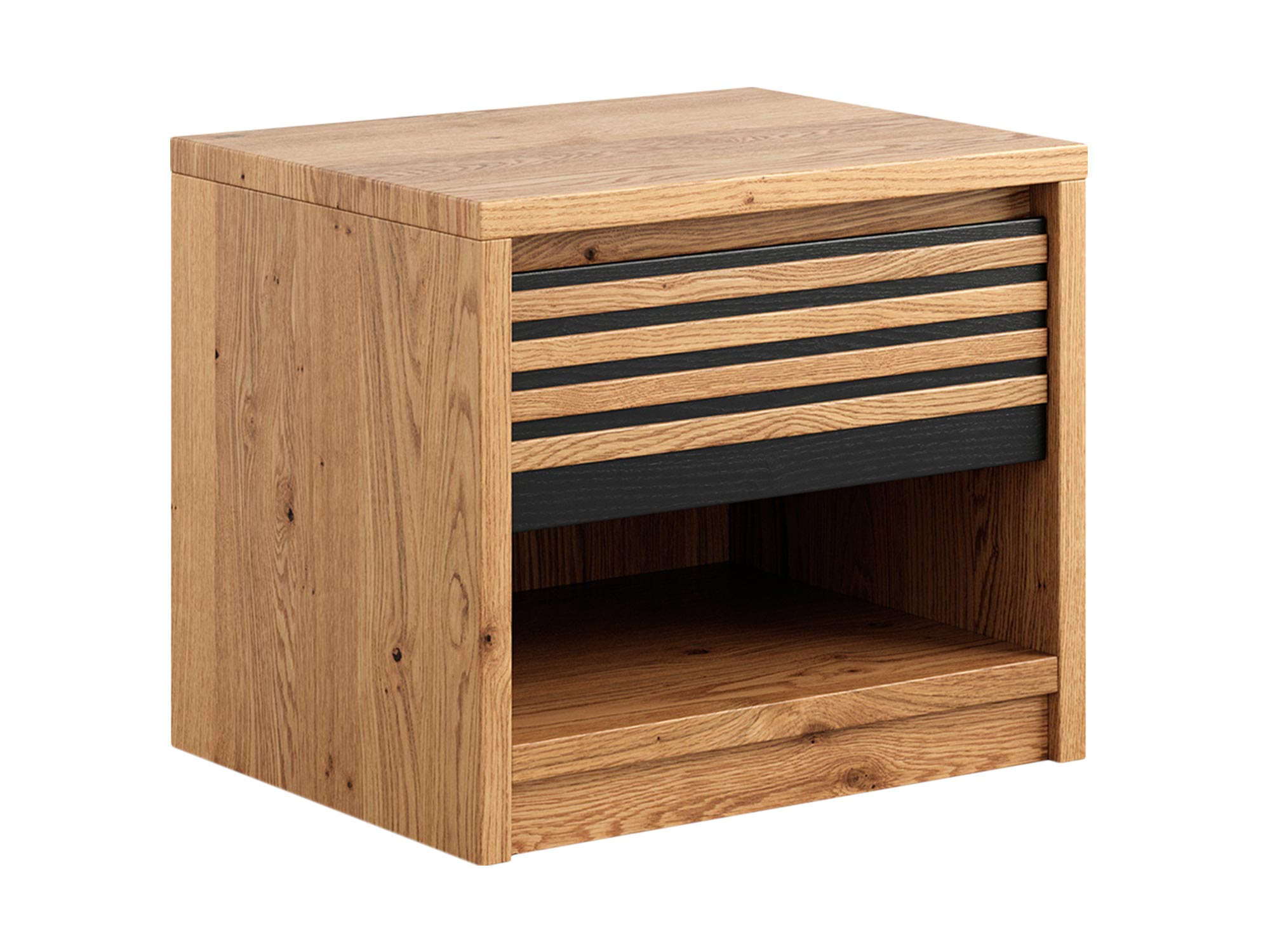 Nowoczesna szafka nocna z czarnym dekorem i dębowym korpusem