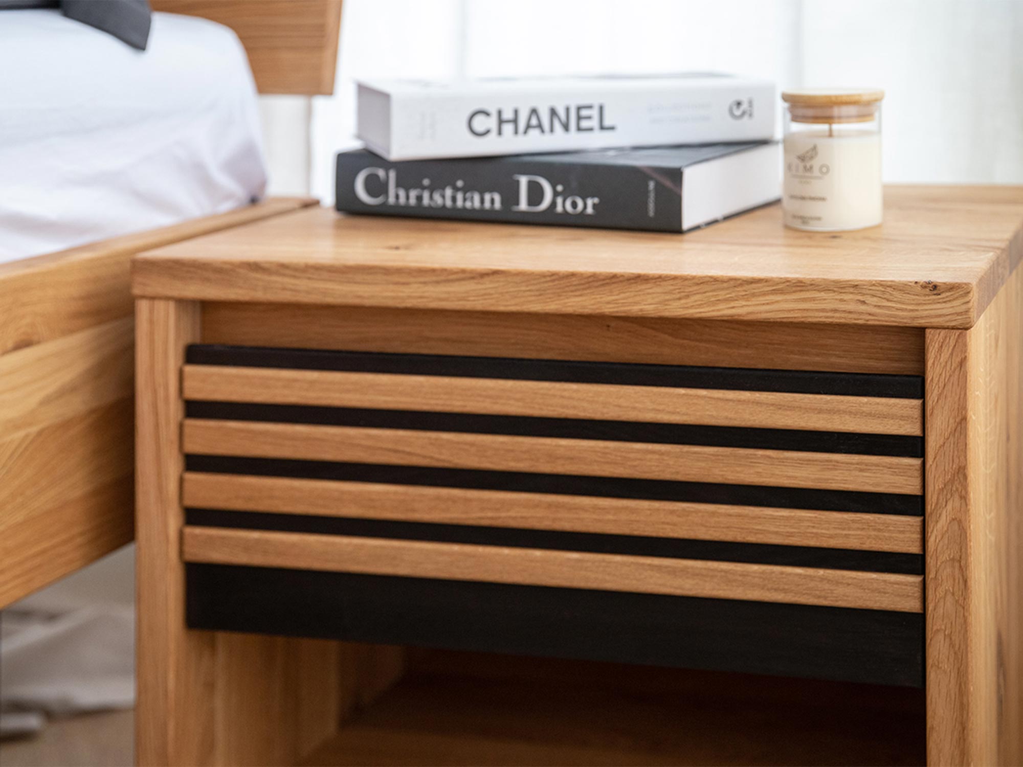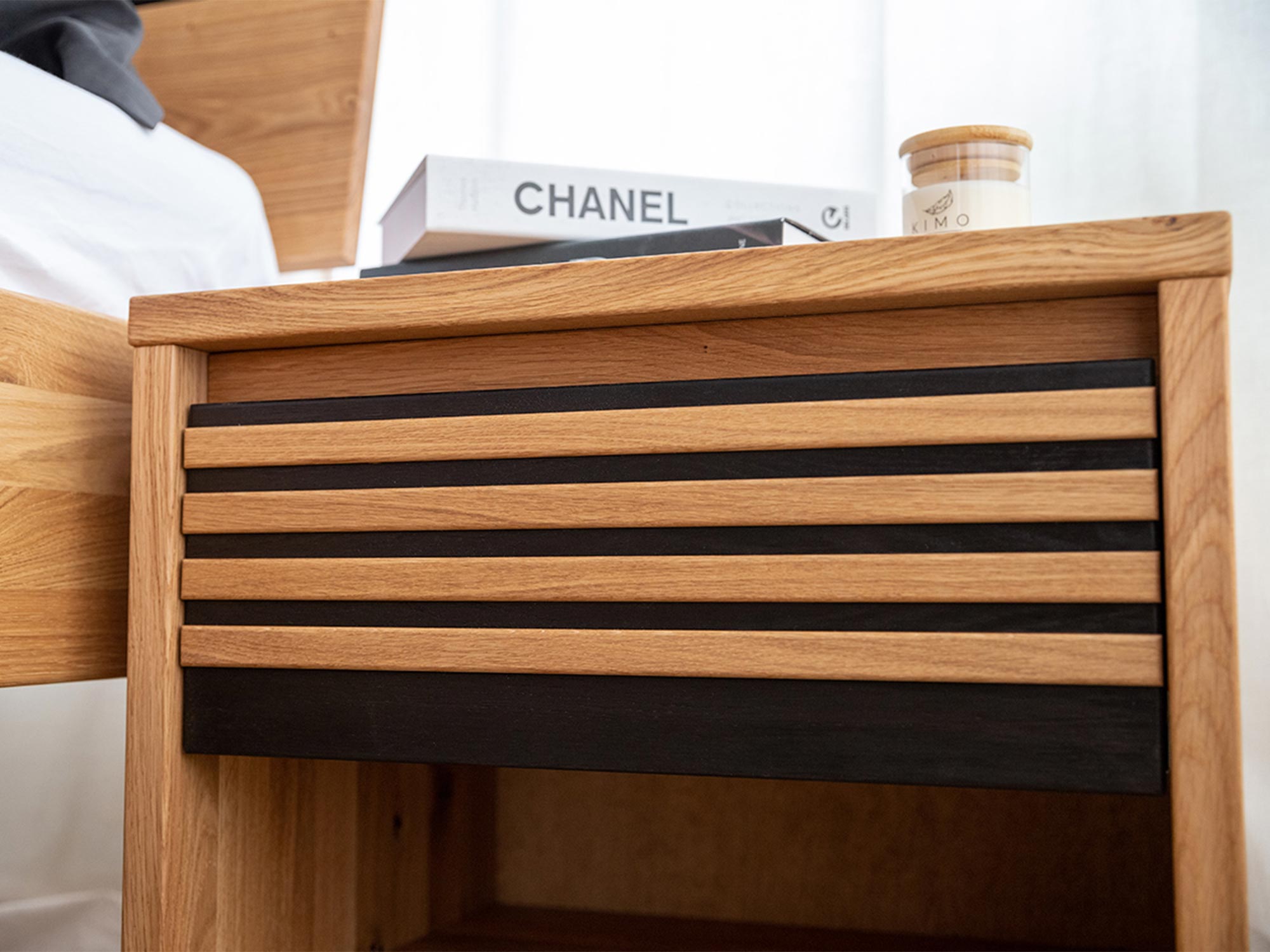 Nowoczesna szafka nocna z litego drewna z lamelami