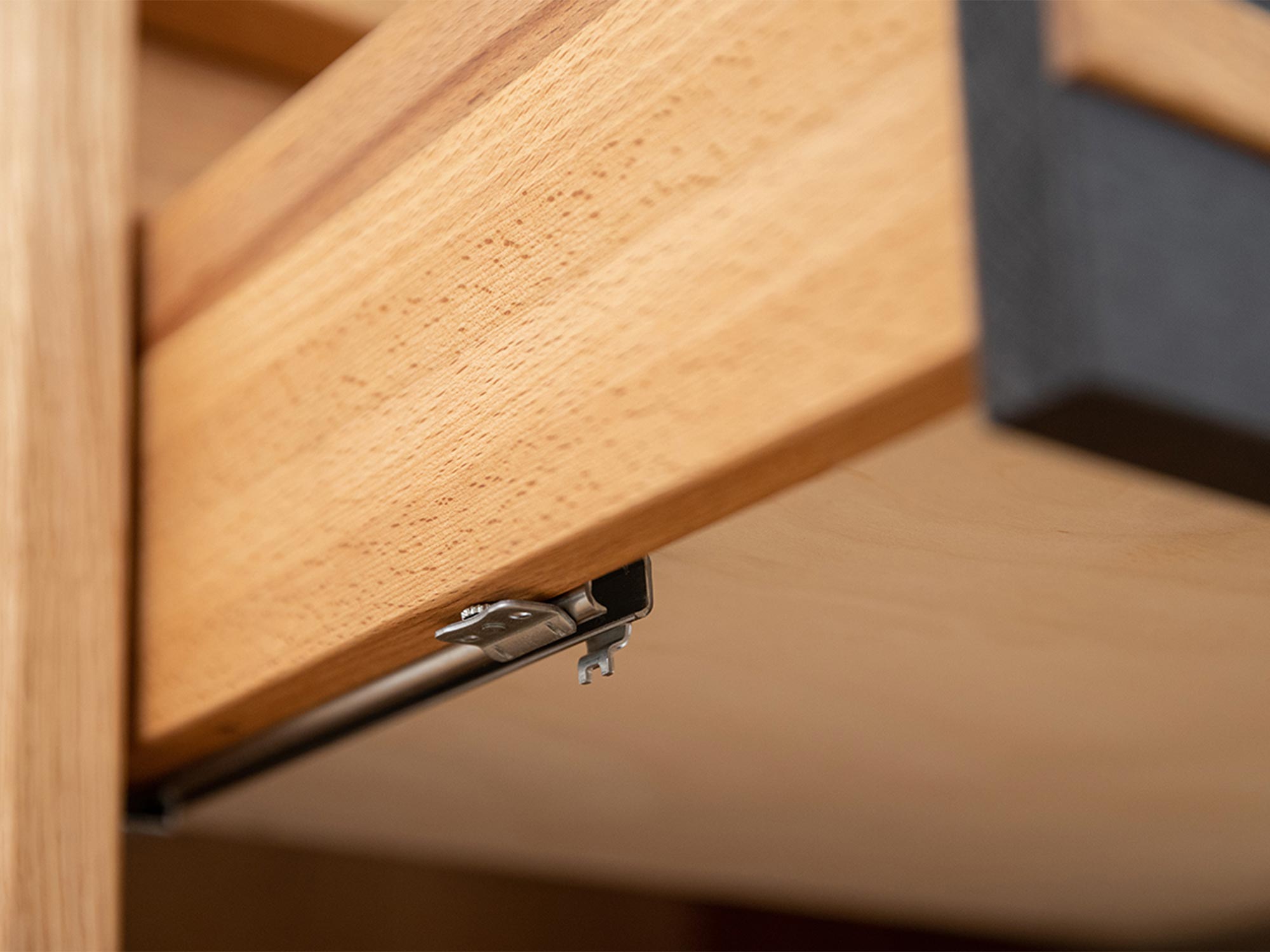 Prowadnice szuflad gwarantują bezgłośne i płynne zamykanie dla pełnego komfortu.
