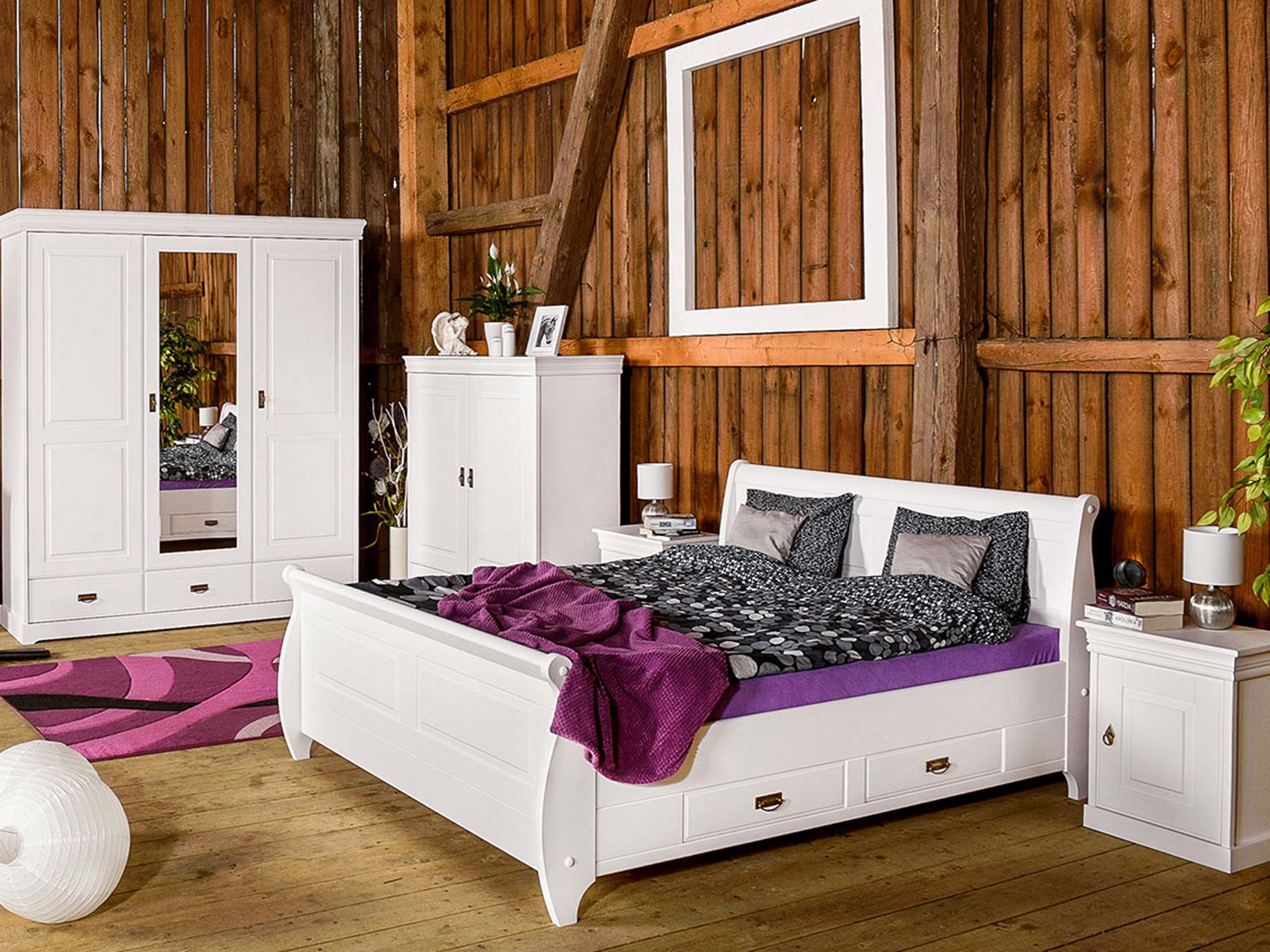 Duża szafa z lustrem z drewna sosnowego ANADI